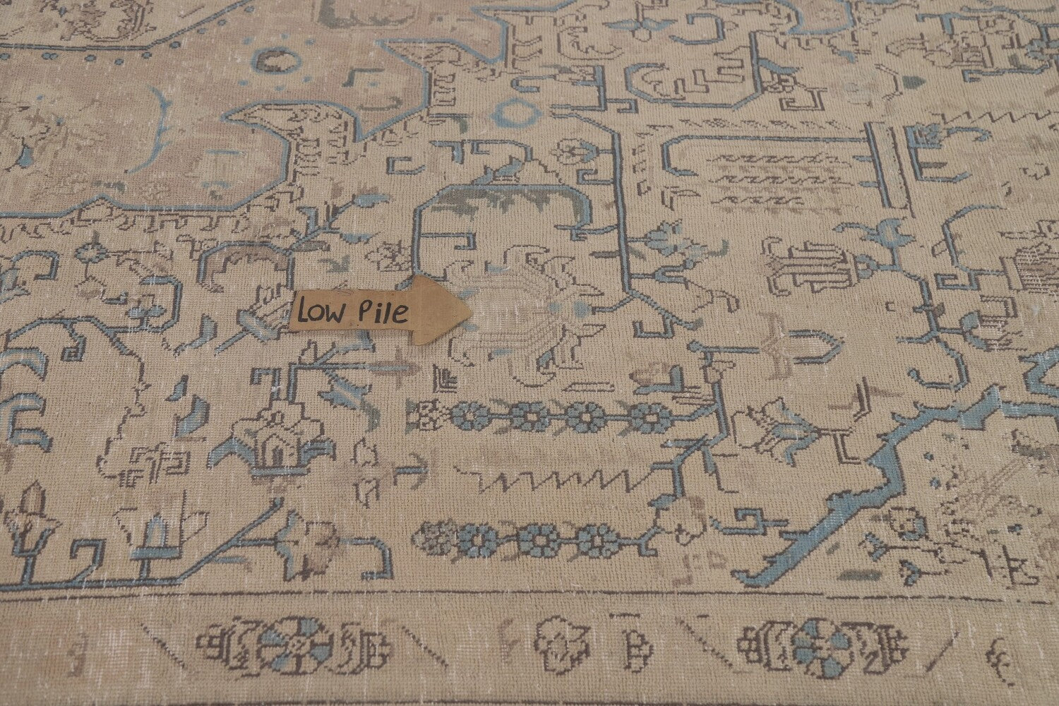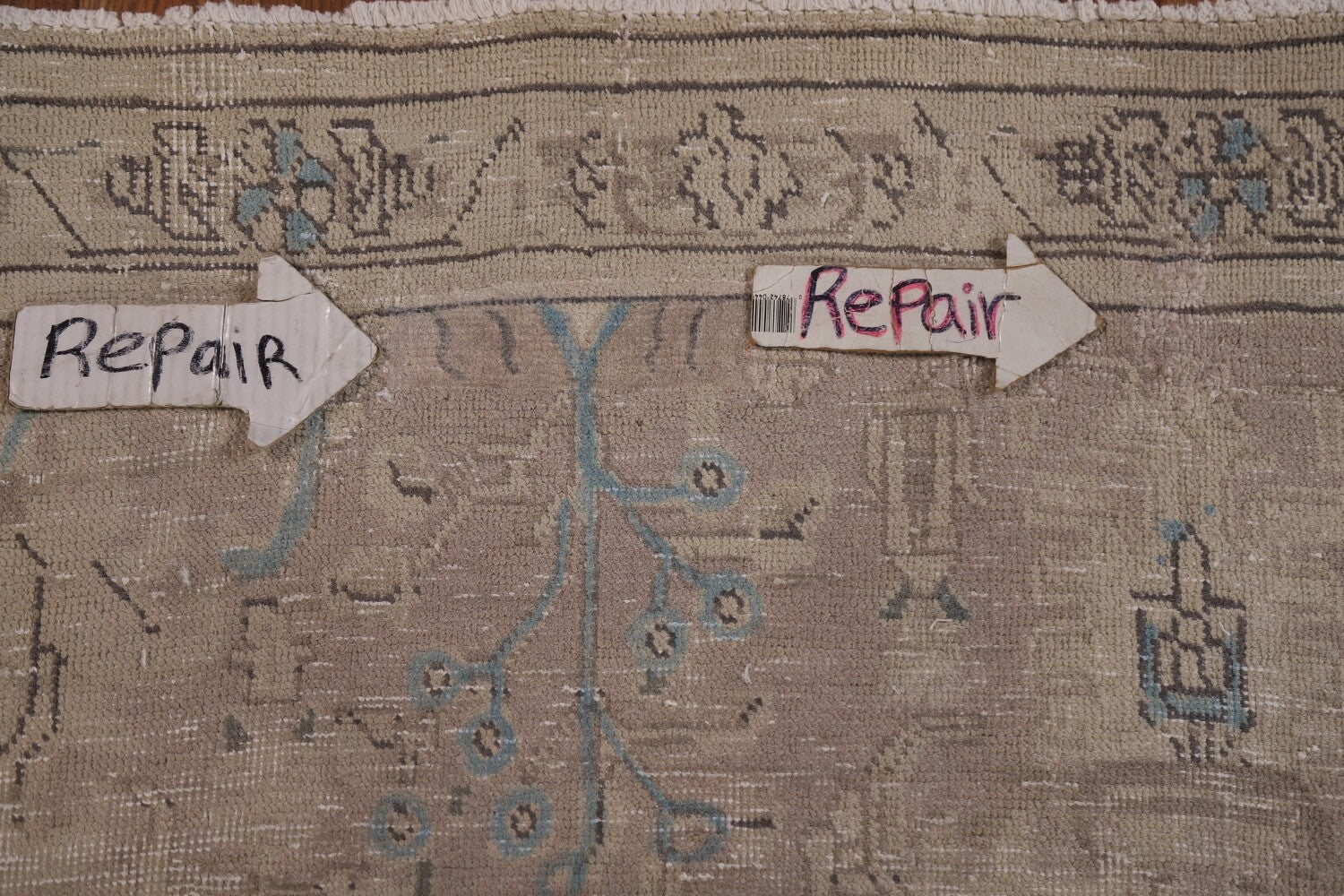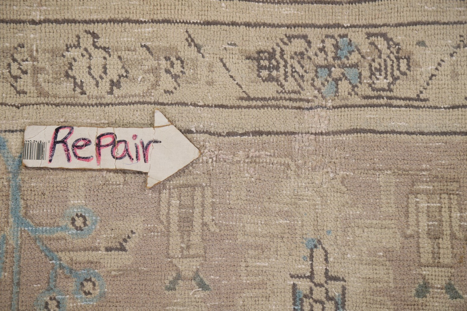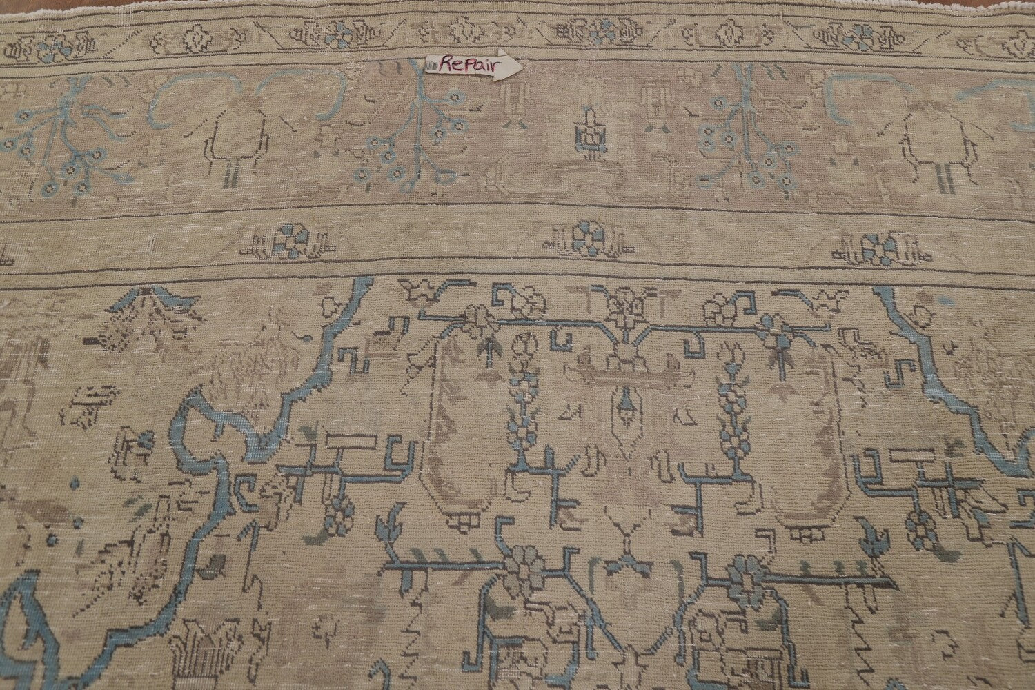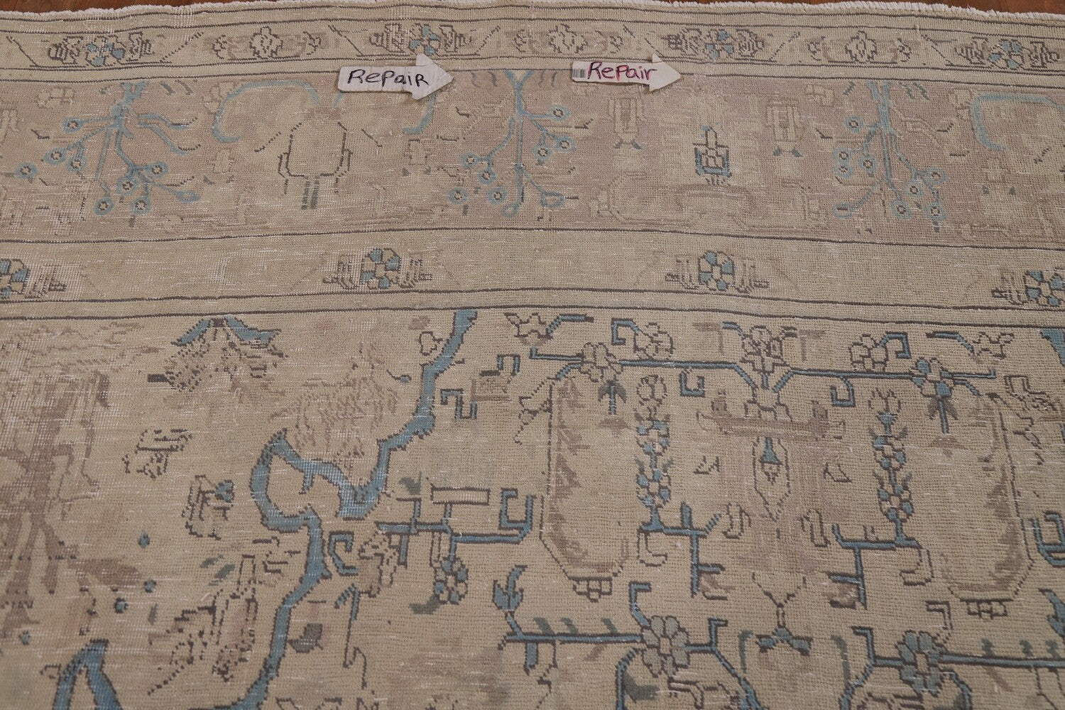 A Beautiful Genuine Persia ( Persia ) Tabriz rug is Hand Knotted by skillful weavers in Persia ( Persia ) with 100% Wool Material. This rug is in Very Good (Low Pile-Repair) condition. dimensions are 13' 3'' X 9' 3'' in foot and 404 X 282 in centimeter. the primary color is Beige & Ivories.