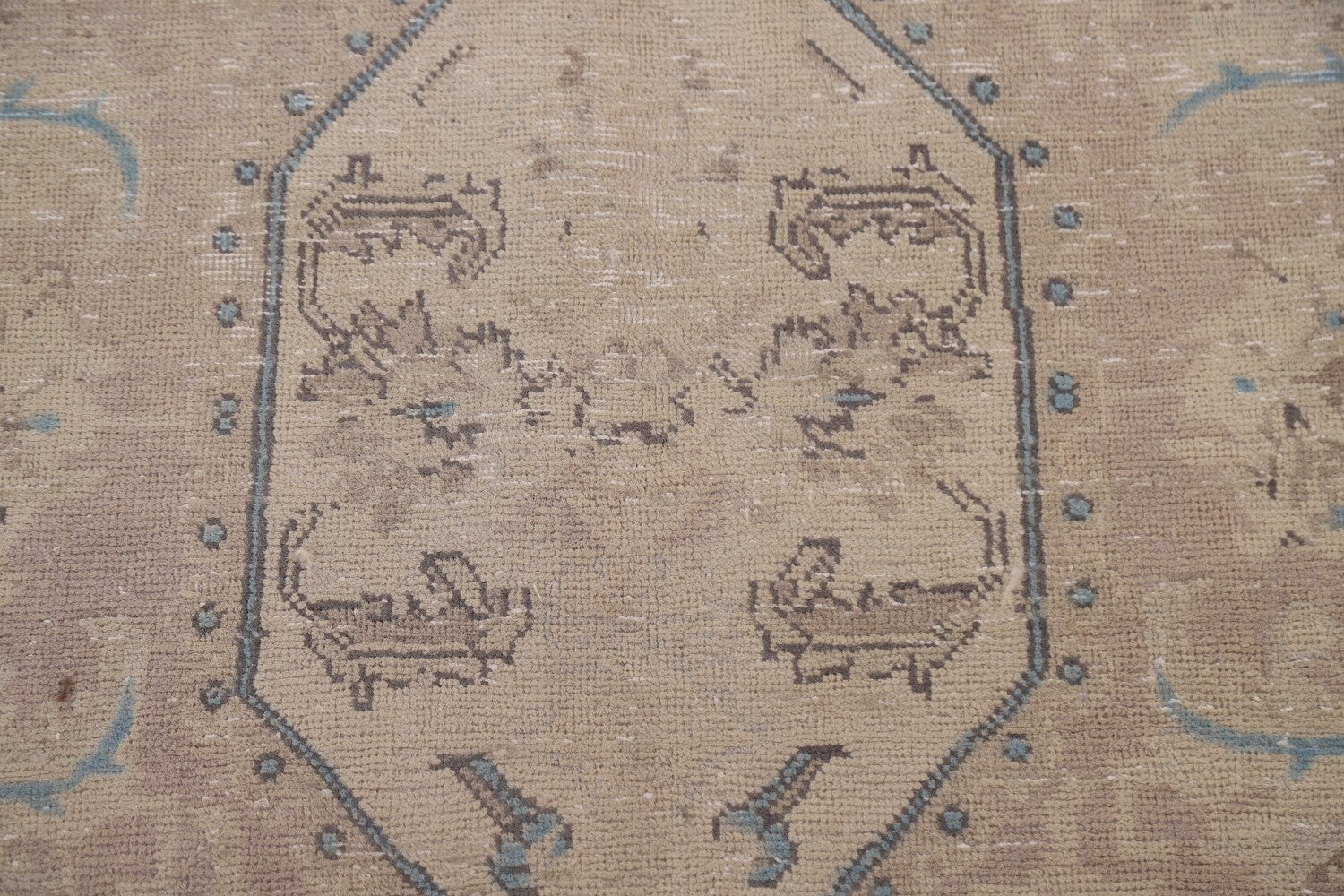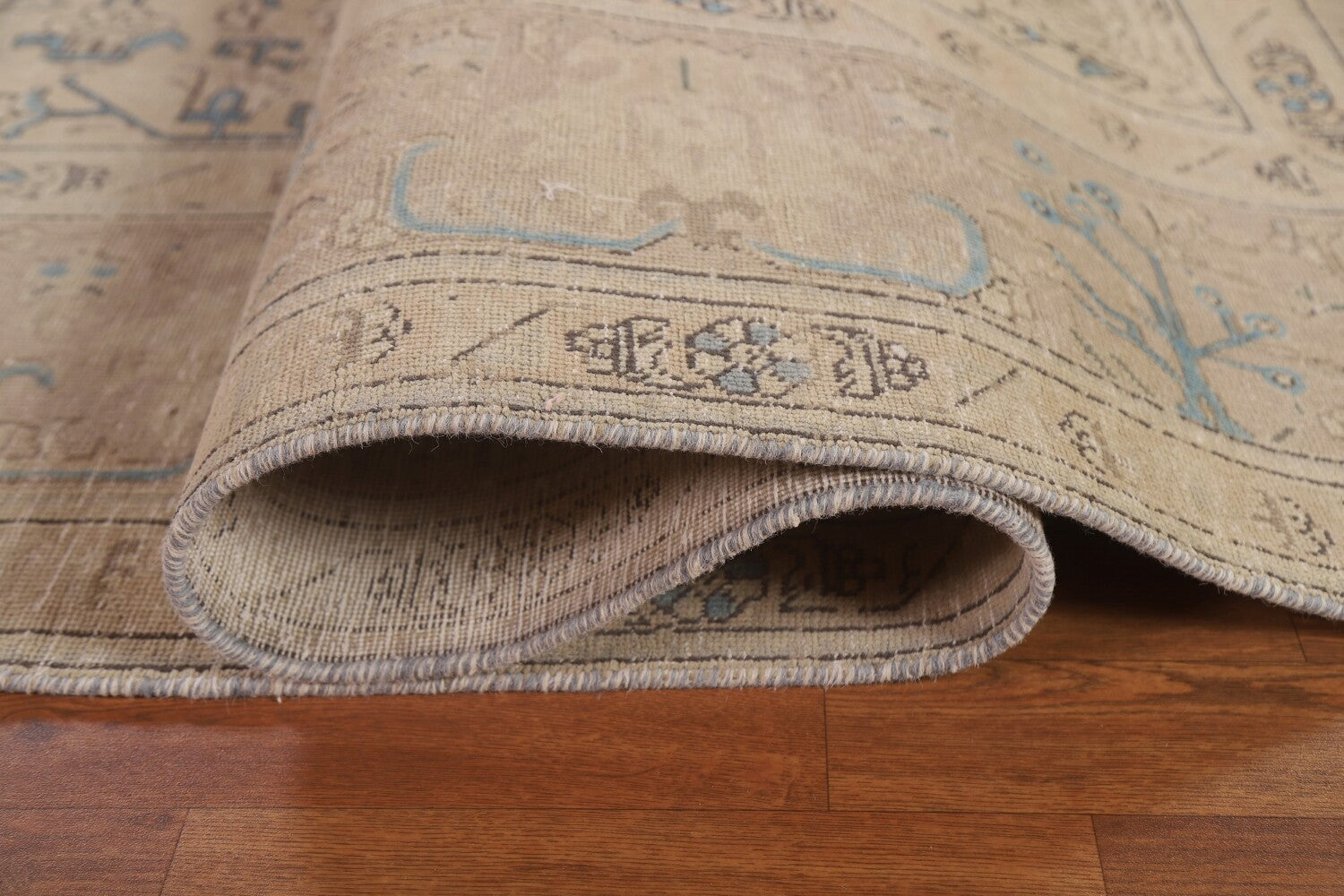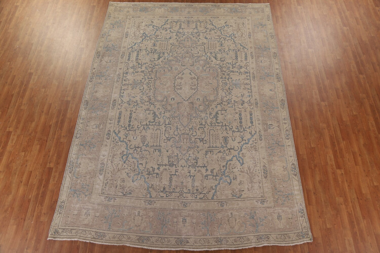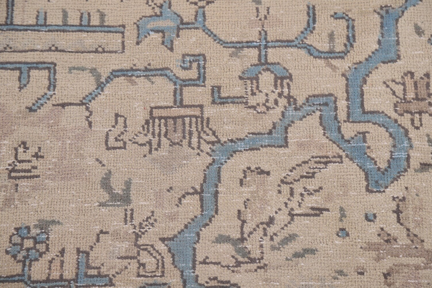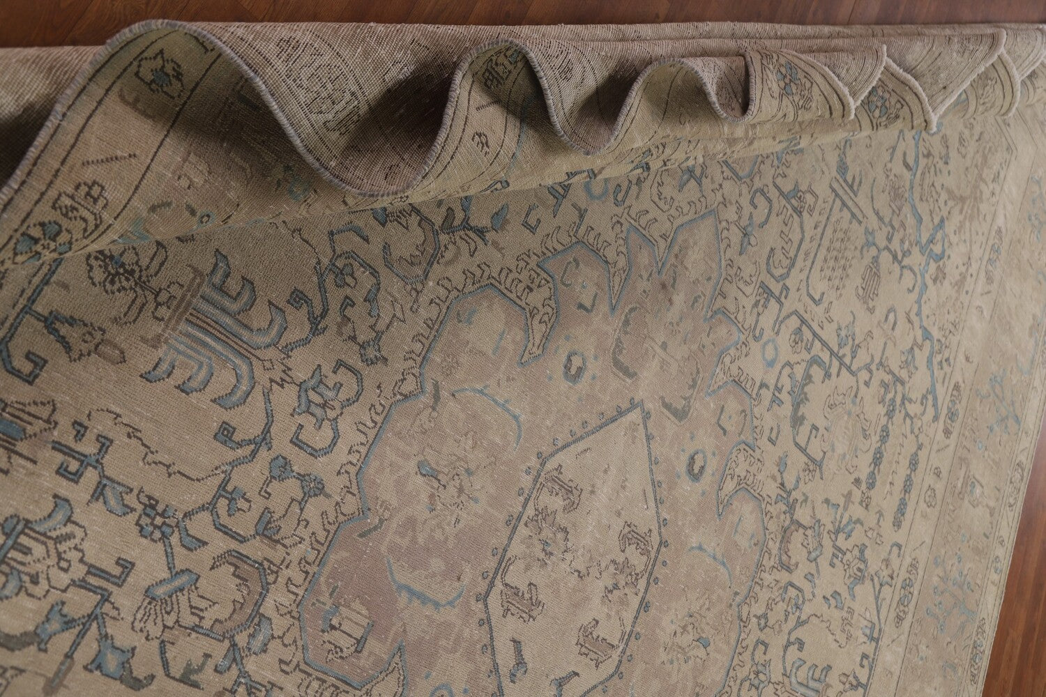 A Beautiful Genuine Persia ( Persia ) Tabriz rug is Hand Knotted by skillful weavers in Persia ( Persia ) with 100% Wool Material. This rug is in Very Good (Low Pile-Repair) condition. dimensions are 13' 3'' X 9' 3'' in foot and 404 X 282 in centimeter. the primary color is Beige & Ivories.