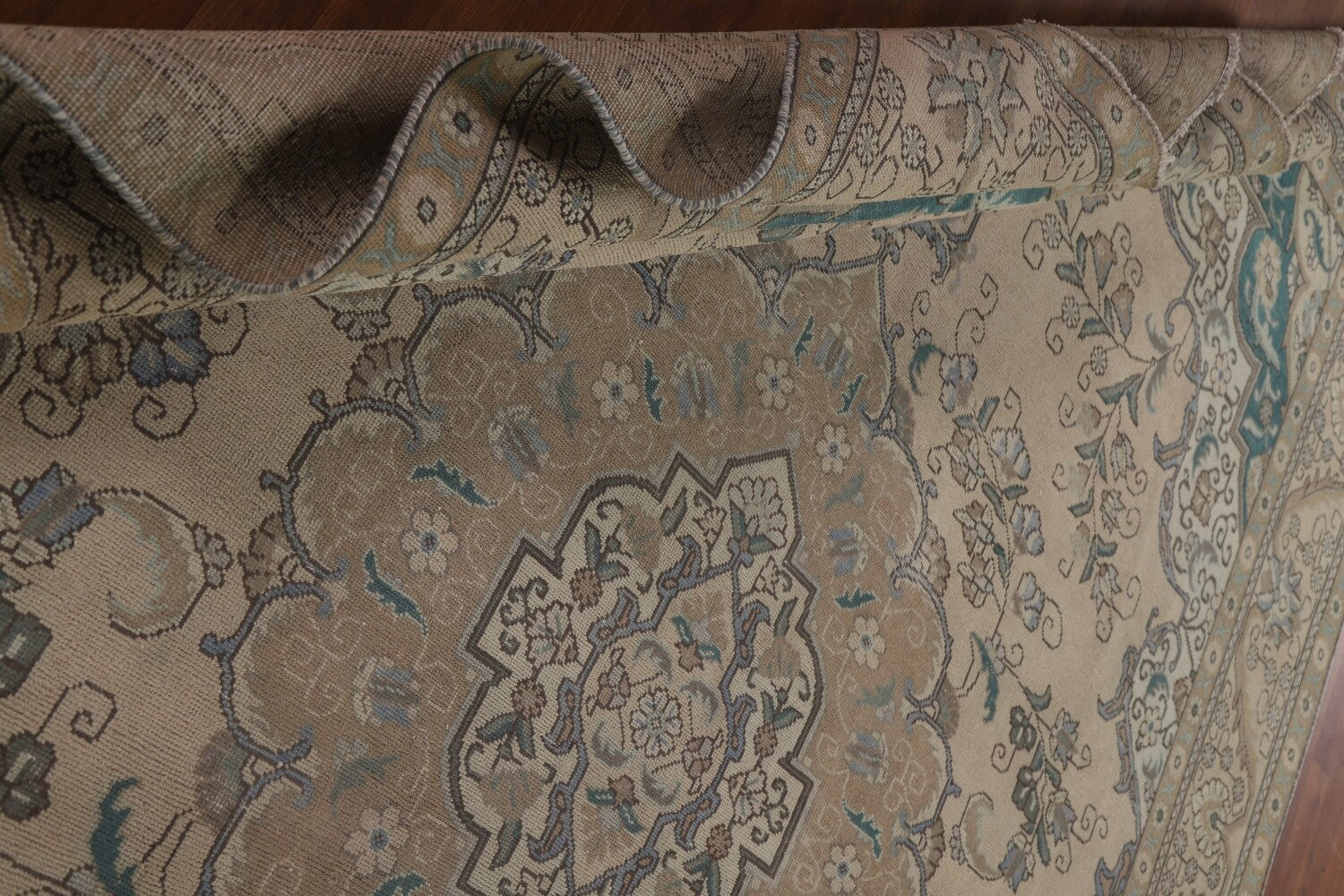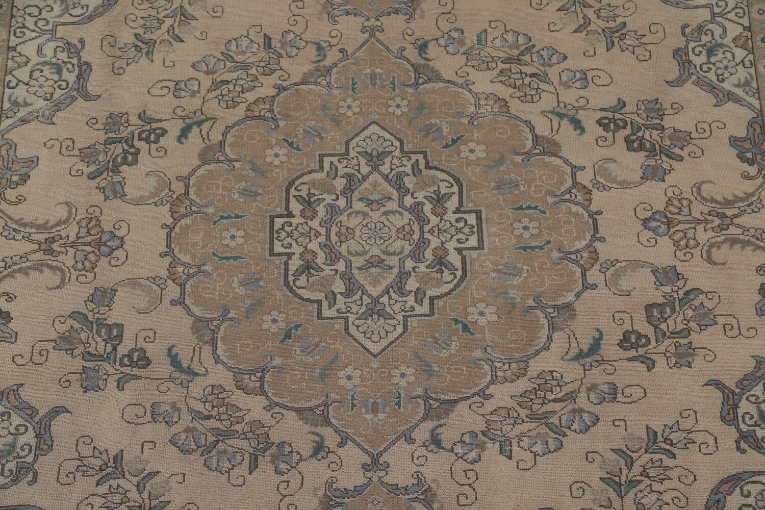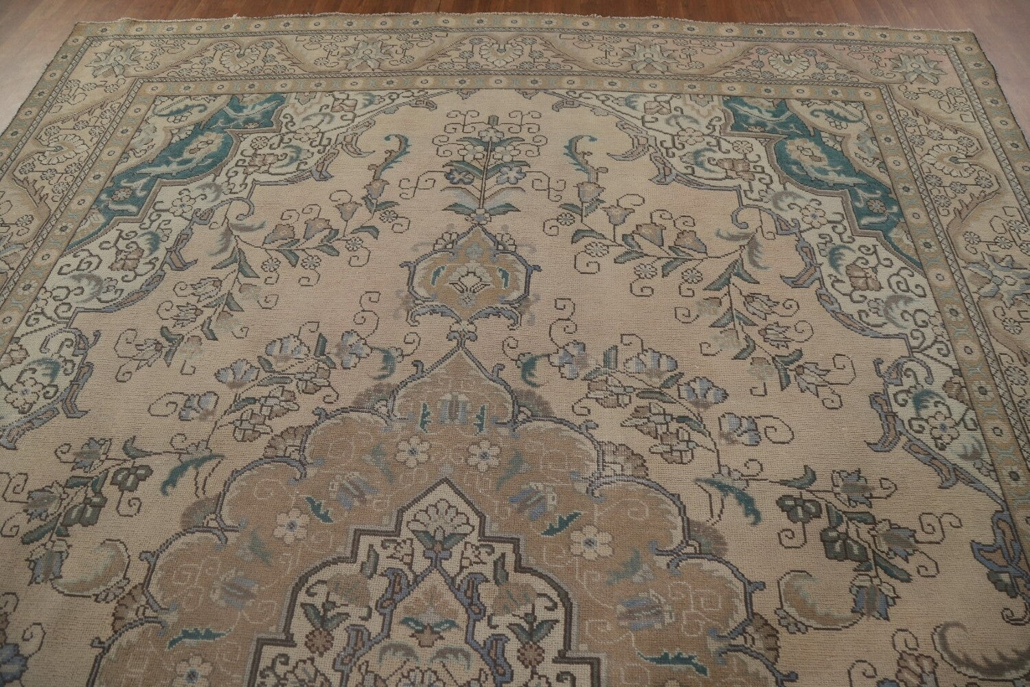 A Beautiful Genuine Persia ( Persia ) Tabriz rug is Hand Knotted by skillful weavers in Persia ( Persia ) with 100% Wool Material. This rug is in Very Good (Evenly Low Pile) condition. dimensions are 12' 10'' X 9' 3'' in foot and 391 X 282 in centimeter. the primary color is Peach.