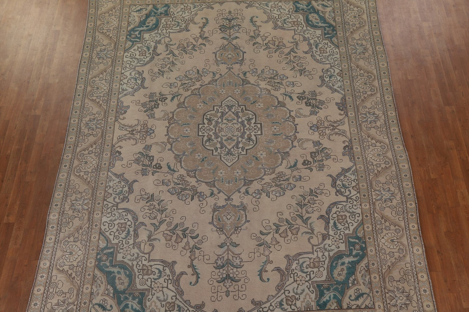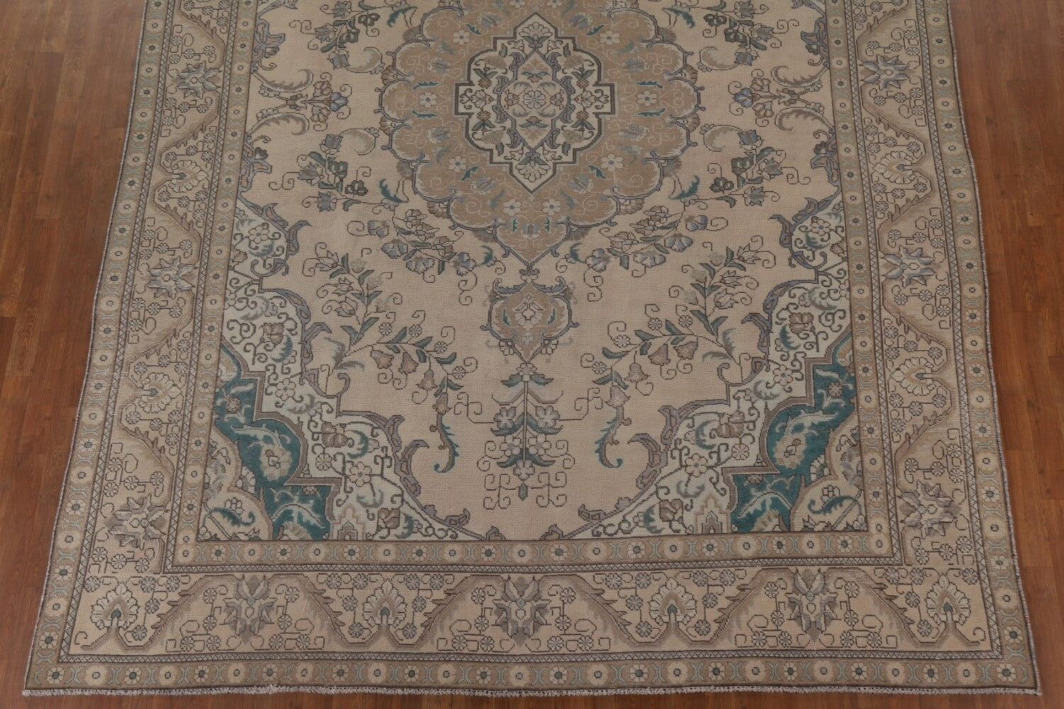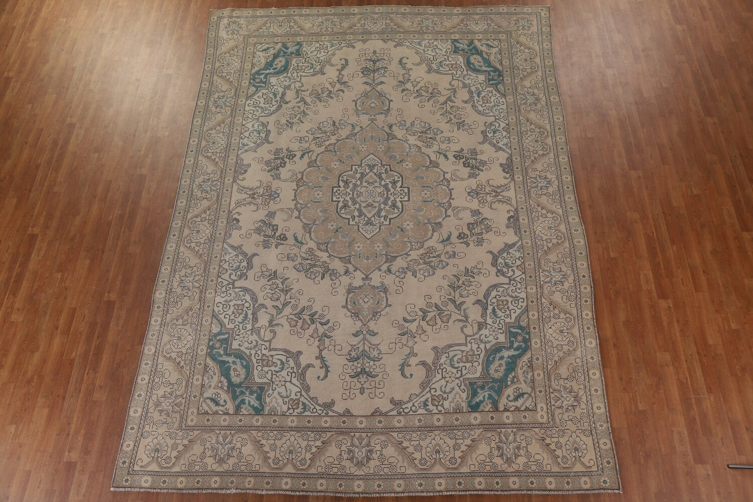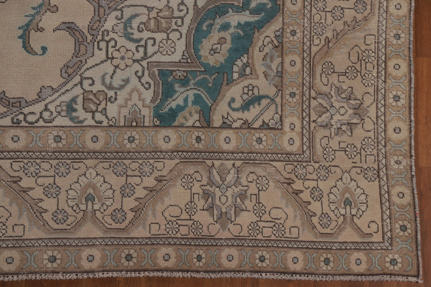 A Beautiful Genuine Persia ( Persia ) Tabriz rug is Hand Knotted by skillful weavers in Persia ( Persia ) with 100% Wool Material. This rug is in Very Good (Evenly Low Pile) condition. dimensions are 12' 10'' X 9' 3'' in foot and 391 X 282 in centimeter. the primary color is Peach.