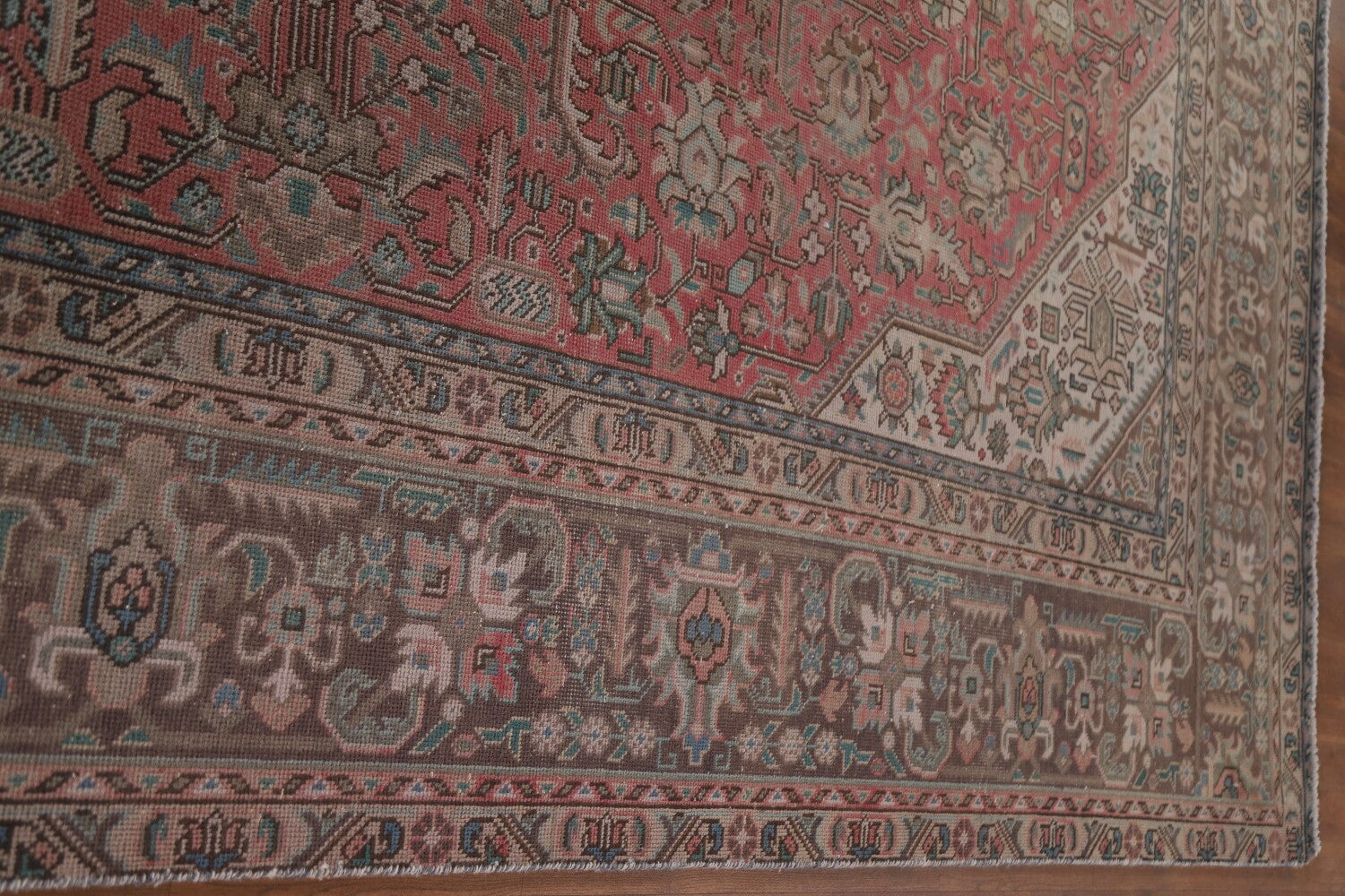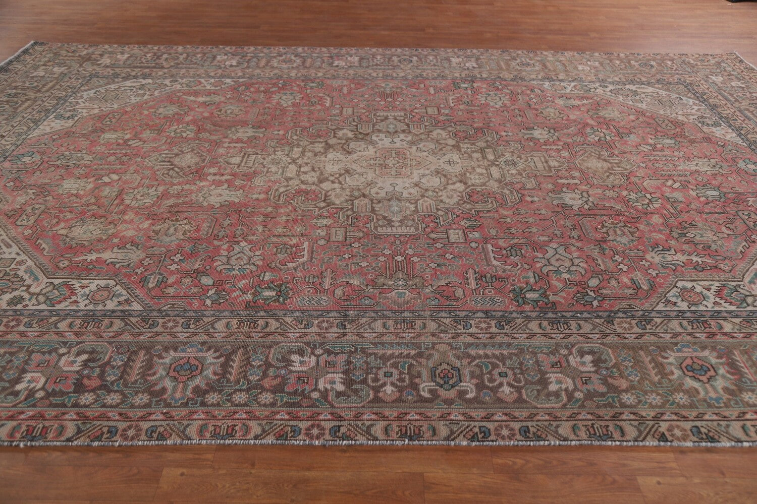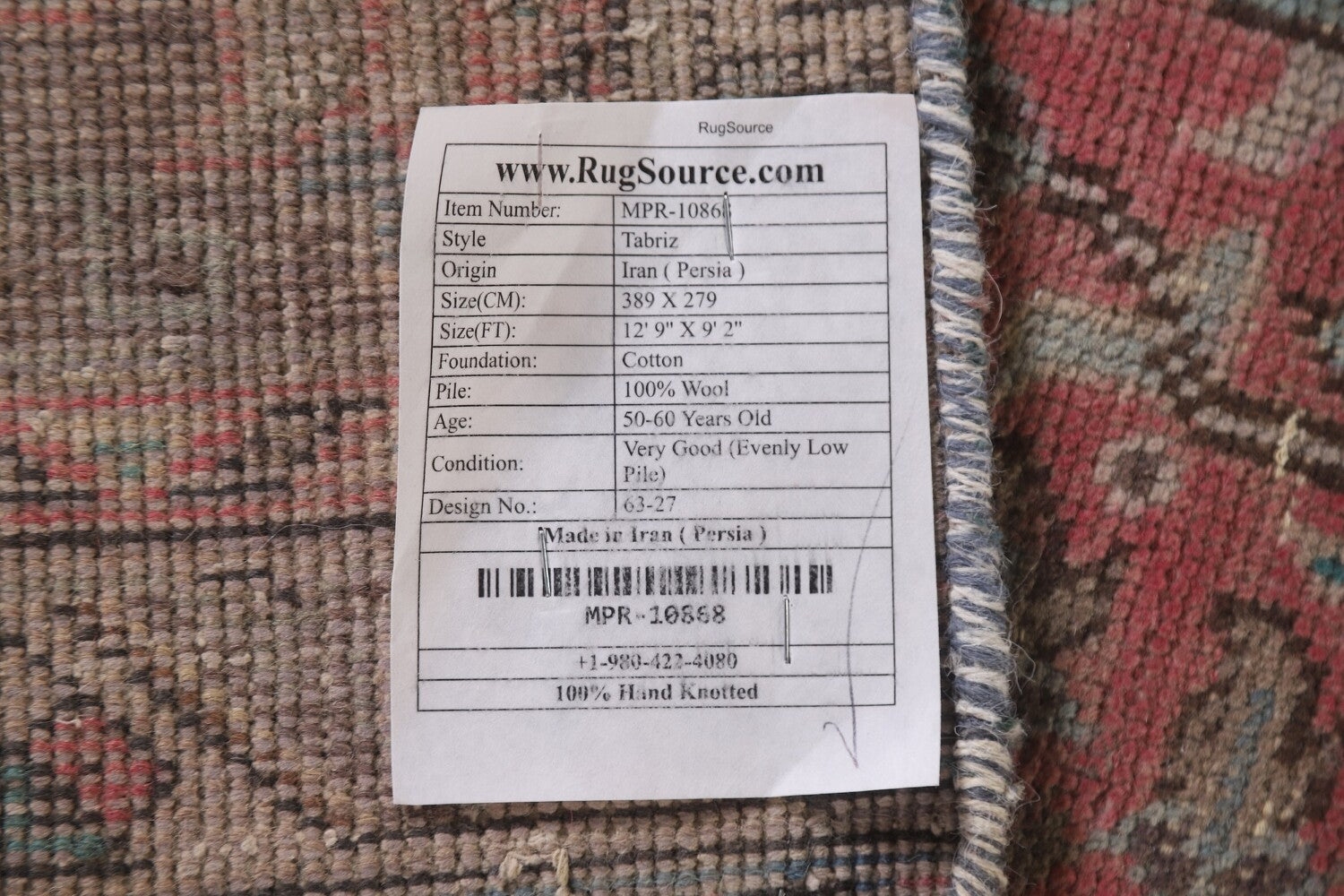 A Beautiful Genuine Persia ( Persia ) Tabriz rug is Hand Knotted by skillful weavers in Persia ( Persia ) with 100% Wool Material. This rug is in Very Good (Evenly Low Pile) condition. dimensions are 12' 9'' X 9' 2'' in foot and 389 X 279 in centimeter. the primary color is Pink.