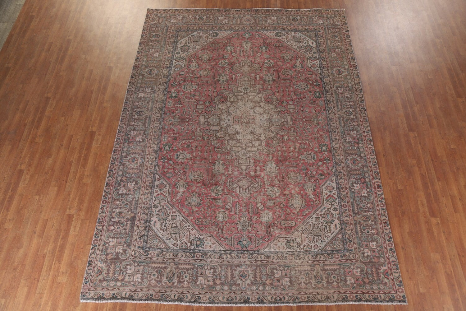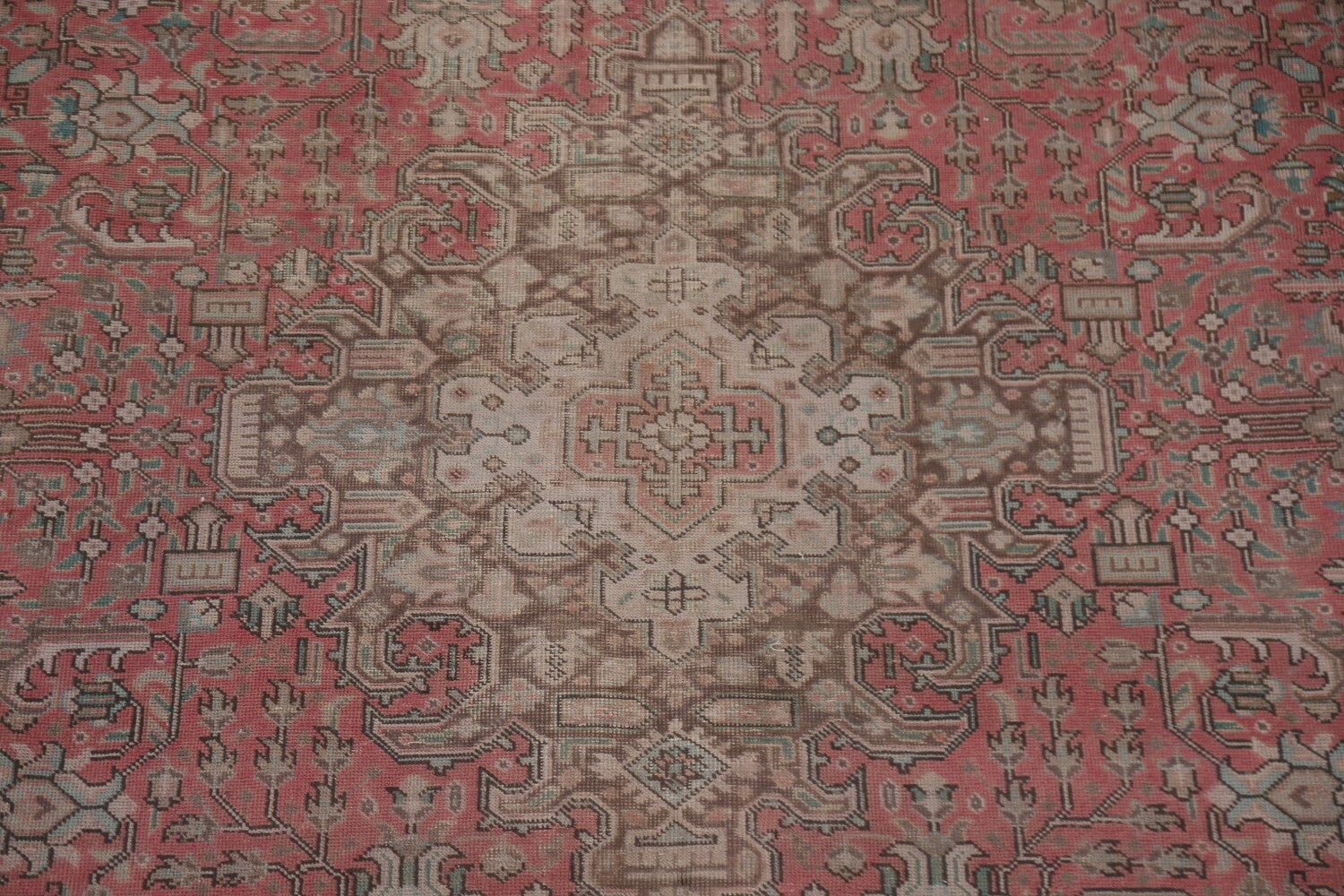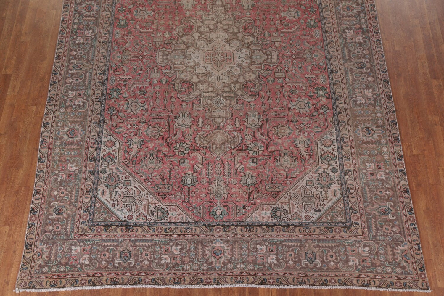A Beautiful Genuine Persia ( Persia ) Tabriz rug is Hand Knotted by skillful weavers in Persia ( Persia ) with 100% Wool Material. This rug is in Very Good (Evenly Low Pile) condition. dimensions are 12' 9'' X 9' 2'' in foot and 389 X 279 in centimeter. the primary color is Pink.