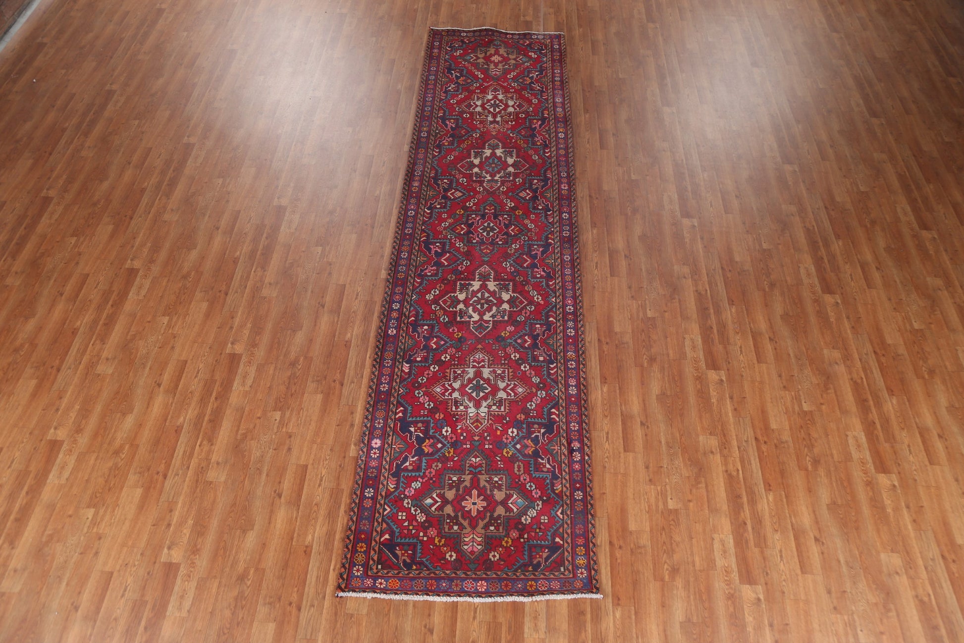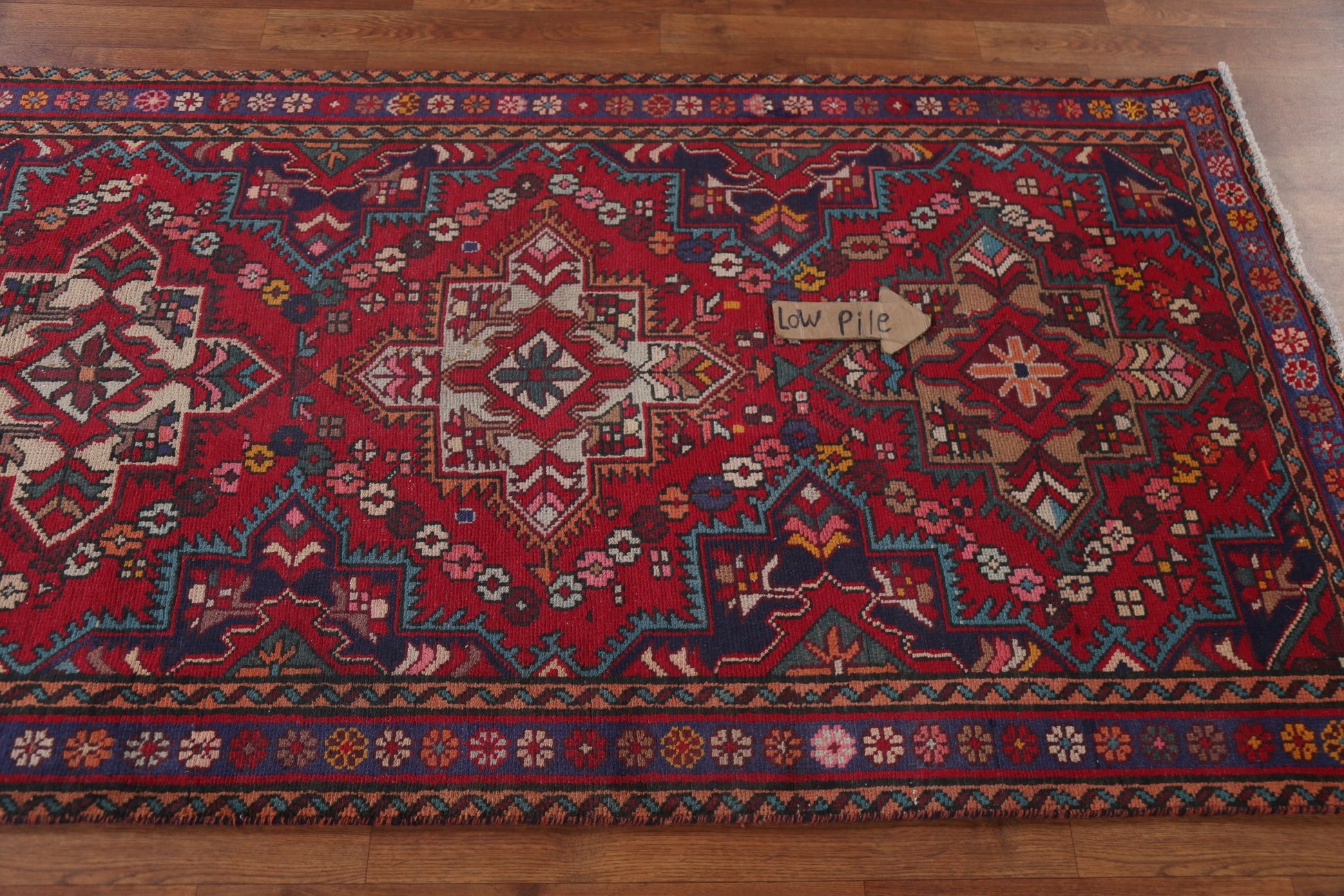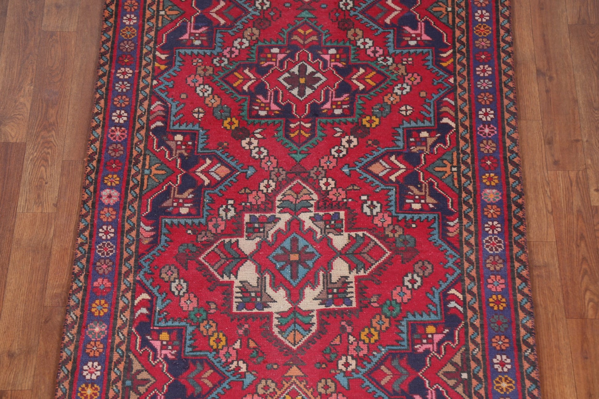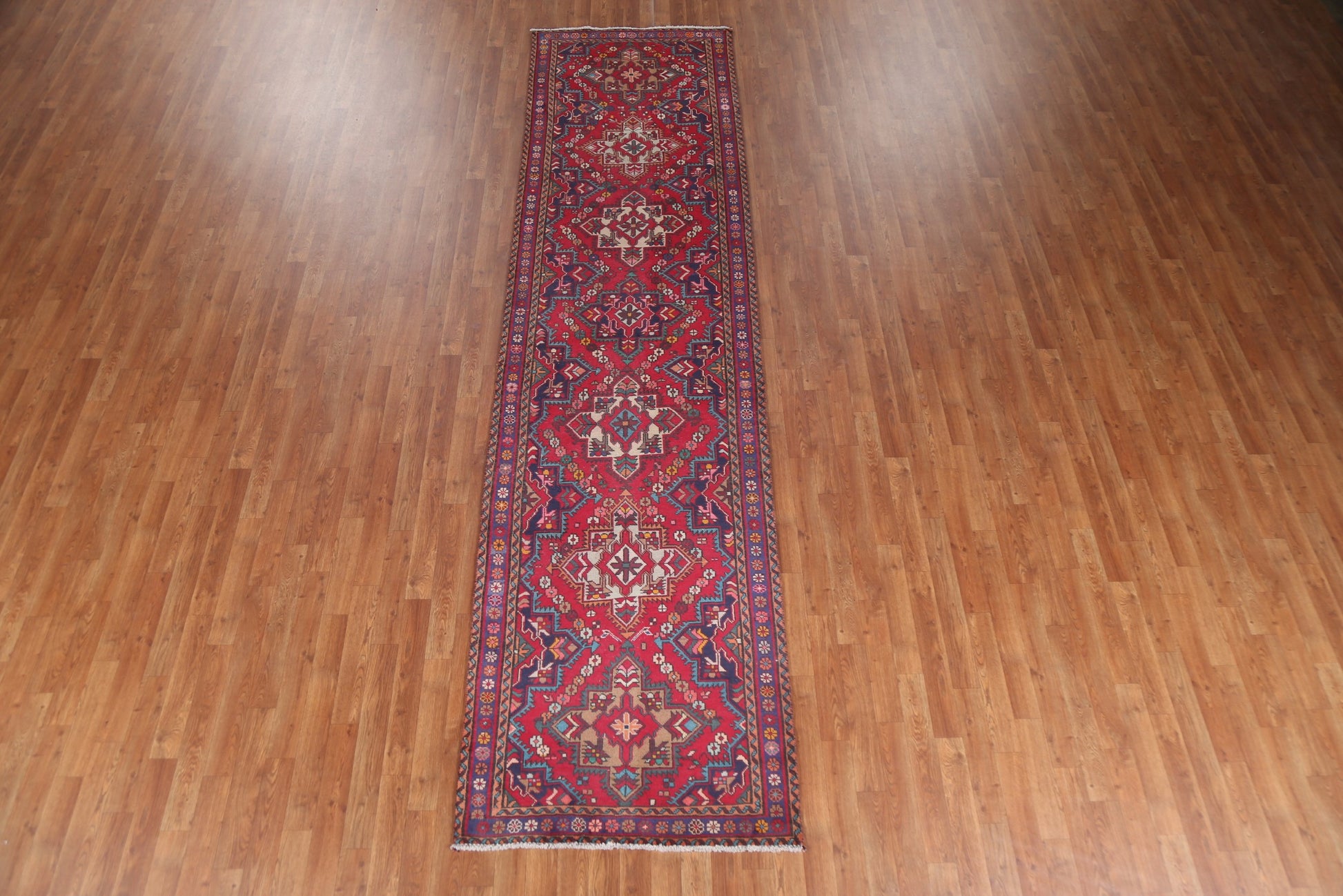 A Beautiful Genuine Persia ( Persia ) Tabriz rug is Hand Knotted by skillful weavers in Persia ( Persia ) with 100% Wool Material. This rug is in Very Good ( Low Pile ) condition. dimensions are 12' 8'' X 3' 2'' in foot and 386 X 97 in centimeter. the primary color is Red.