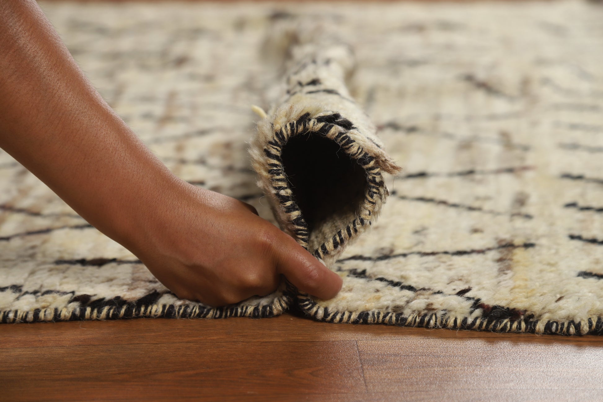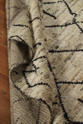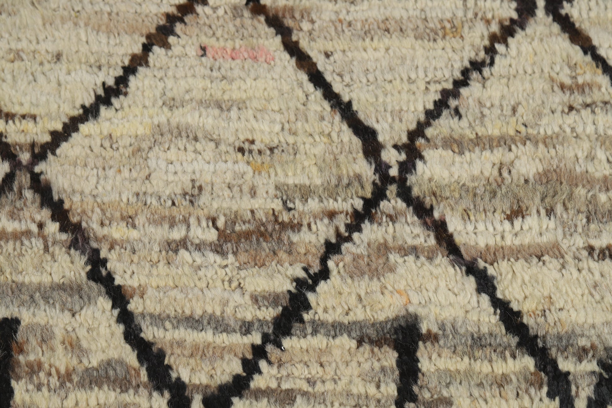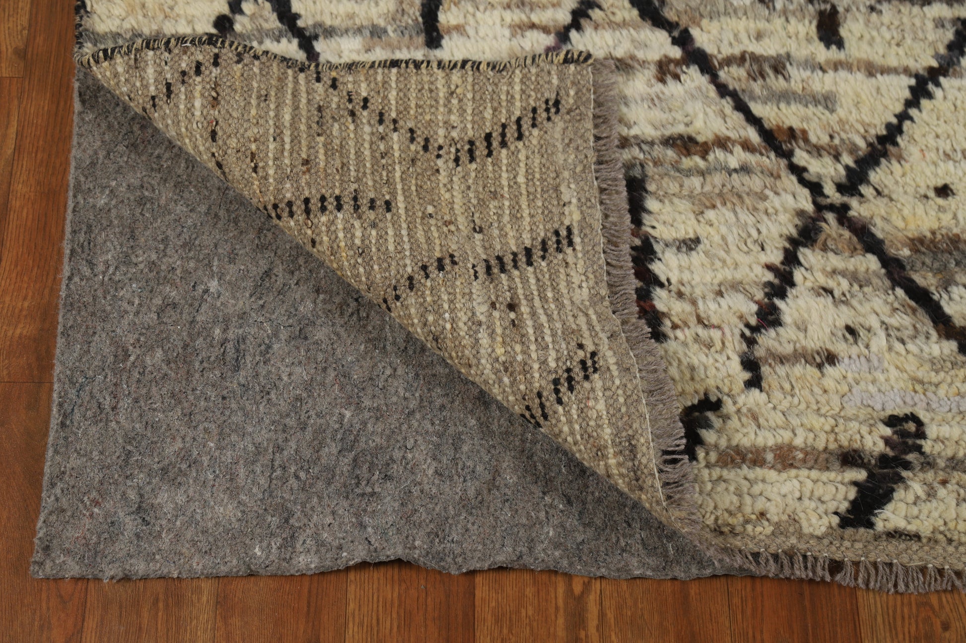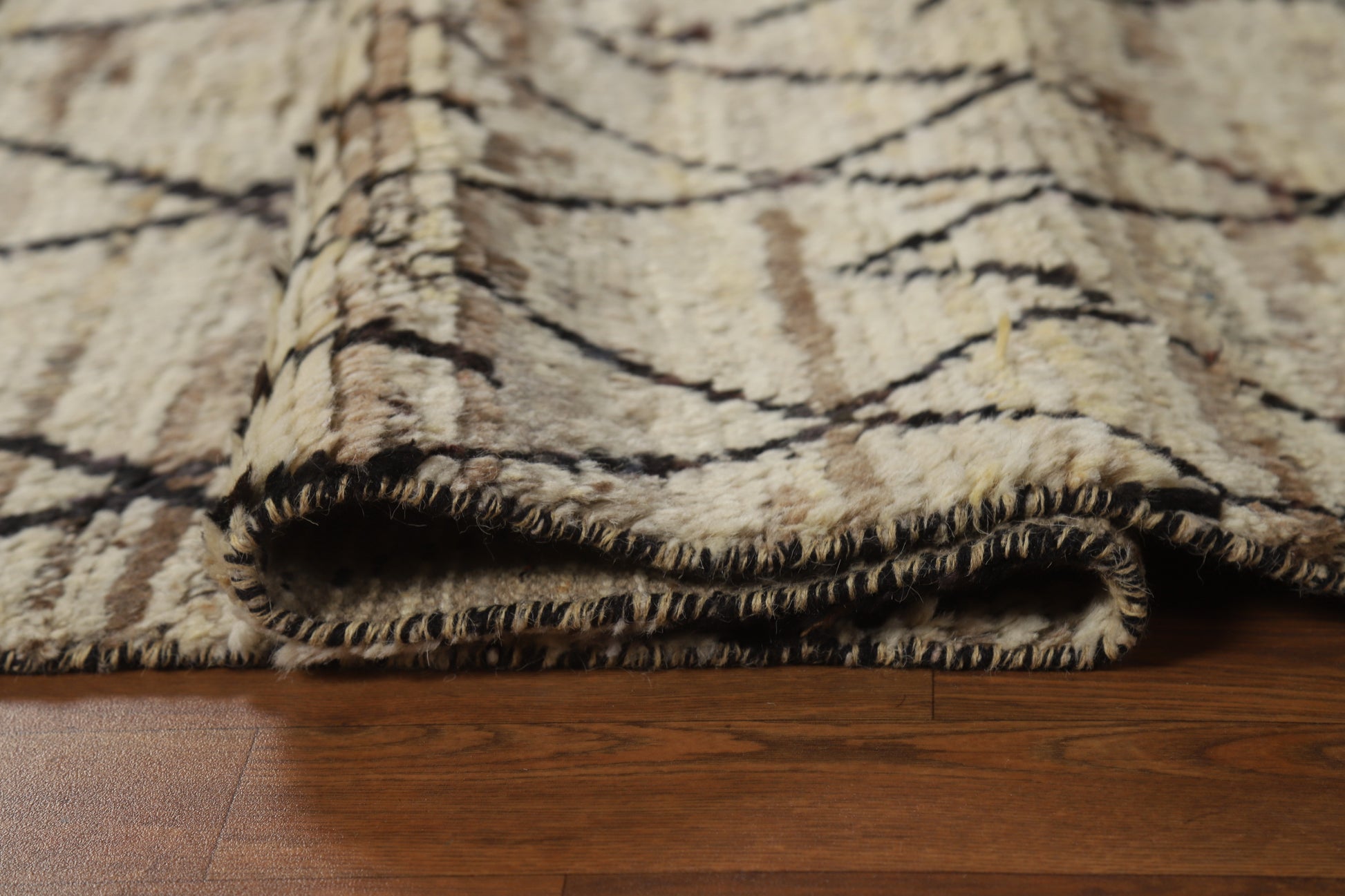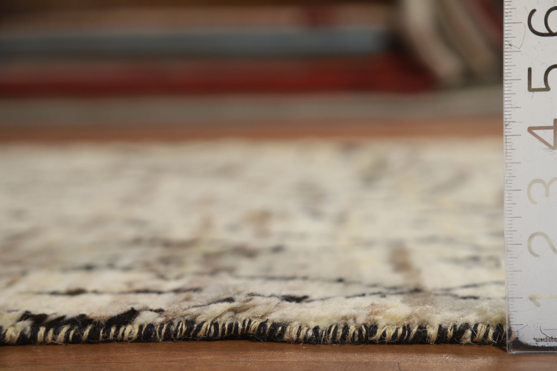 A Beautiful Genuine Pakistan Moroccan rug is Hand Knotted by skillful weavers in Pakistan with 100% Wool Material. This rug is in New, First Quality condition. dimensions are 9' 5'' X 6' 11'' in foot and 287 X 211 in centimeter. the primary color is Beige & Ivories.
