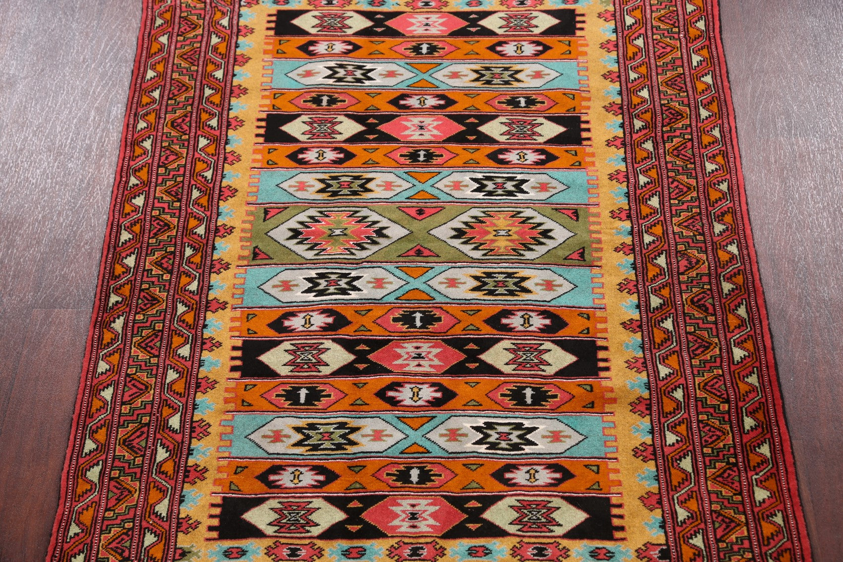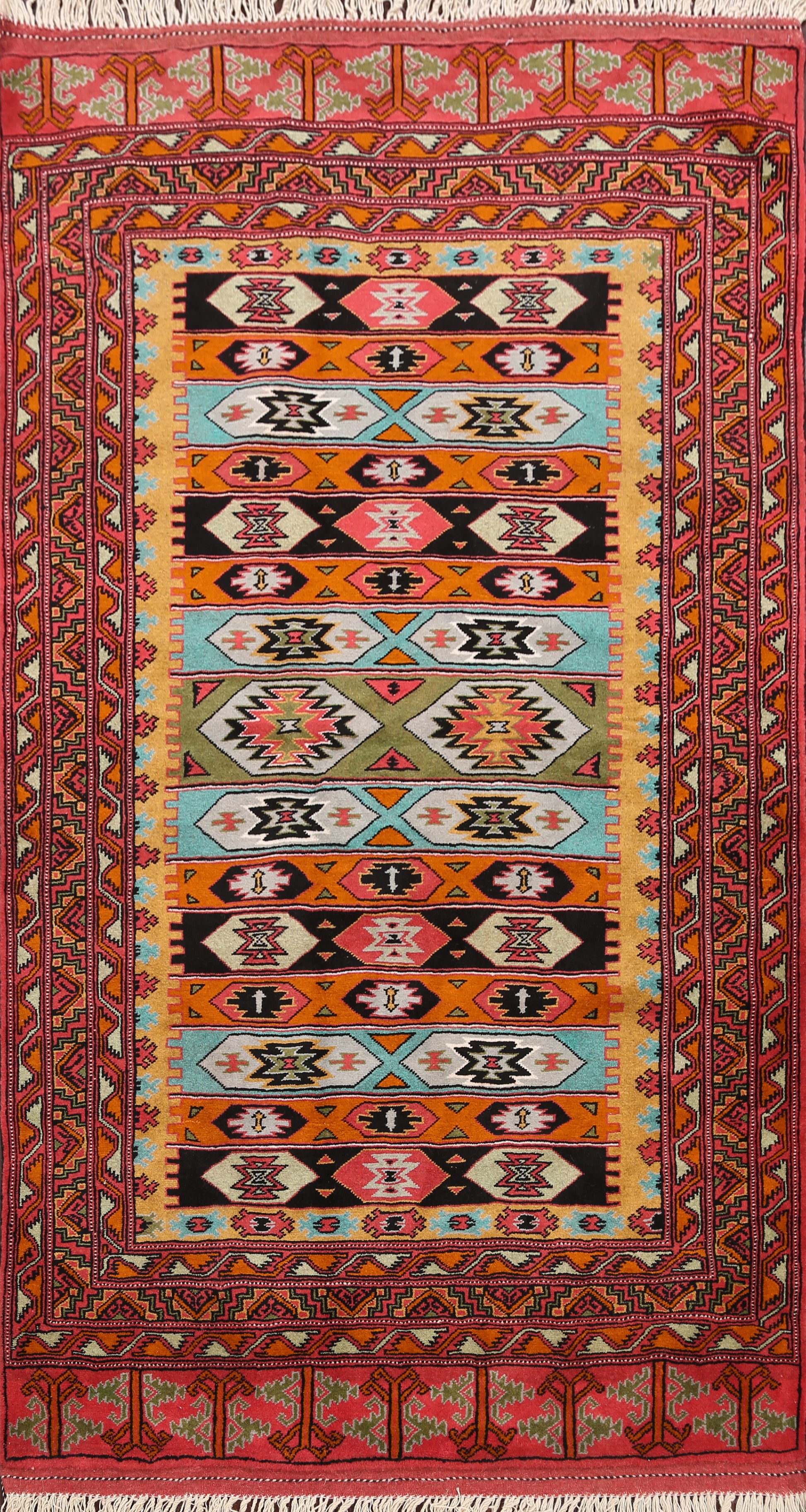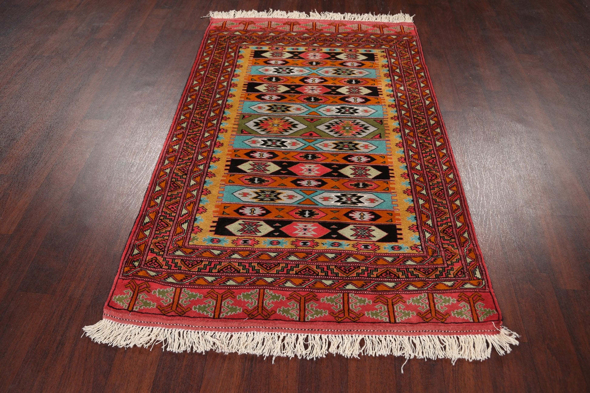A Beautiful Genuine Persia ( Persia ) Turkoman rug is Hand Knotted by skillful weavers in Persia ( Persia ) with 100% Wool Material. This rug is in New, First Quality condition. dimensions are 5' 8'' X 3' 9'' in foot and 173 X 114 in centimeter. the primary color is Multi-Colored.
