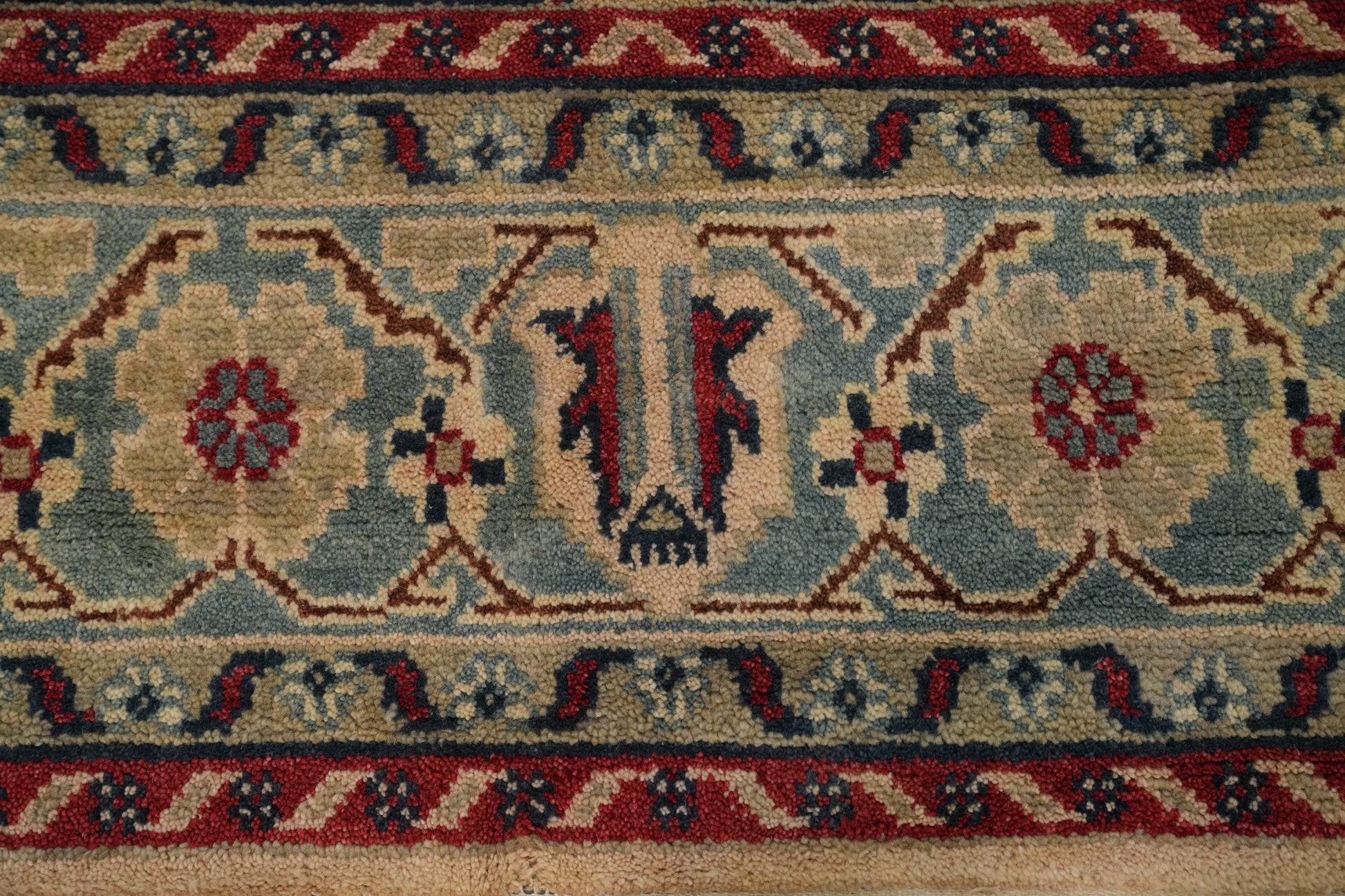 A Beautiful Genuine India Viss rug is Hand Knotted by skillful weavers in India with 100% Wool Material. This rug is in New, First Quality condition. dimensions are 12' 0'' X 8' 11'' in foot and 366 X 272 in centimeter. the primary color is Peach.