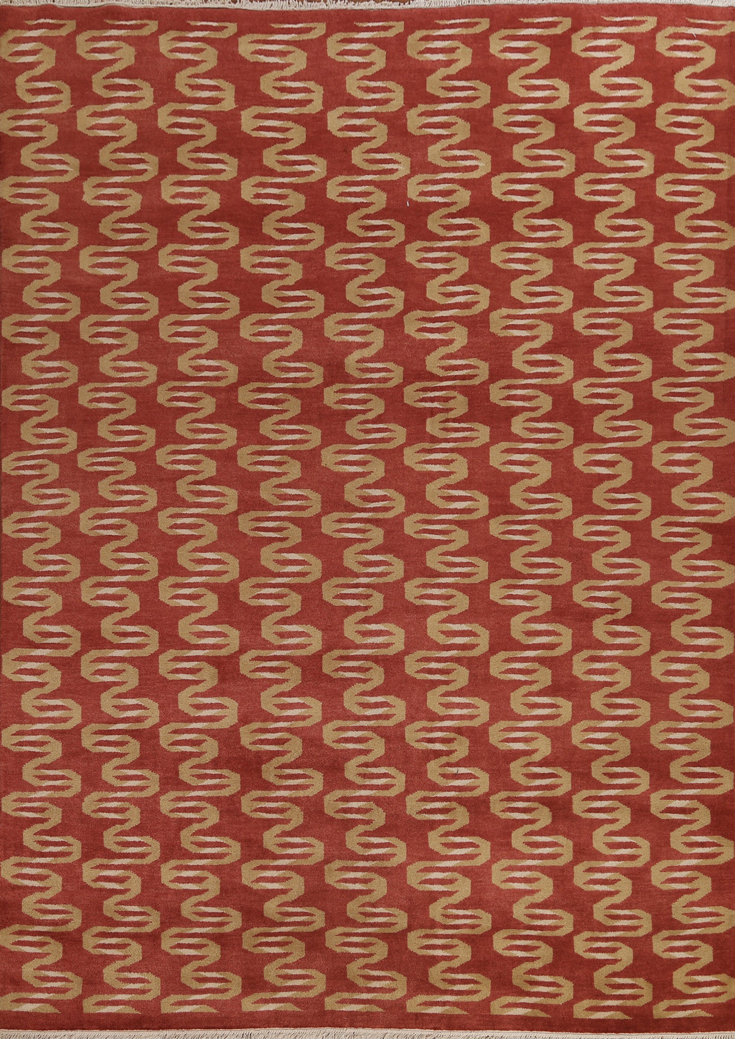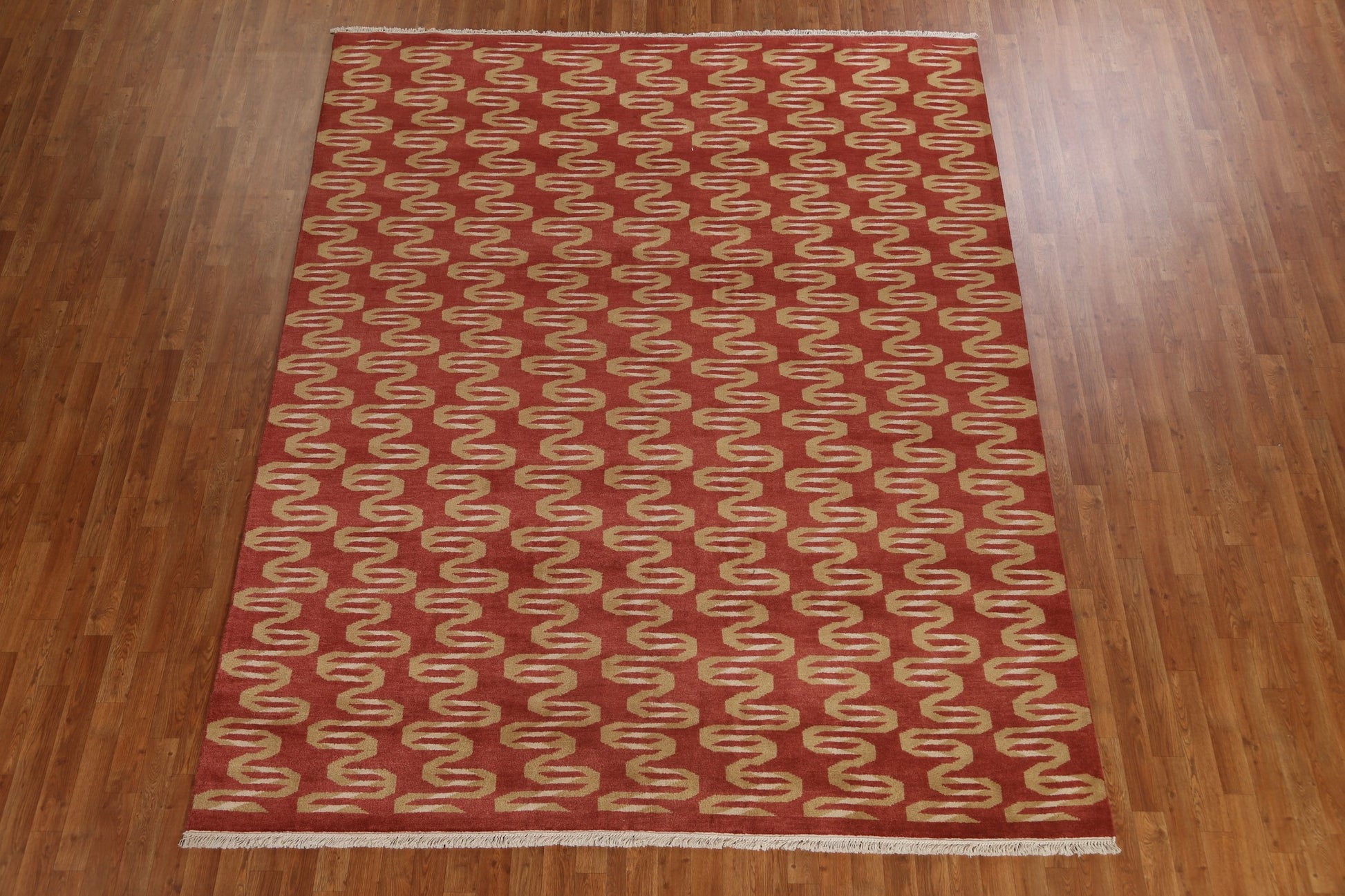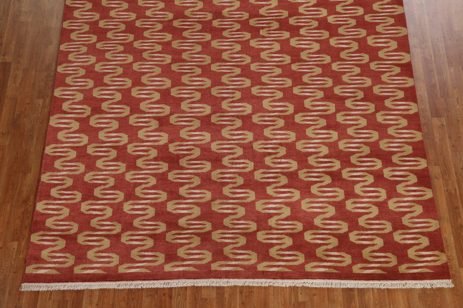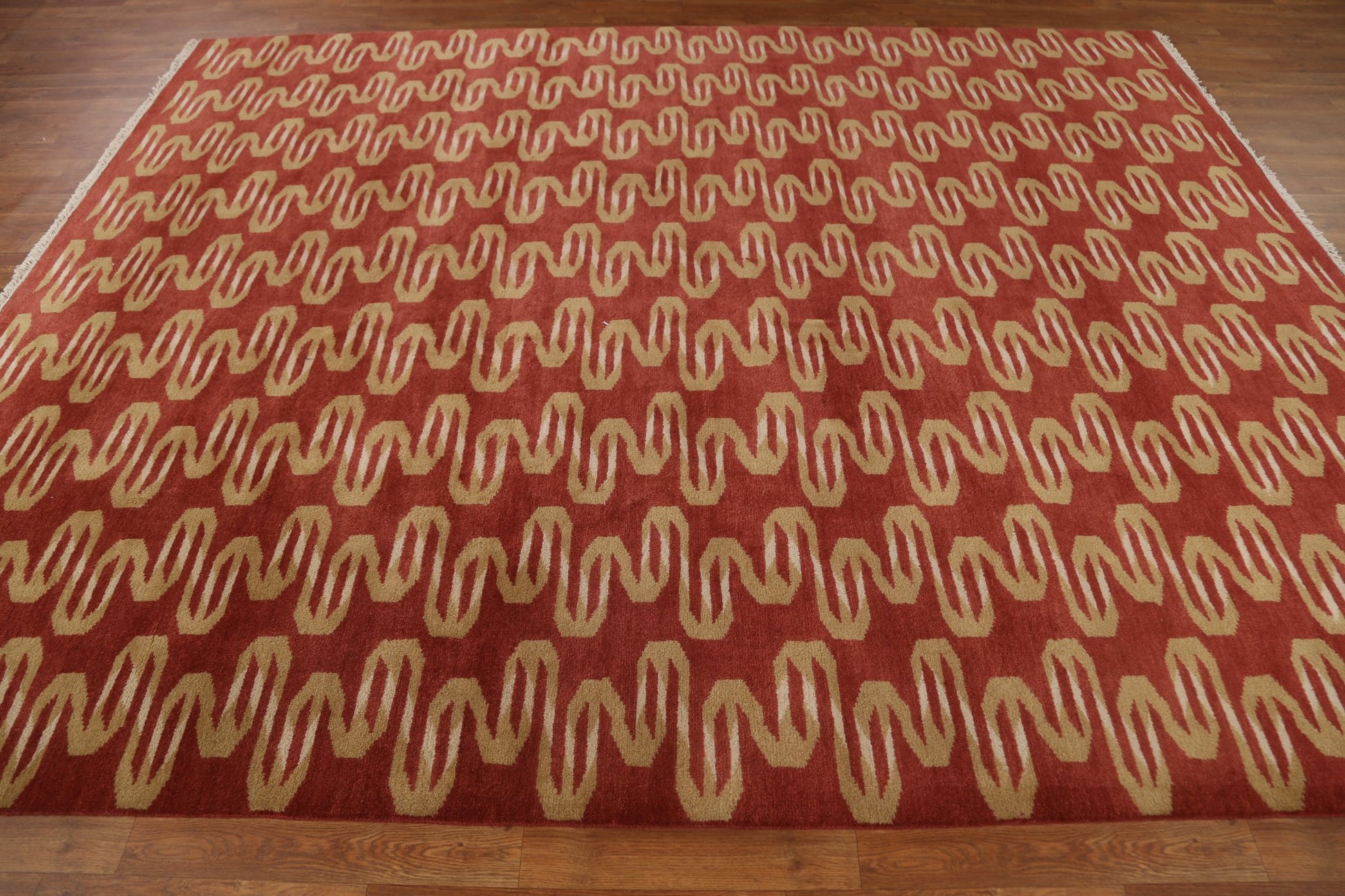 A Beautiful Genuine India Abstract rug is Hand Knotted by skillful weavers in India with 100% Wool Material. This rug is in New, First Quality condition. dimensions are 9' 11'' X 8' 0'' in foot and 302 X 244 in centimeter. the primary color is Red.