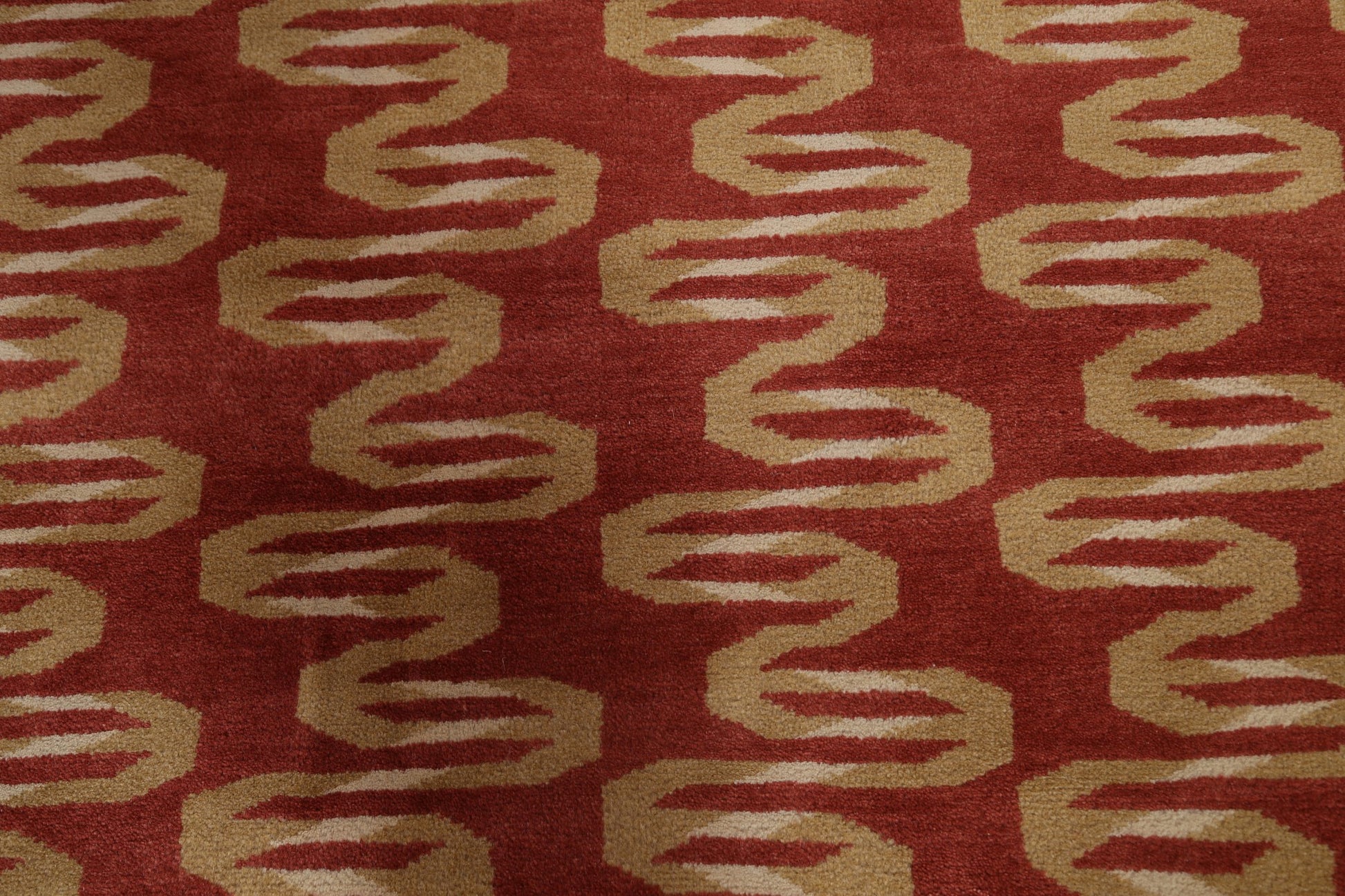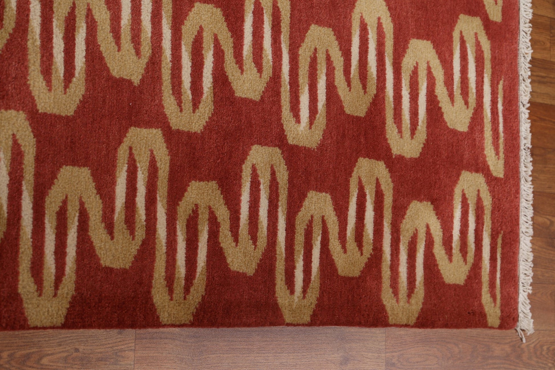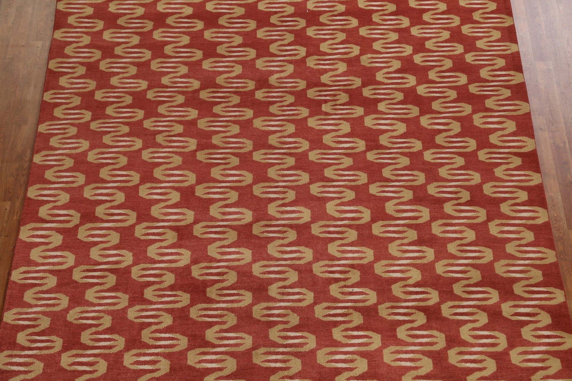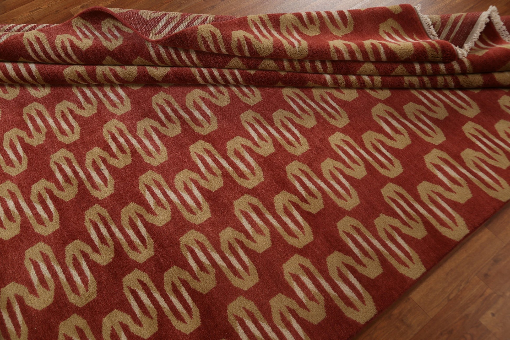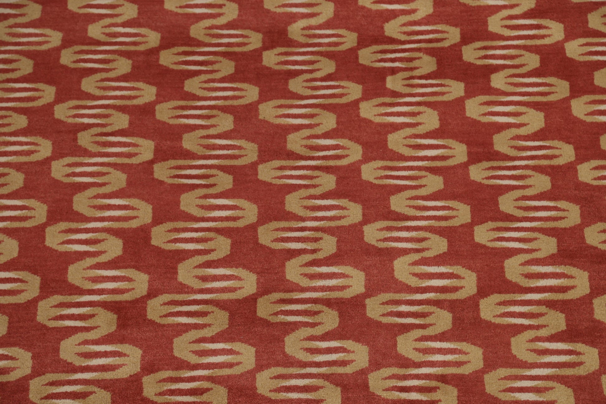 A Beautiful Genuine India Abstract rug is Hand Knotted by skillful weavers in India with 100% Wool Material. This rug is in New, First Quality condition. dimensions are 9' 11'' X 8' 0'' in foot and 302 X 244 in centimeter. the primary color is Red.