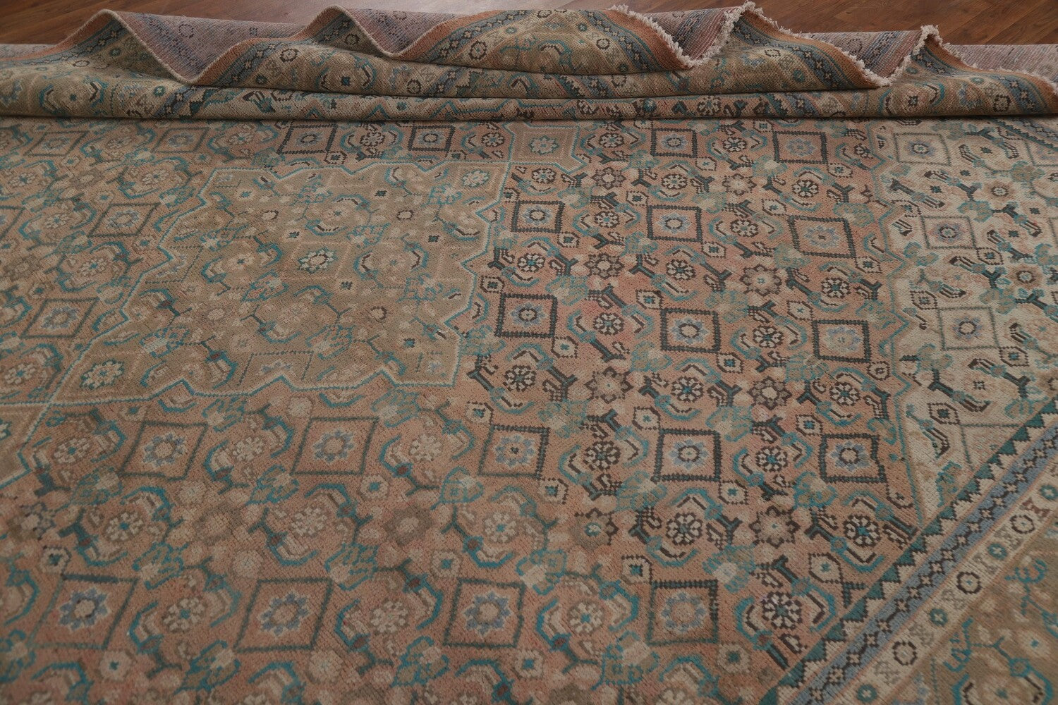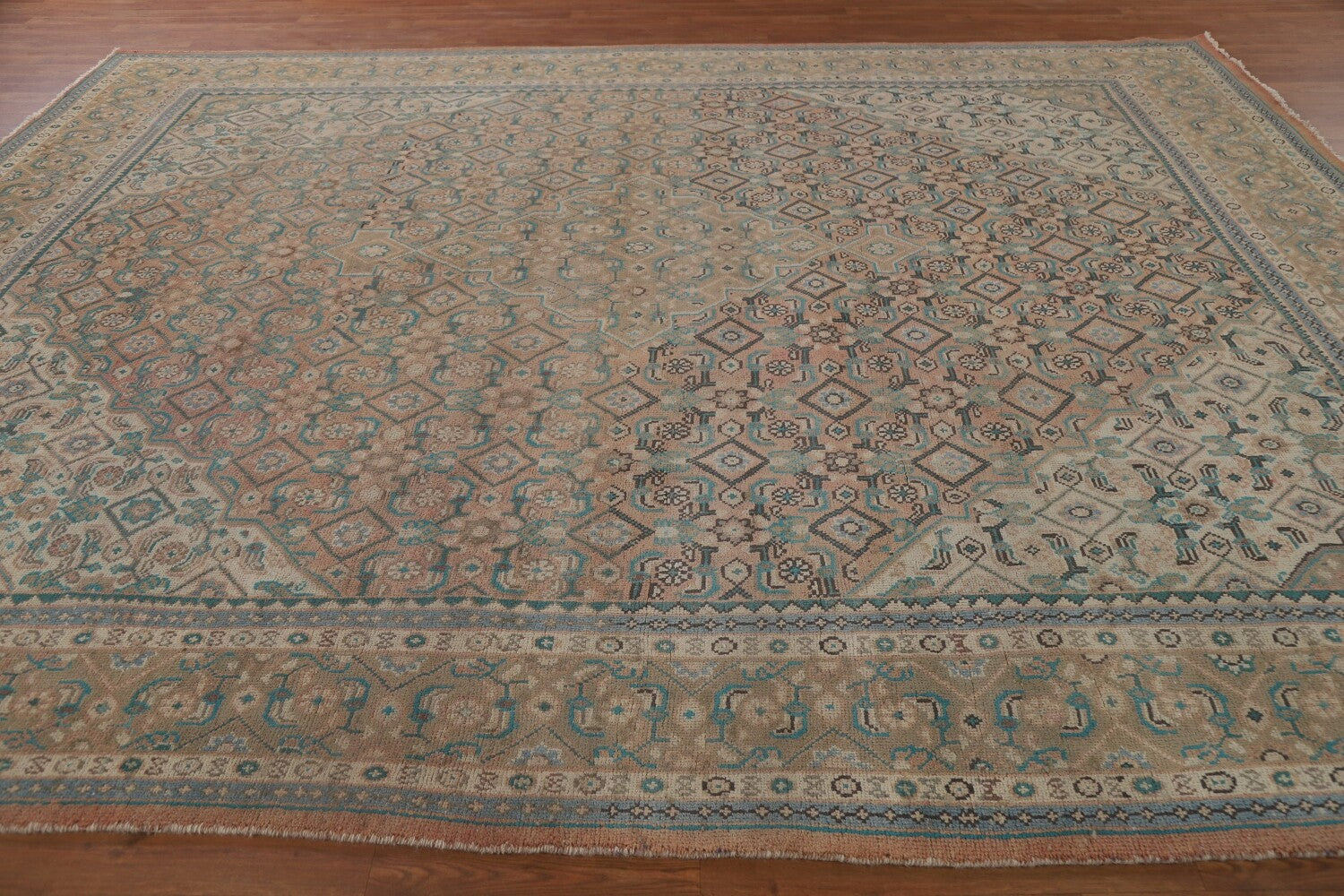 A Beautiful Genuine Persia ( Persia ) Ardebil rug is Hand Knotted by skillful weavers in Persia ( Persia ) with 100% Wool Material. This rug is in Very Good (Evenly Low Pile-Abrash) condition. dimensions are 12' 0'' X 9' 5'' in foot and 366 X 287 in centimeter. the primary color is Coral.