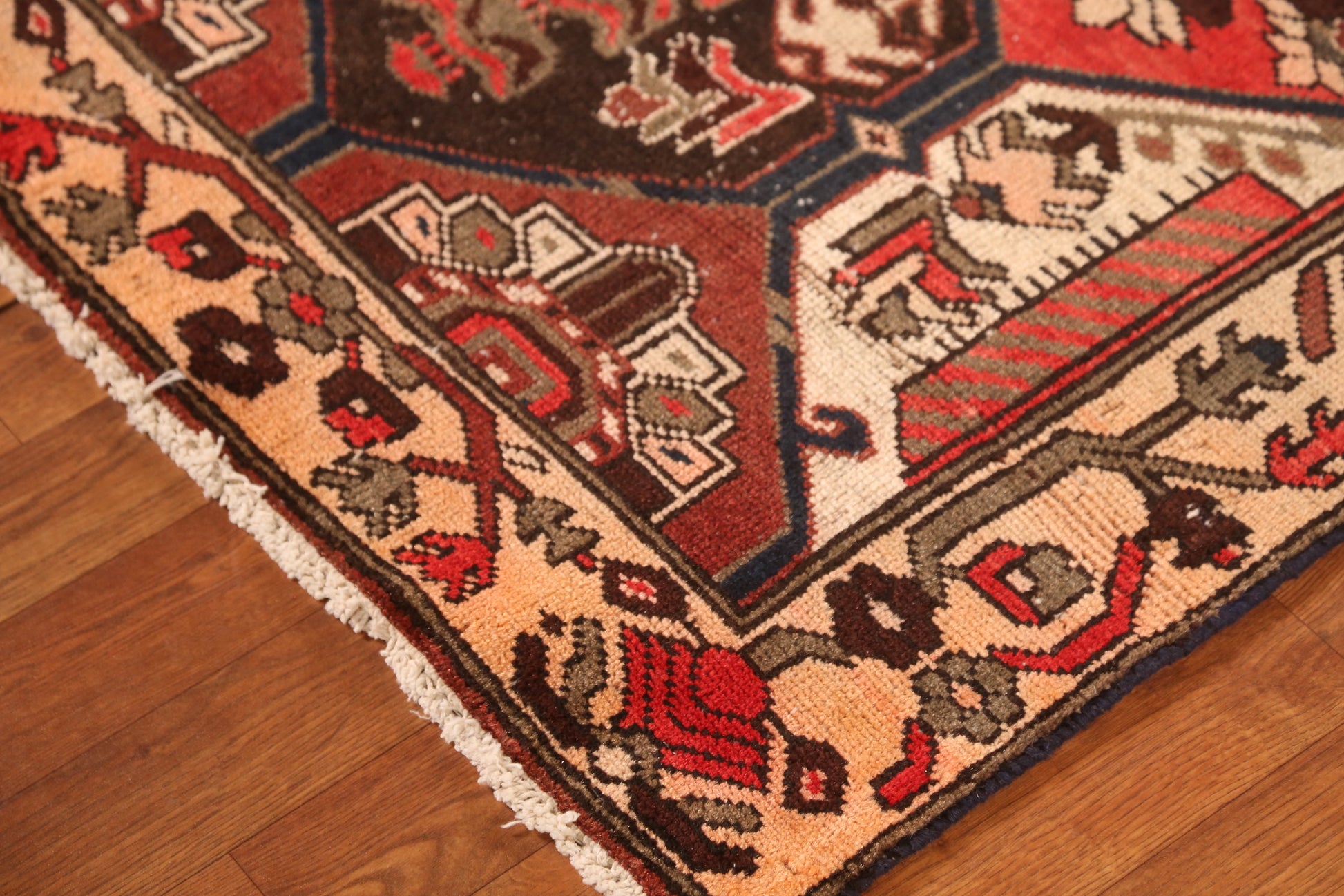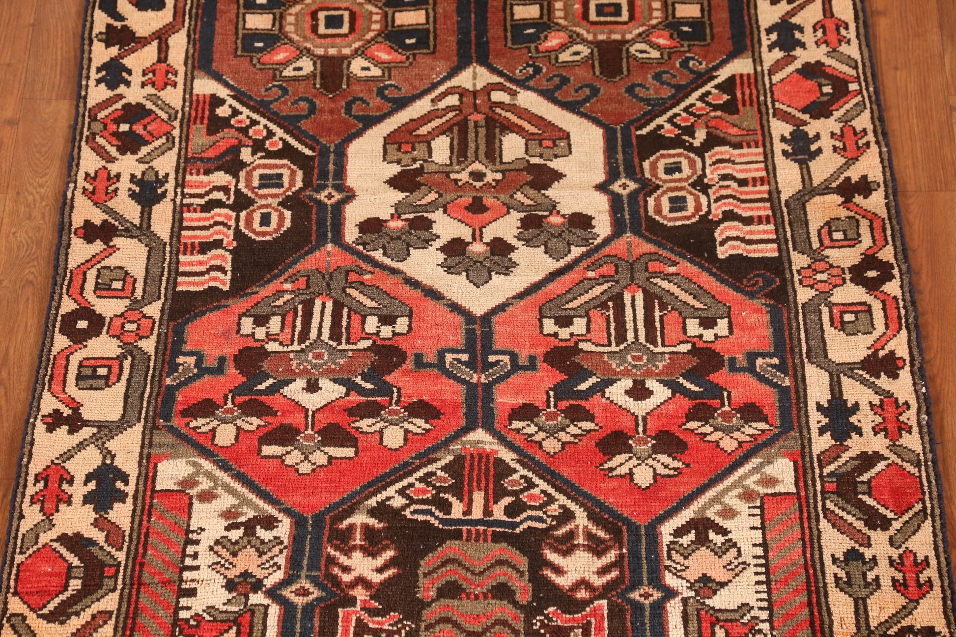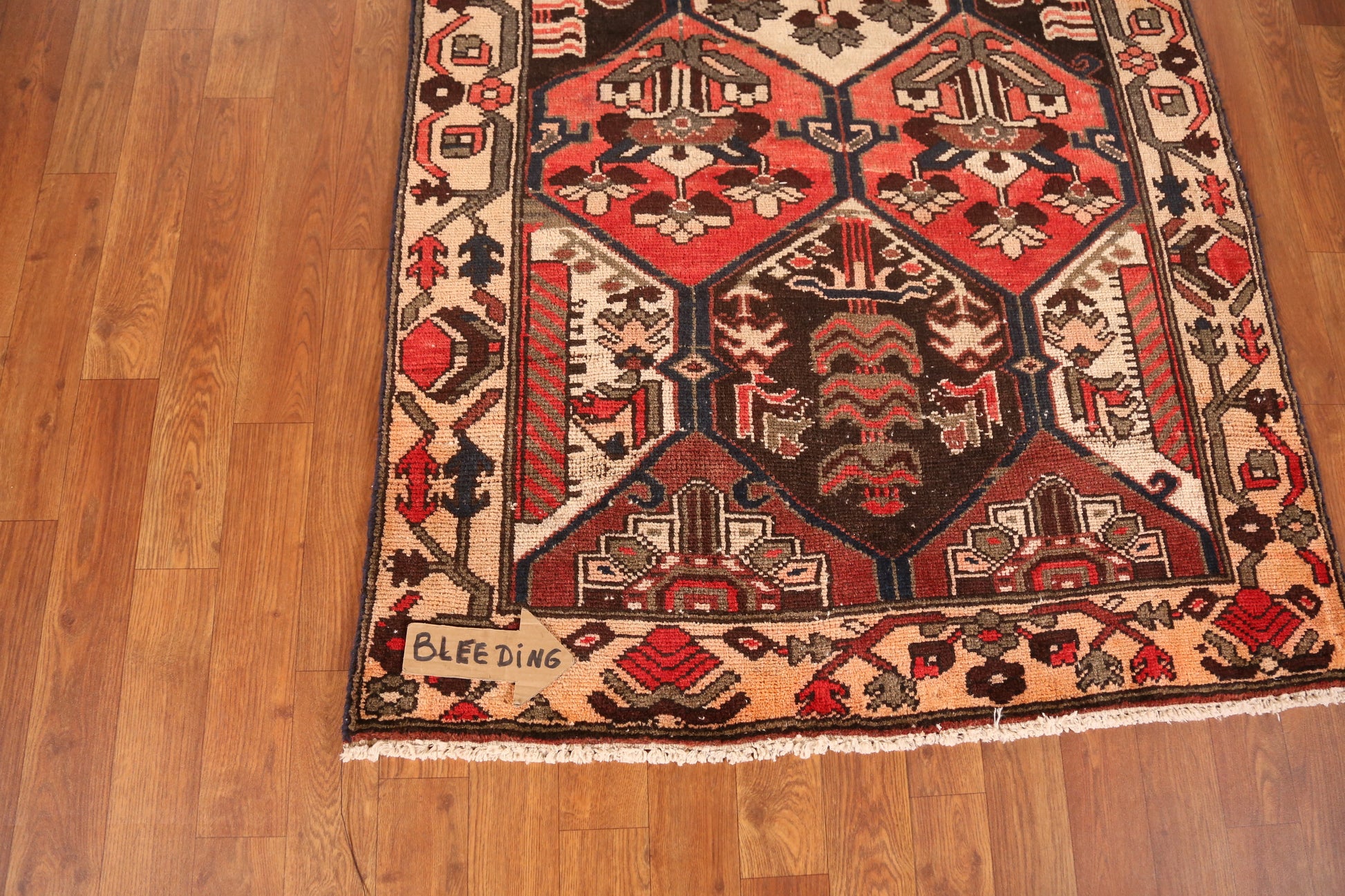 A Beautiful Genuine Persia ( Persia ) Bakhtiari rug is Hand Knotted by skillful weavers in Persia ( Persia ) with 100% Wool Material. This rug is in Very Good ( Low Pile Bleeding ) condition. dimensions are 9' 6'' X 3' 4'' in foot and 290 X 102 in centimeter. the primary color is Oranges & Rust.