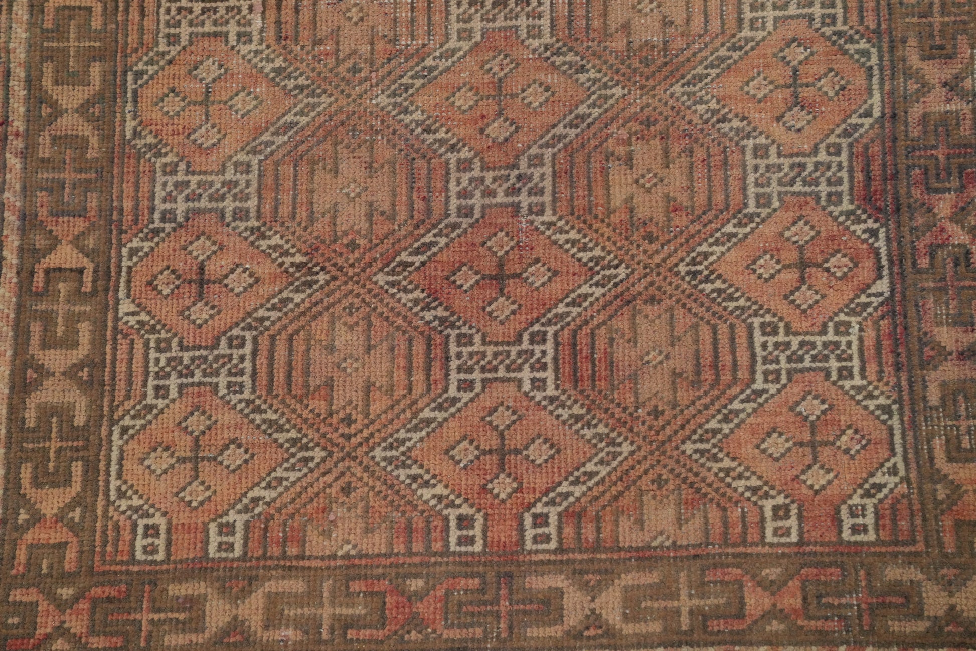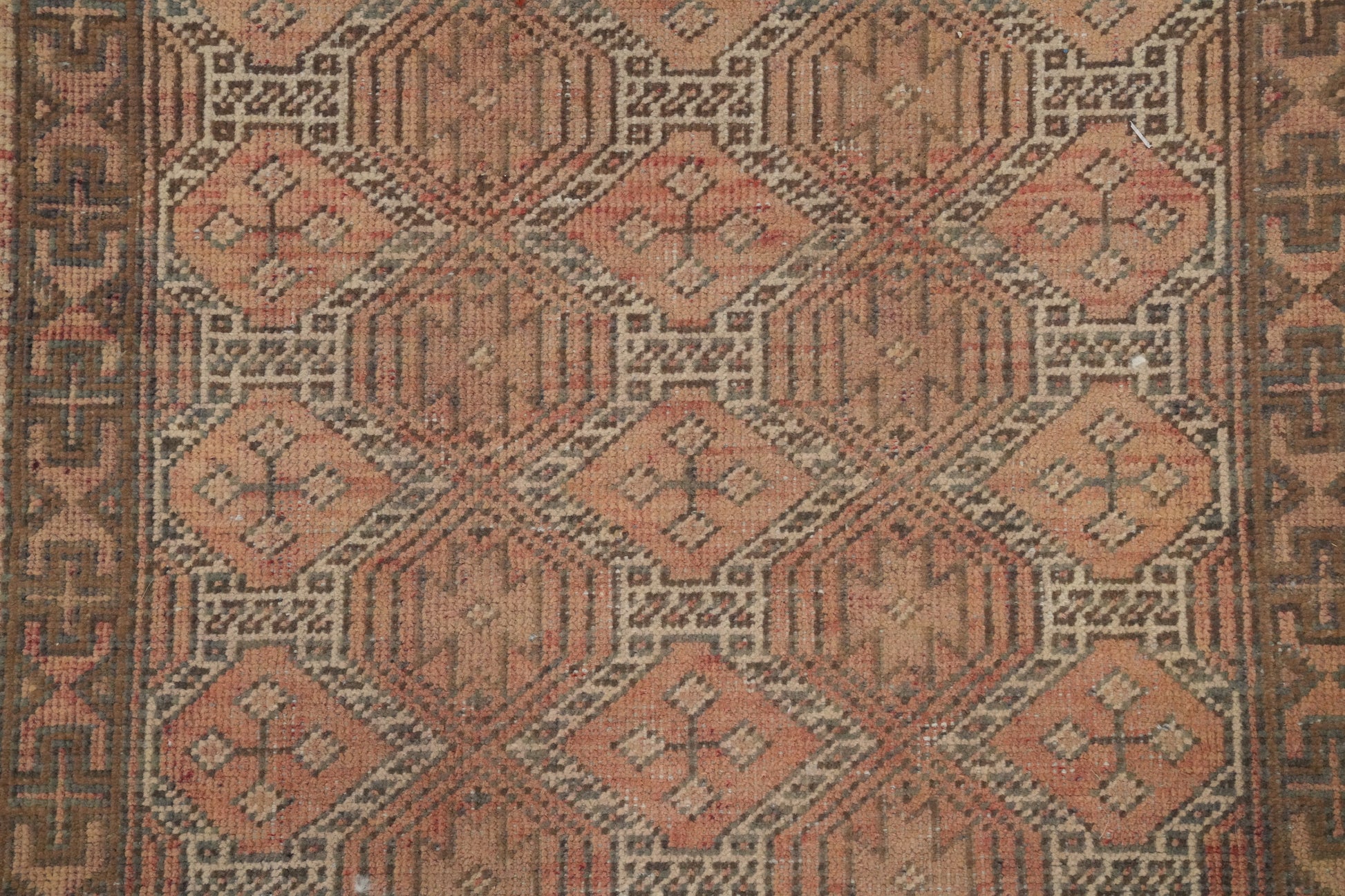 Geometric Wool Balouch Persian Runner Rug 3x7