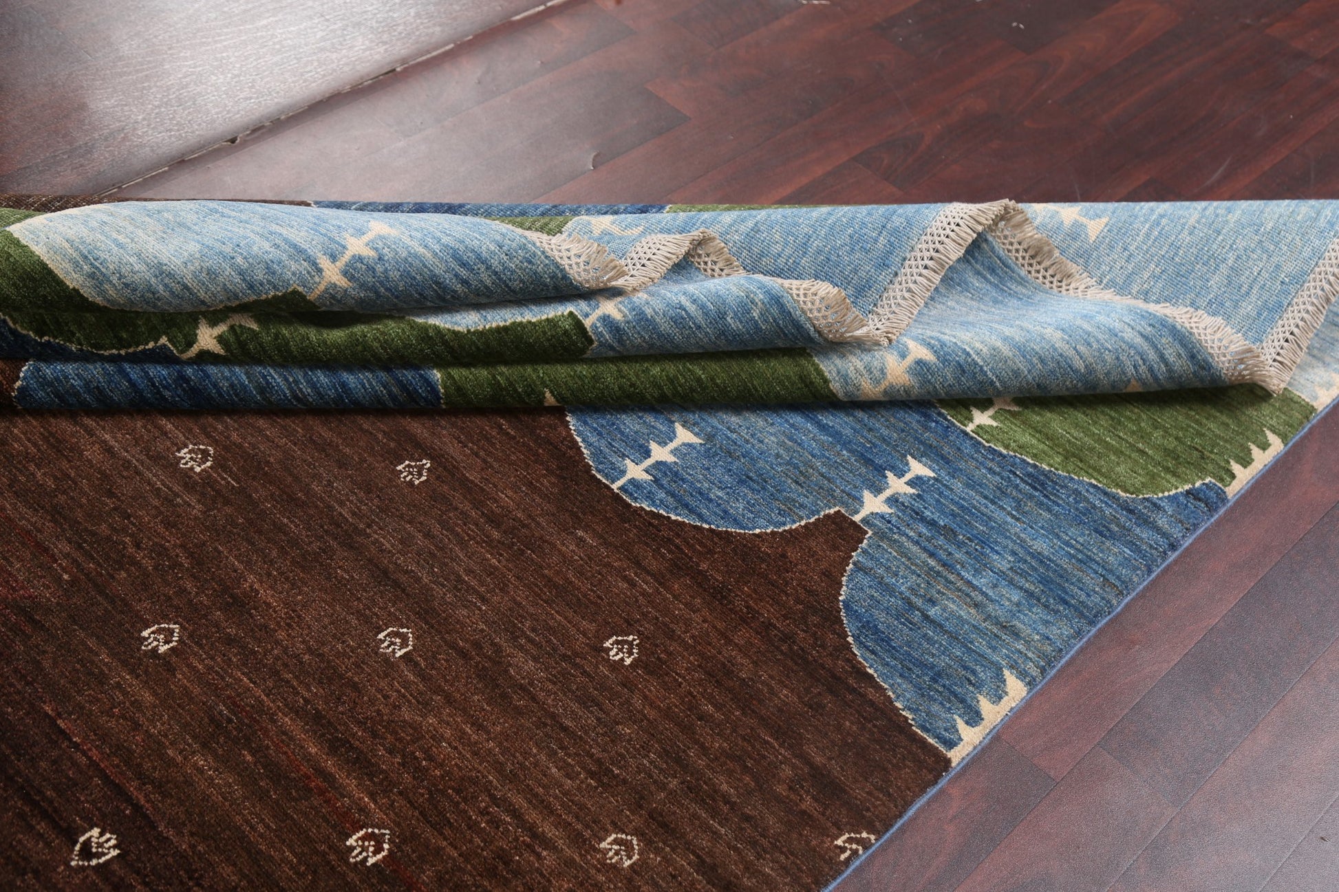 A Beautiful Genuine Pakistan Gabbeh (kashkoli) rug is Hand Knotted by skillful weavers in Pakistan with 100% Wool Material. This rug is in New, First Quality condition. dimensions are 9' 4'' X 6' 5'' in foot and 284 X 196 in centimeter. the primary color is Brown.