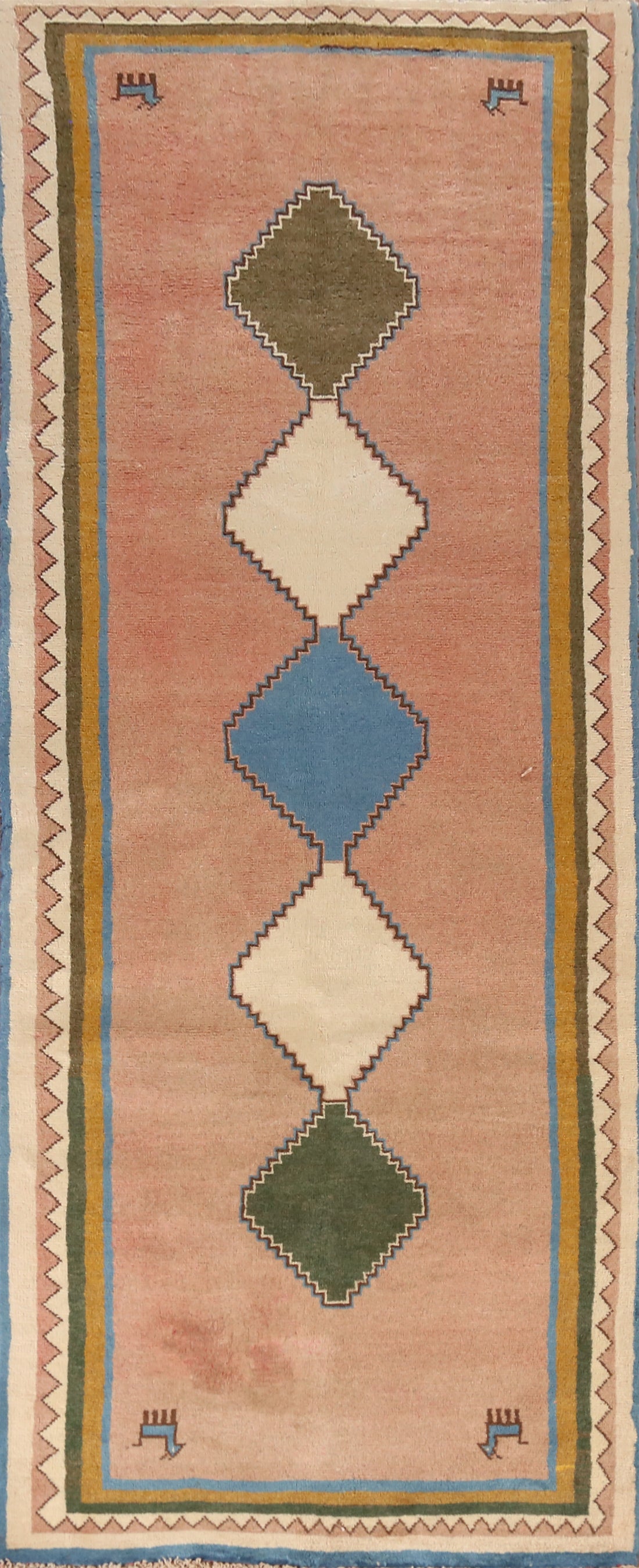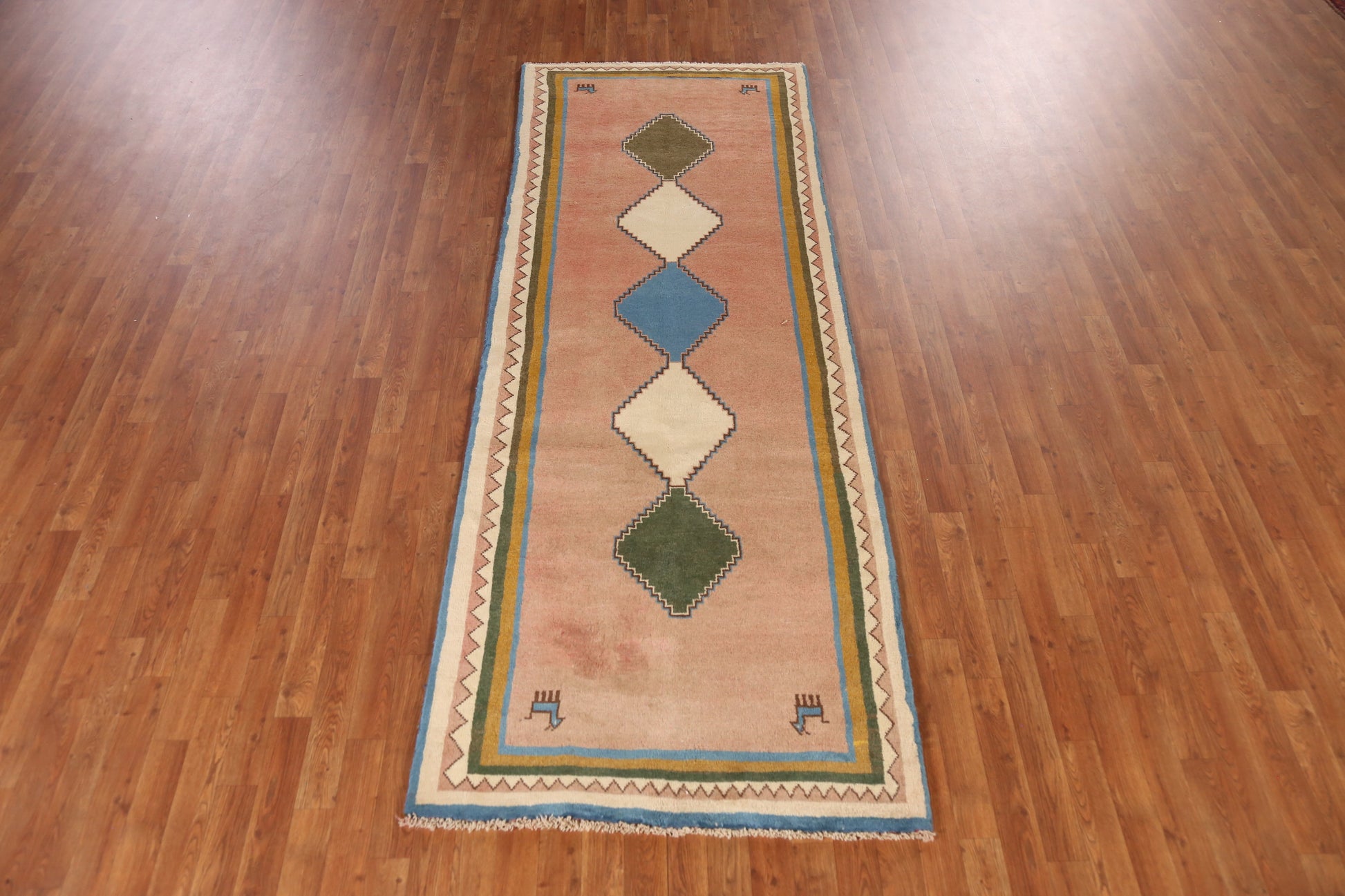 Geometric Wool Gabbeh Persian Runner Rug 3x9
