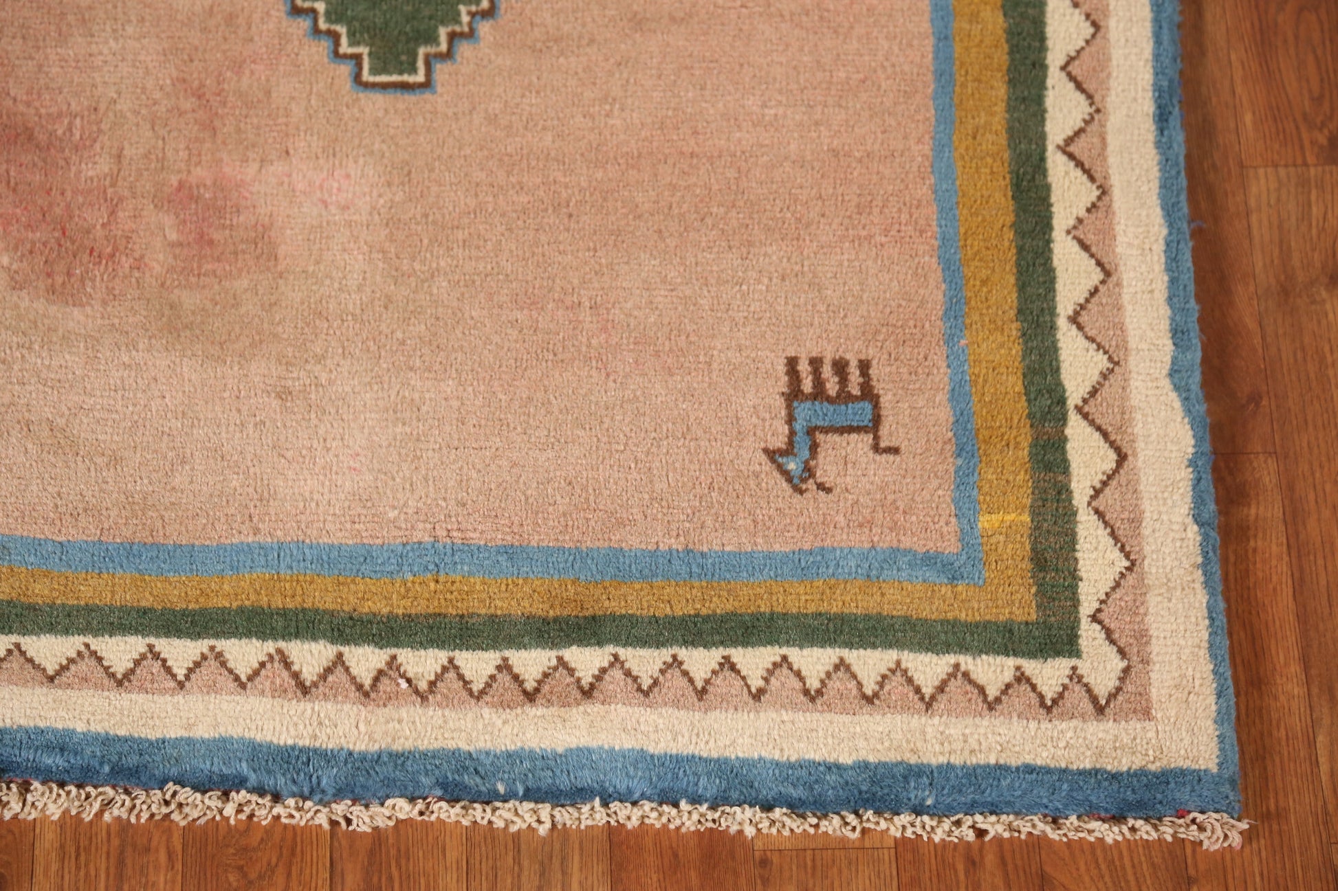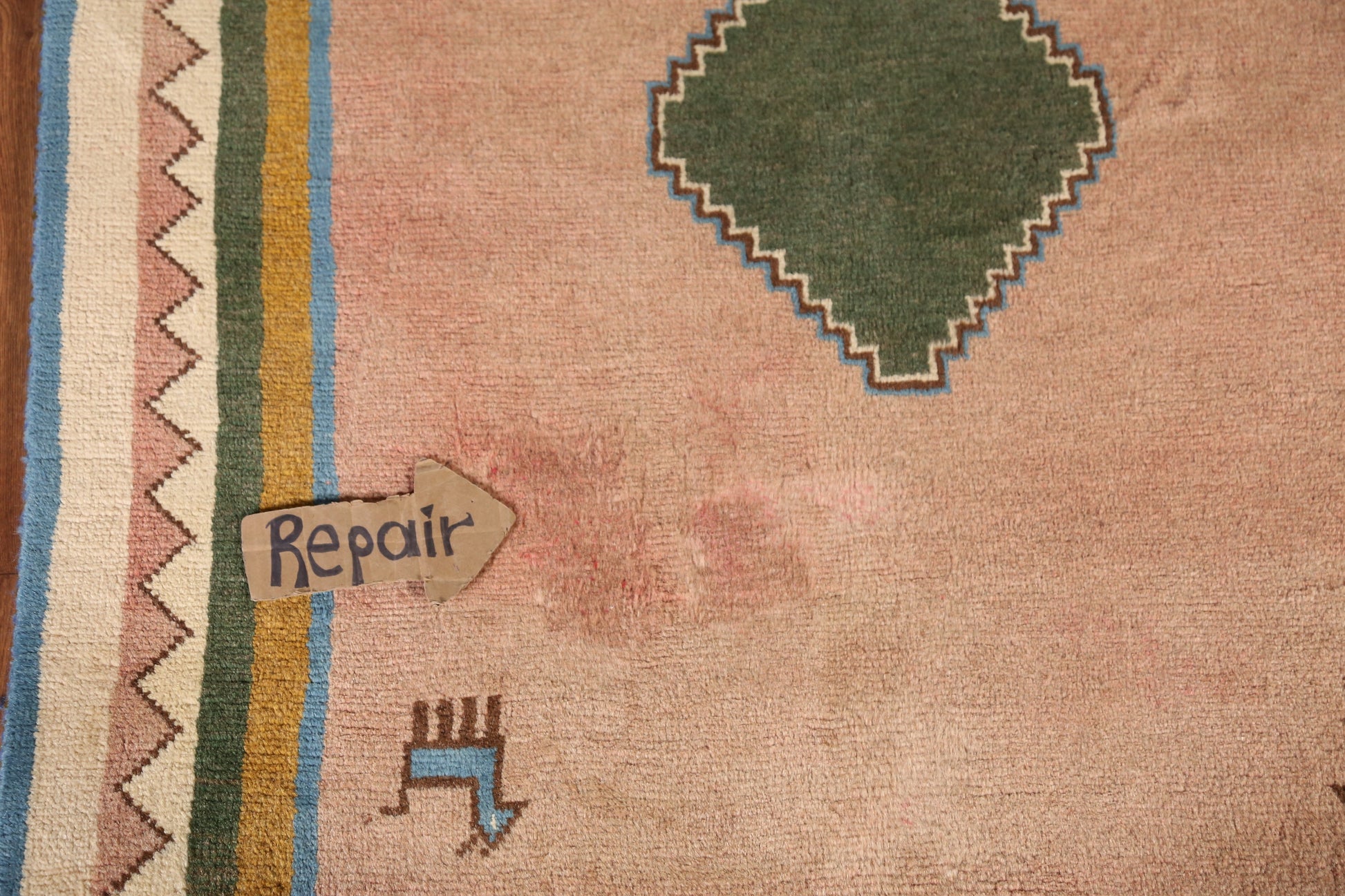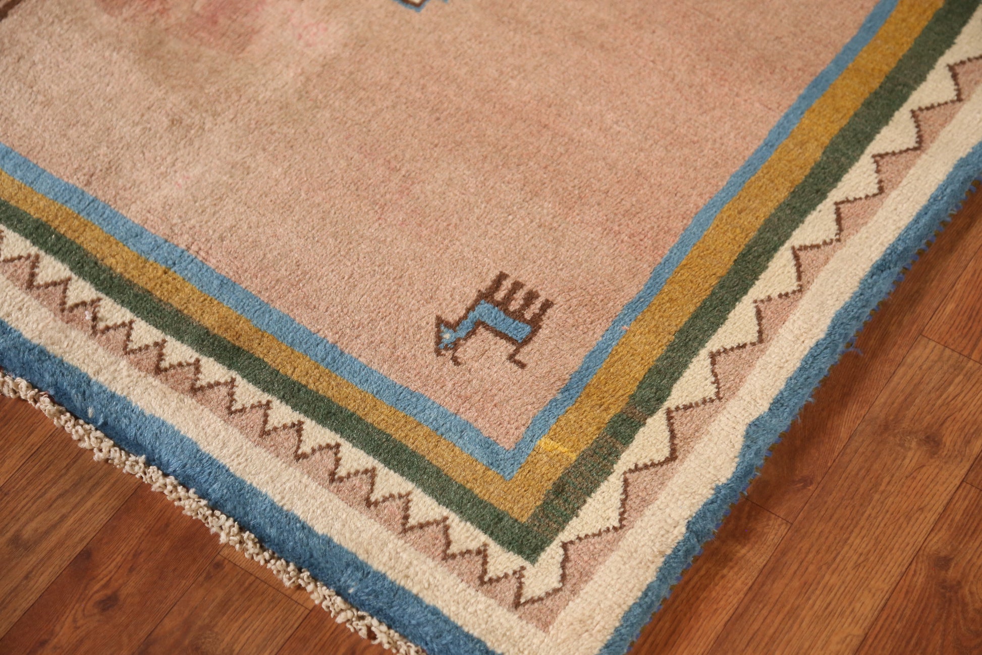 A Beautiful Genuine Persia ( Persia ) Gabbeh rug is Hand Knotted by skillful weavers in Persia ( Persia ) with 100% Wool Material. This rug is in Very Good (Repair) condition. dimensions are 9' 5'' X 3' 5'' in foot and 287 X 104 in centimeter. the primary color is Pink.