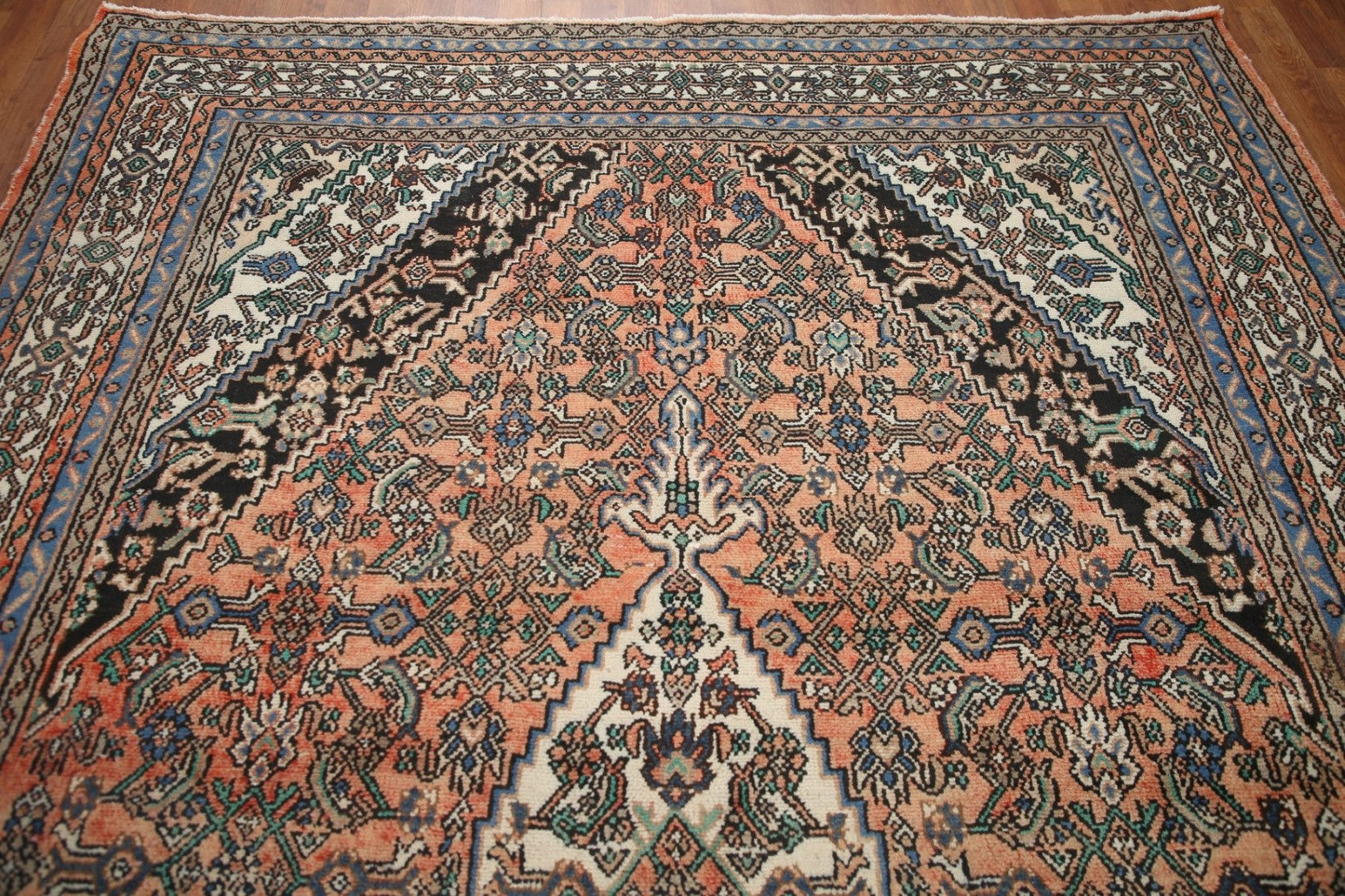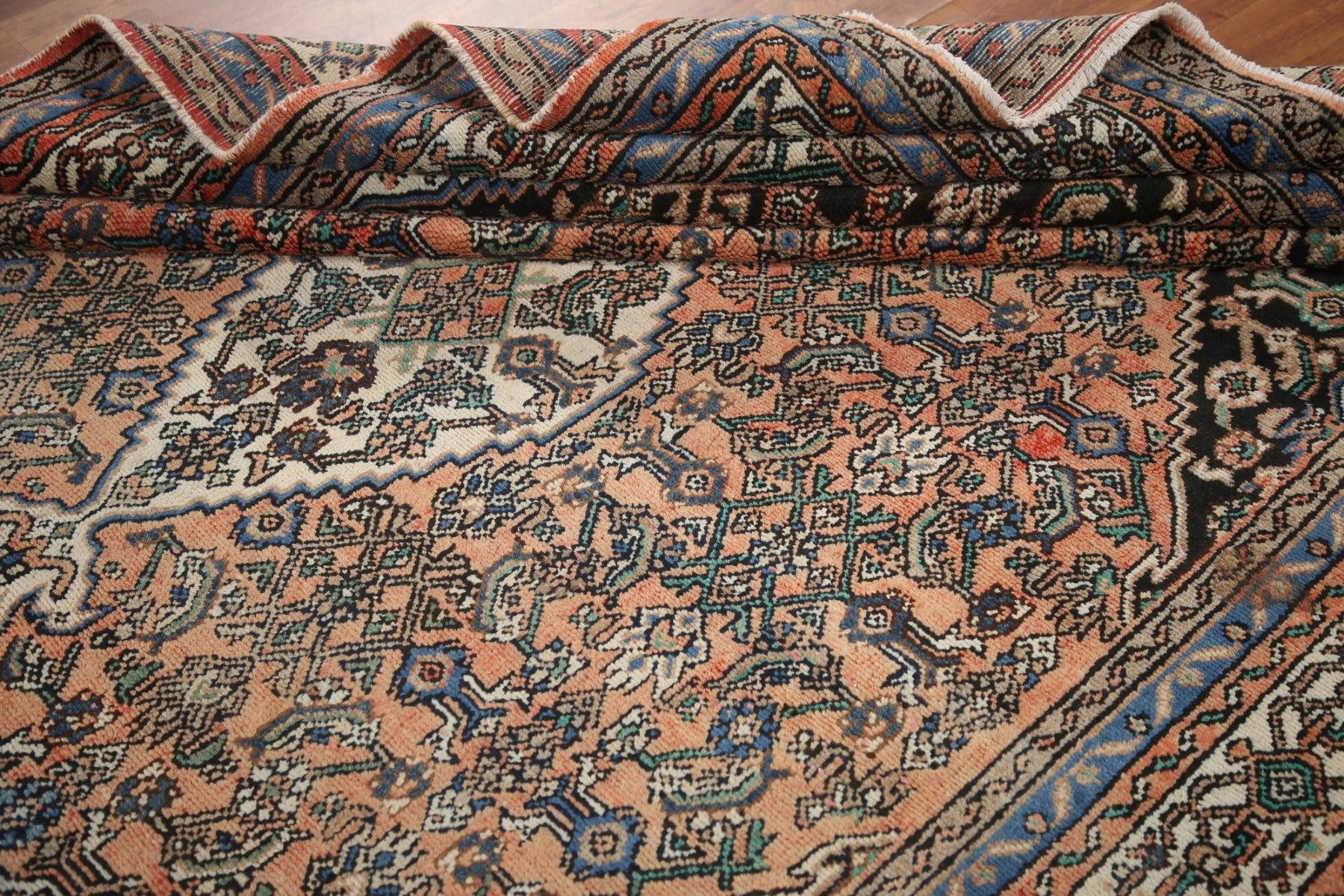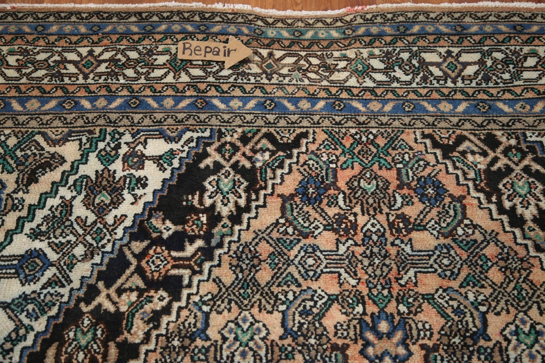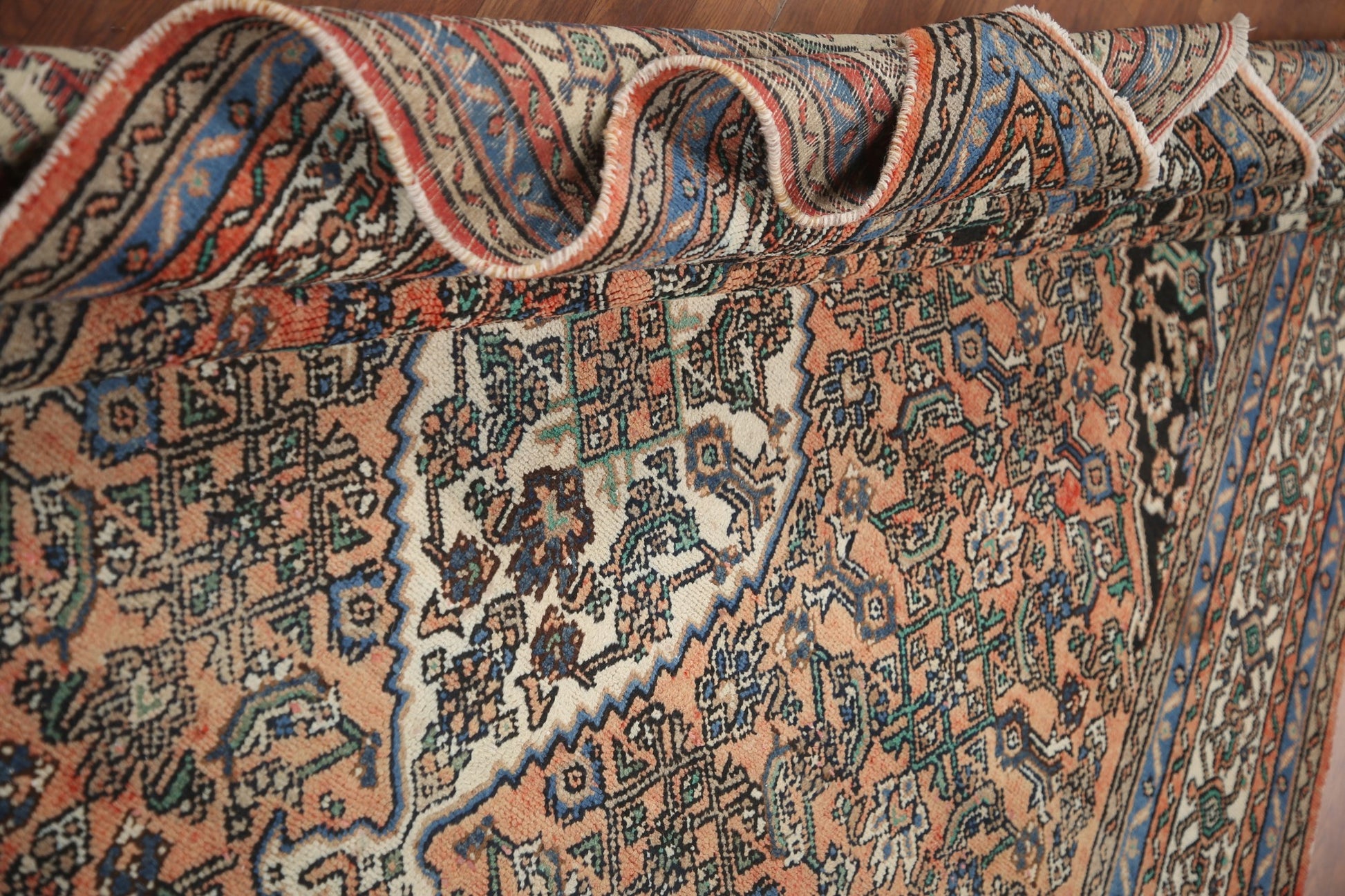 A Beautiful Genuine Persia ( Persia ) Hamedan rug is Hand Knotted by skillful weavers in Persia ( Persia ) with 100% Wool Material. This rug is in Very Good (Repair-Stain-Abrash) condition. dimensions are 10' 3'' X 7' 2'' in foot and 312 X 218 in centimeter. the primary color is Oranges & Rust.