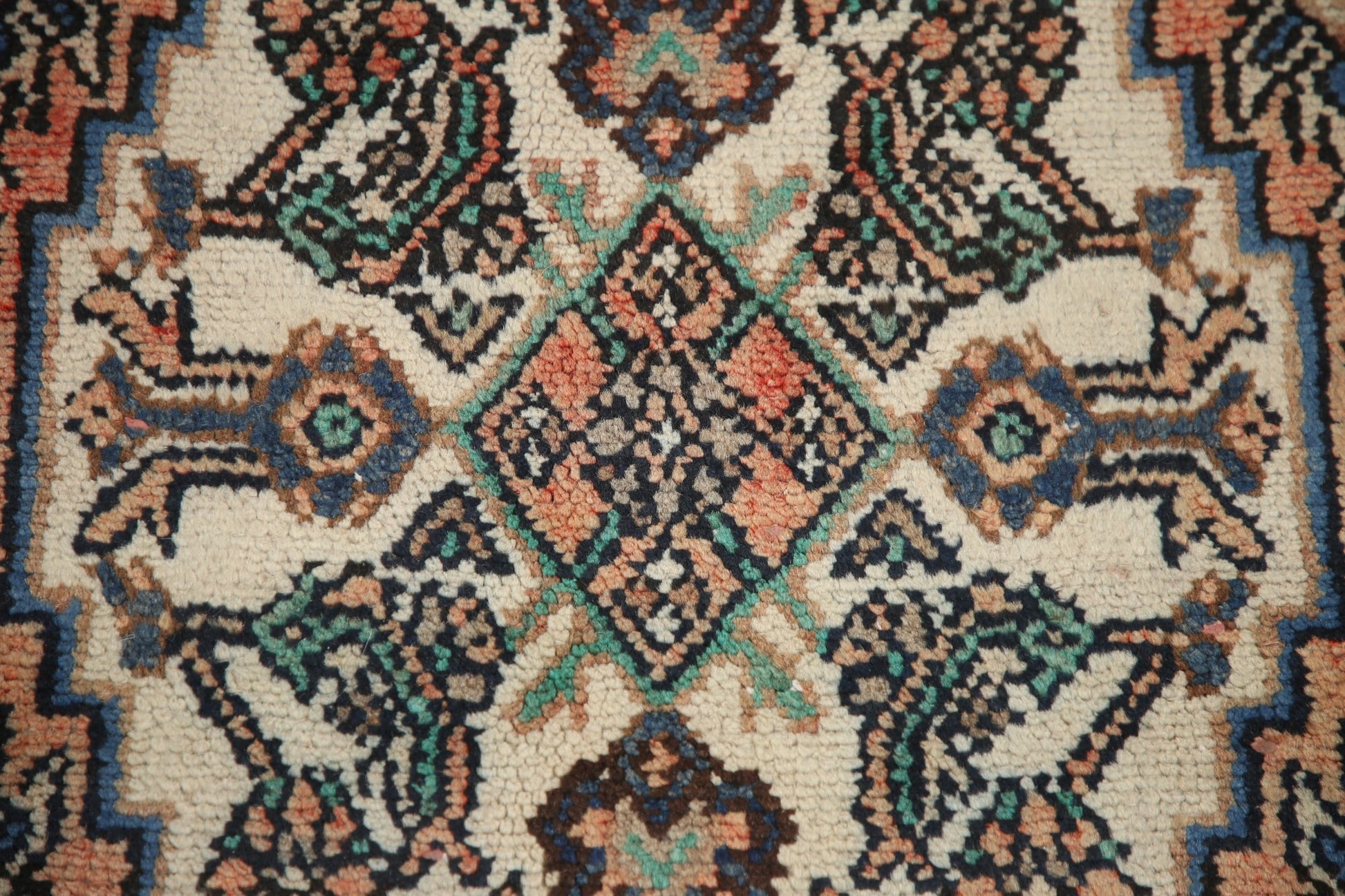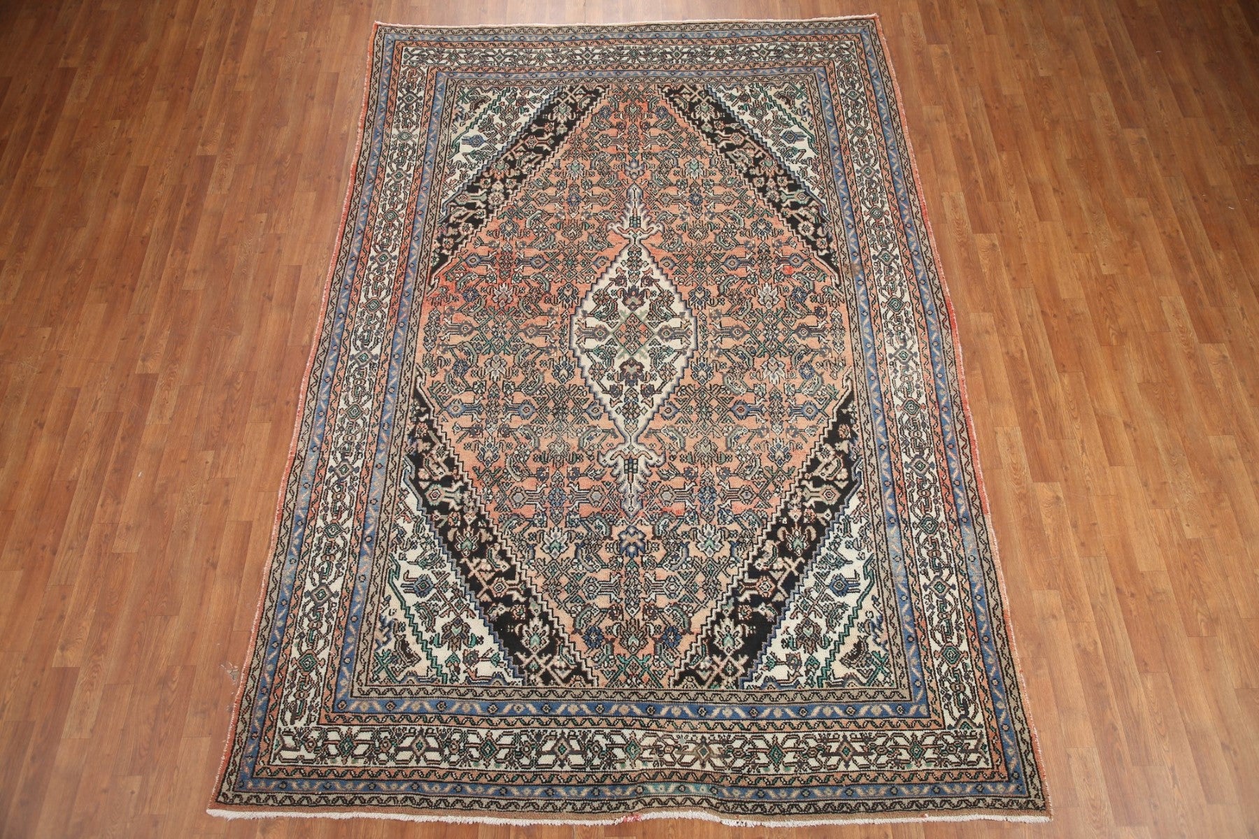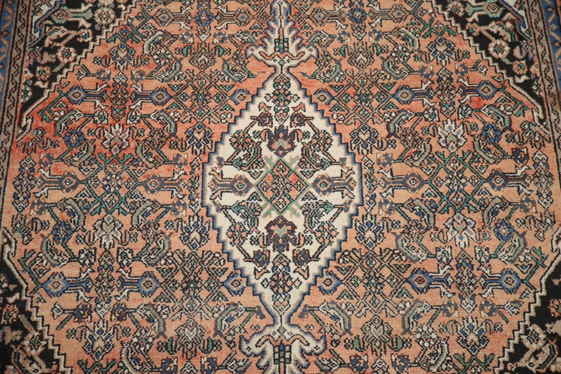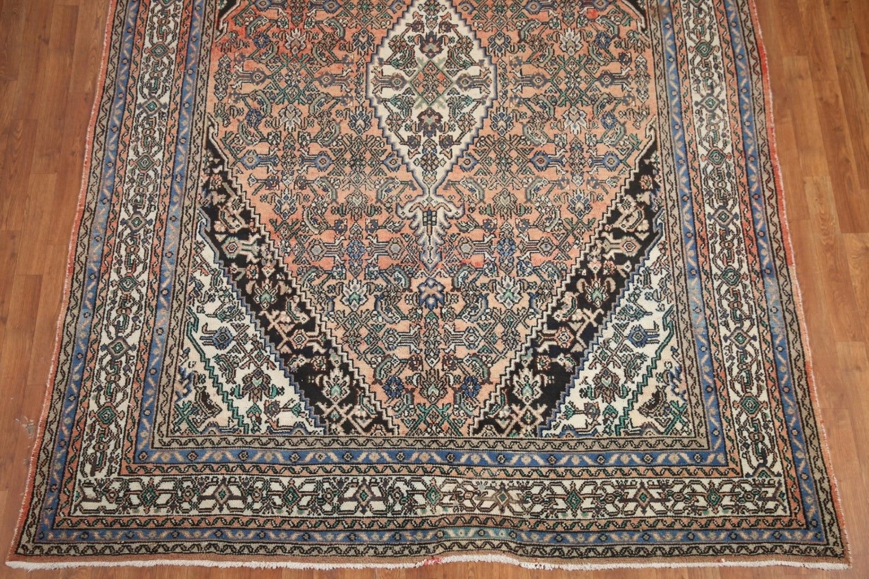 A Beautiful Genuine Persia ( Persia ) Hamedan rug is Hand Knotted by skillful weavers in Persia ( Persia ) with 100% Wool Material. This rug is in Very Good (Repair-Stain-Abrash) condition. dimensions are 10' 3'' X 7' 2'' in foot and 312 X 218 in centimeter. the primary color is Oranges & Rust.