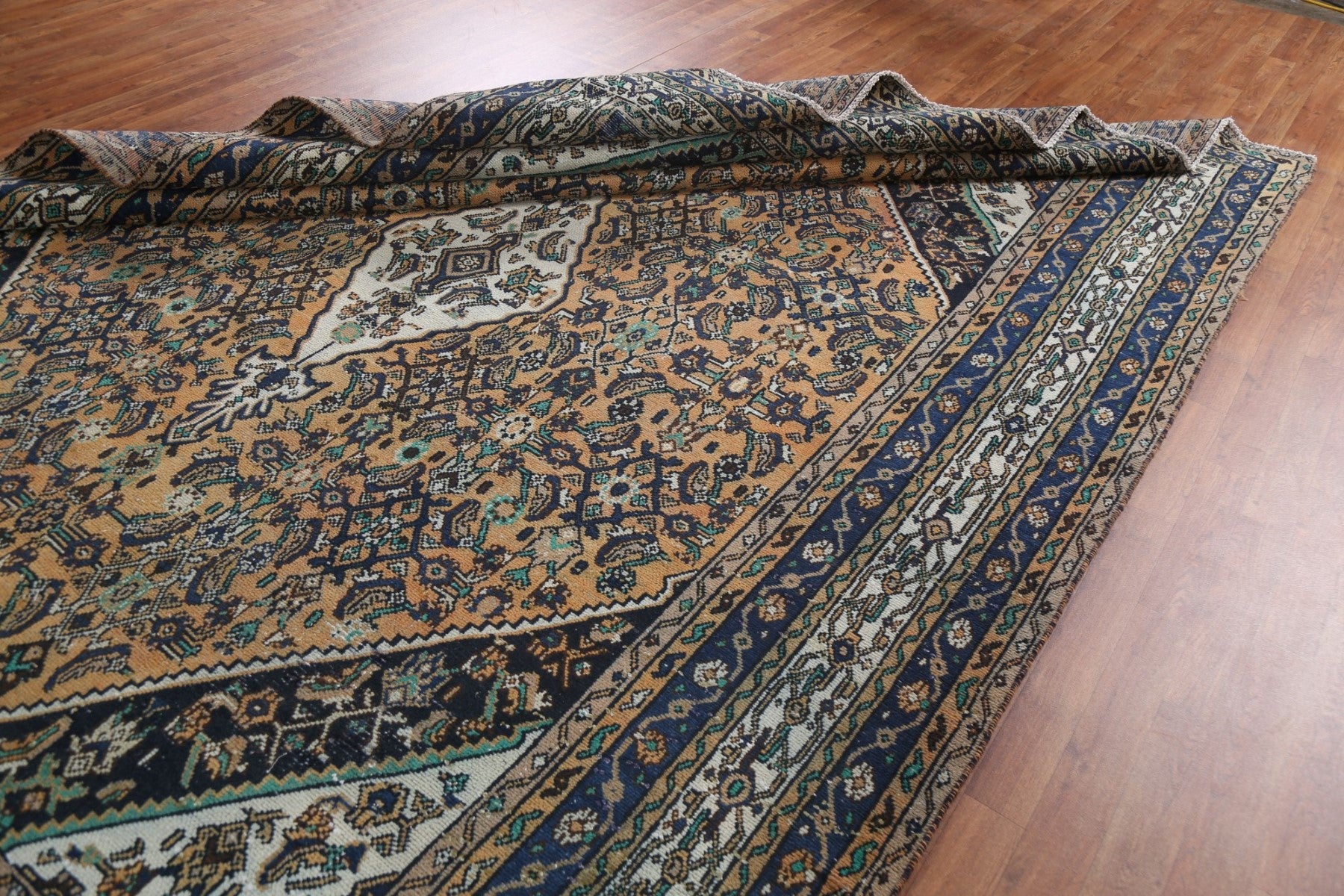 A Beautiful Genuine Persia ( Persia ) Hamedan rug is Hand Knotted by skillful weavers in Persia ( Persia ) with 100% Wool Material. This rug is in Very Good (Evenly Low Pile) condition. dimensions are 11' 4'' X 8' 8'' in foot and 345 X 264 in centimeter. the primary color is Peach.