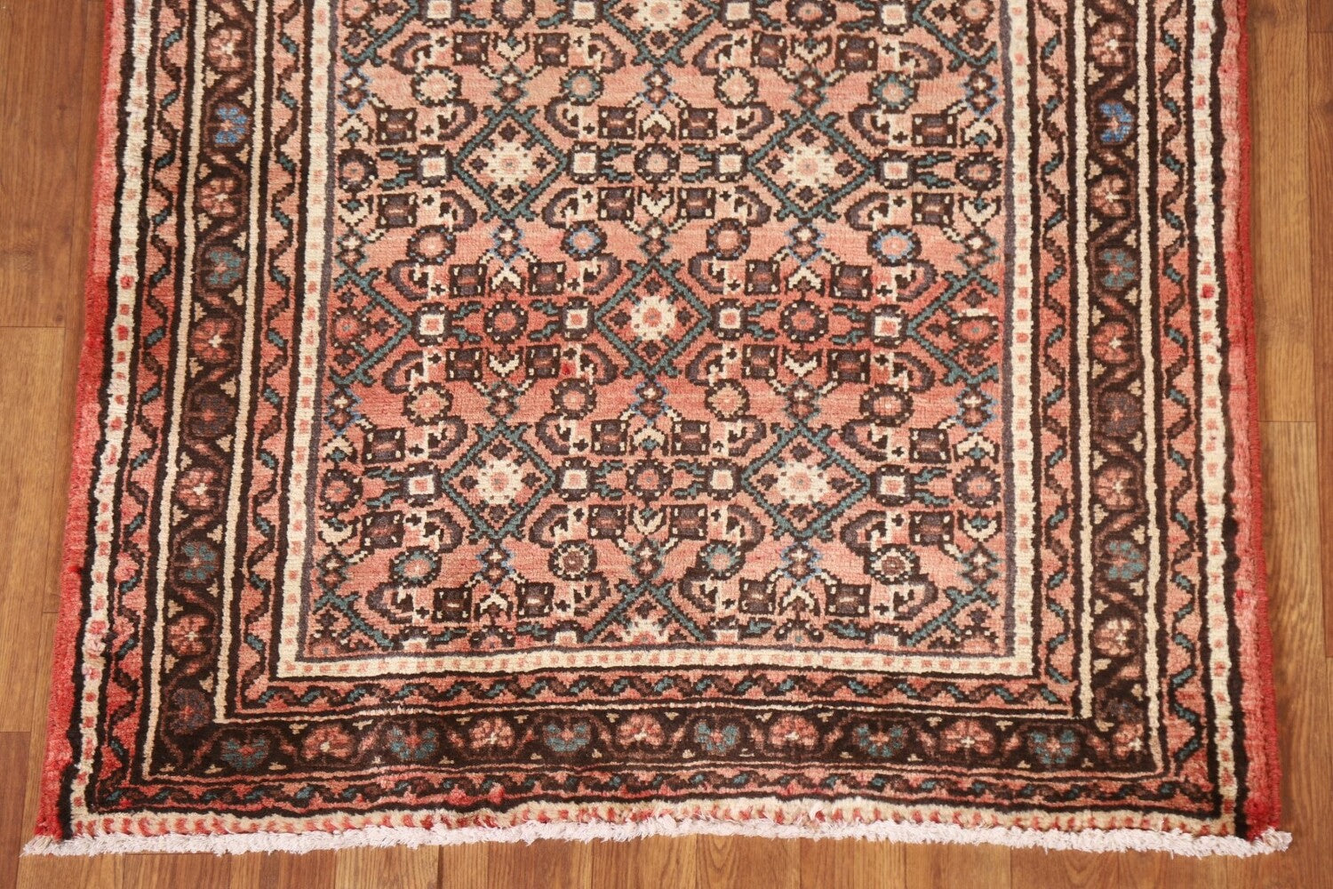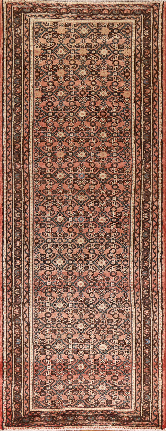 A Beautiful Genuine Persia ( Persia ) Hamedan rug is Hand Knotted by skillful weavers in Persia ( Persia ) with 100% Wool Material. This rug is in Very Good condition. dimensions are 9' 7'' X 3' 3'' in foot and 292 X 99 in centimeter. the primary color is Pink.