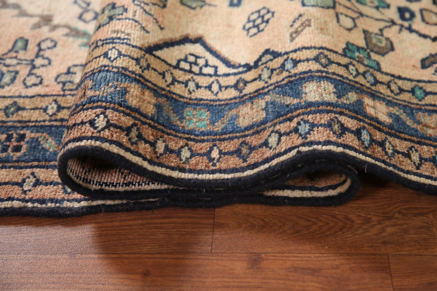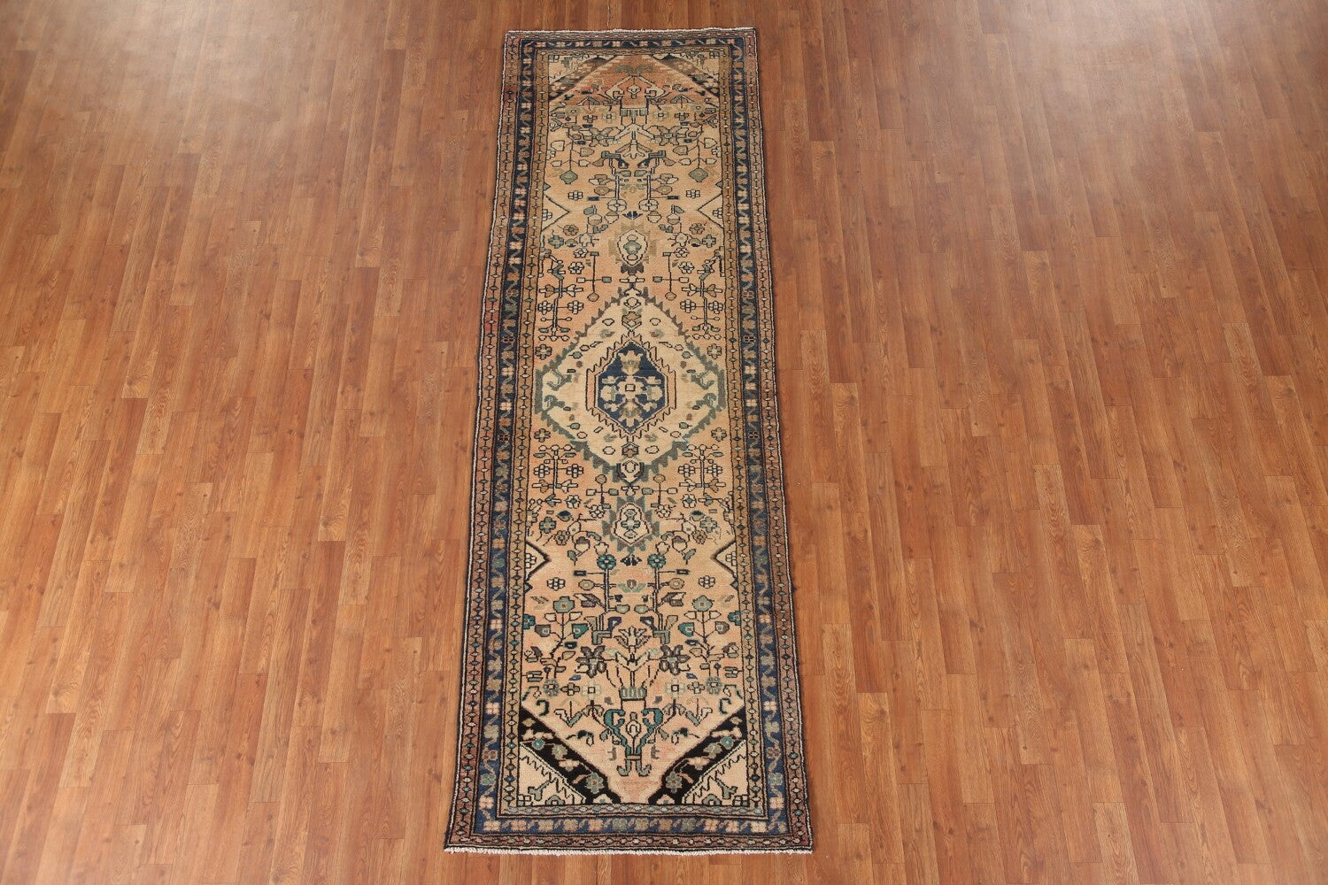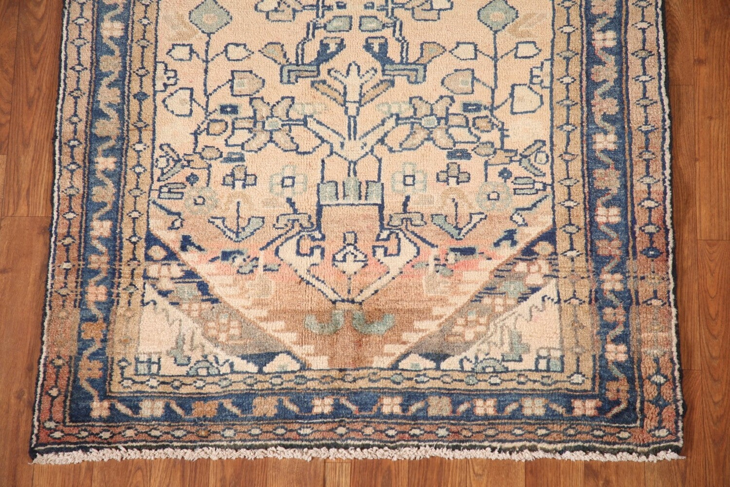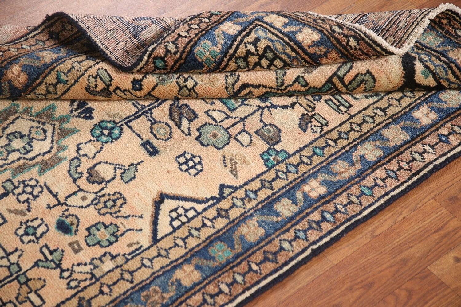 A Beautiful Genuine Persia ( Persia ) Hamedan rug is Hand Knotted by skillful weavers in Persia ( Persia ) with 100% Wool Material. This rug is in Very Good (Abrash) condition. dimensions are 9' 7'' X 3' 1'' in foot and 292 X 94 in centimeter. the primary color is Peach.