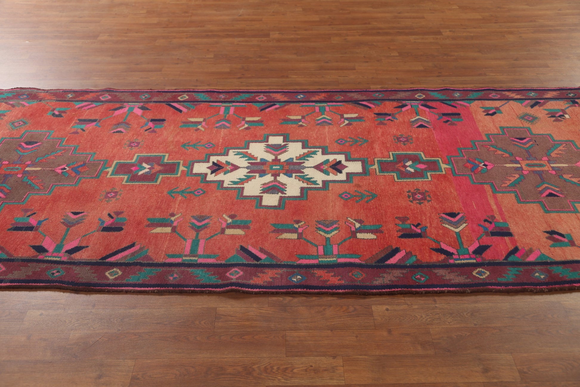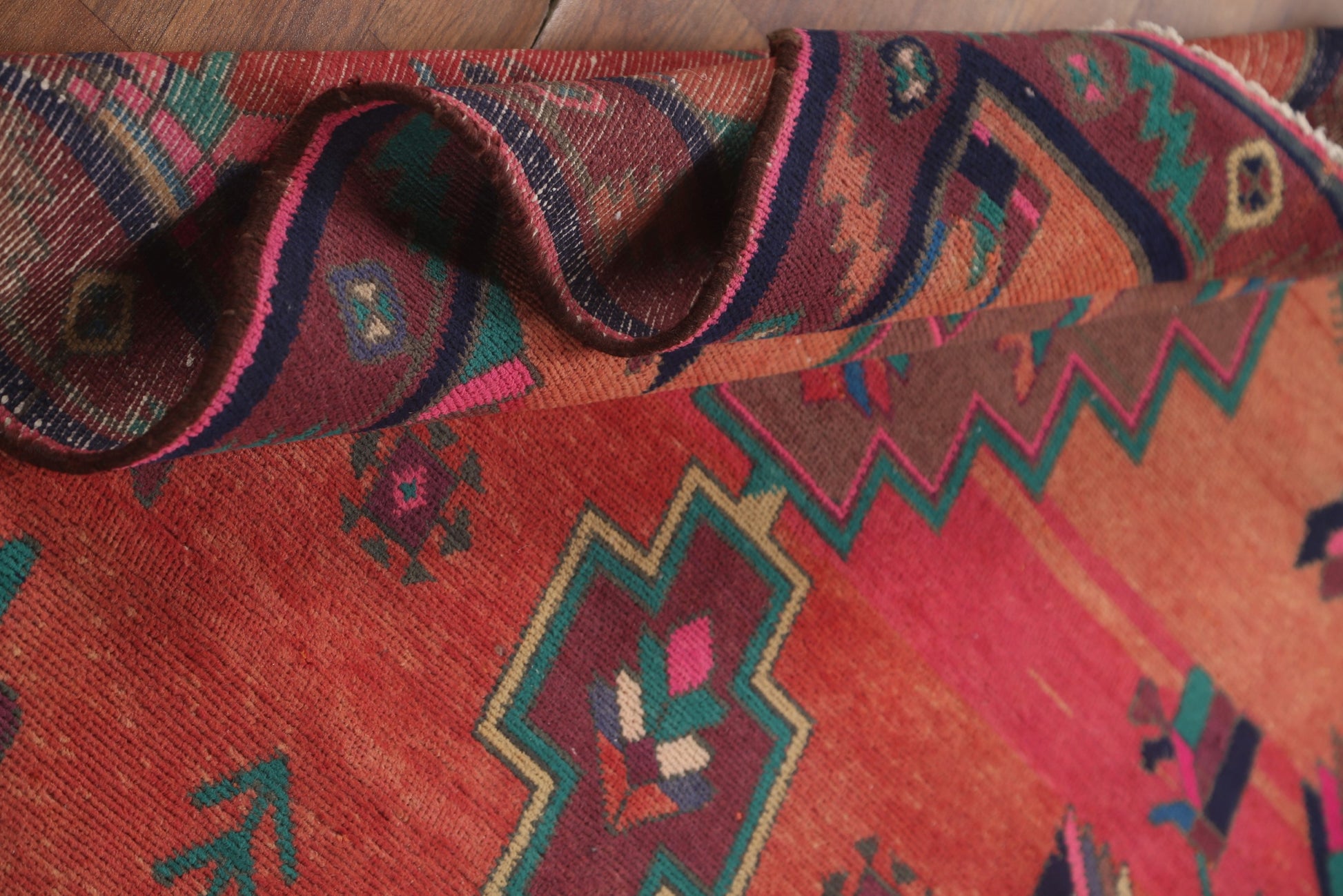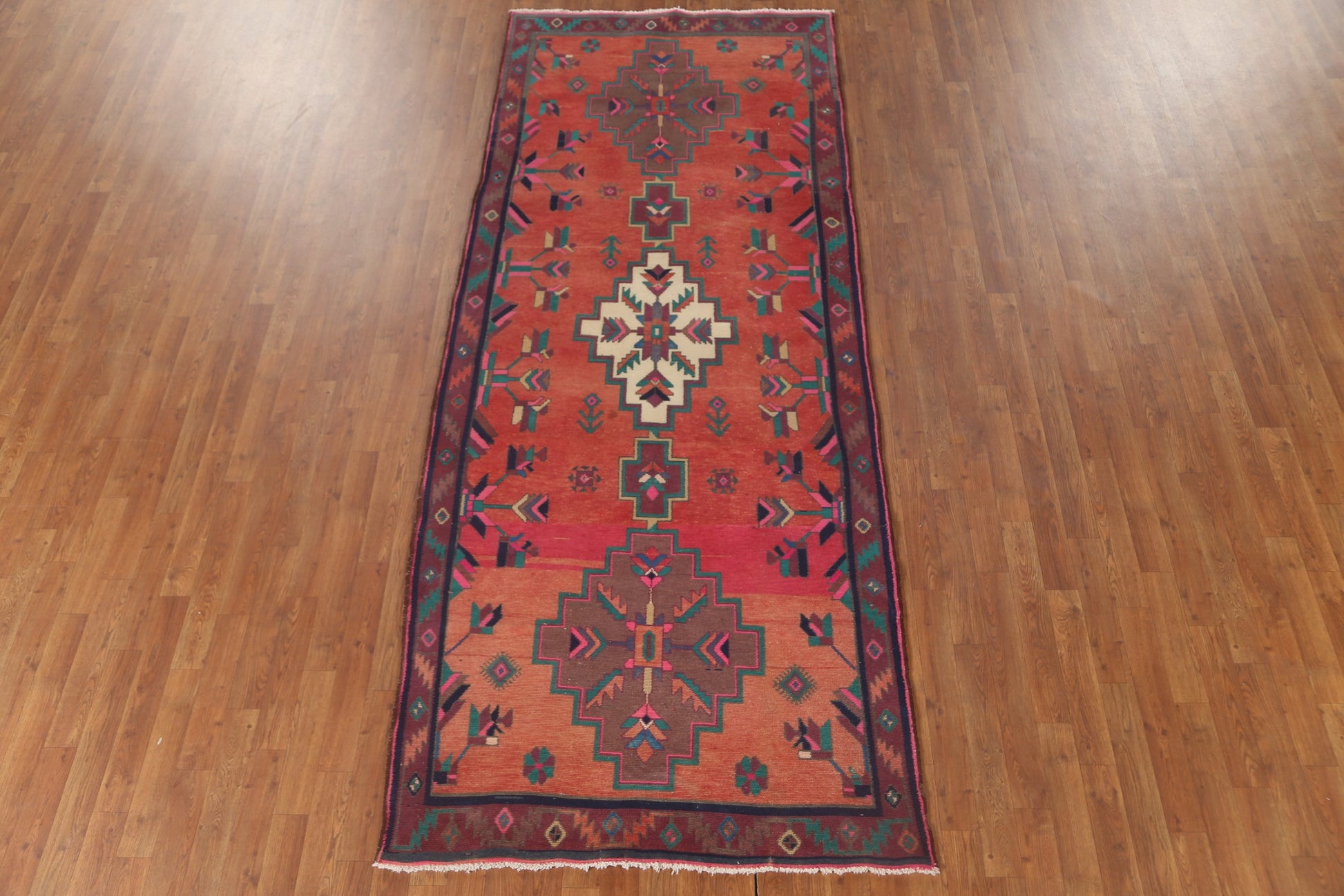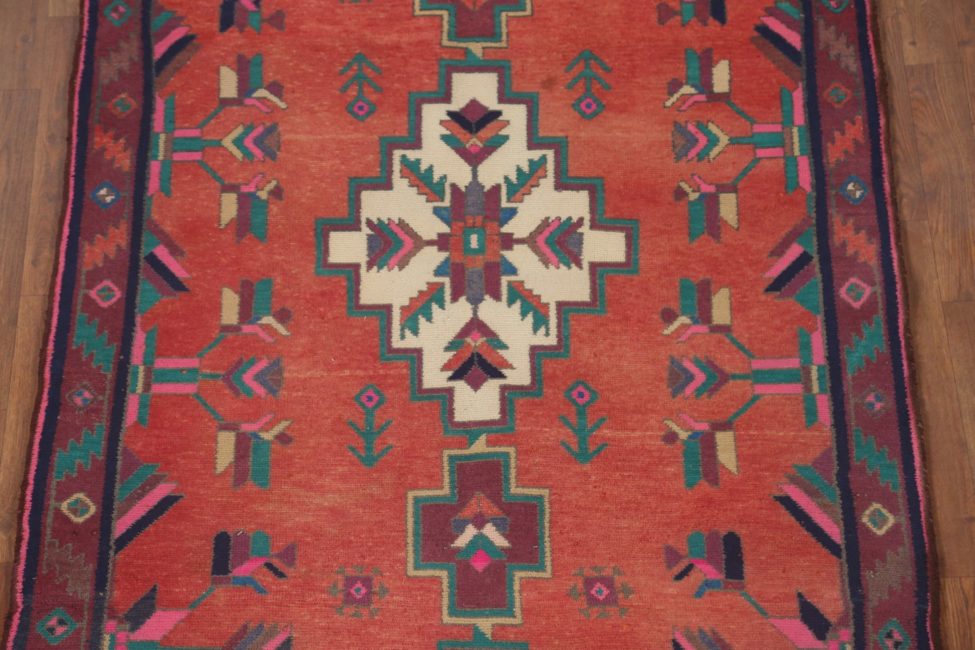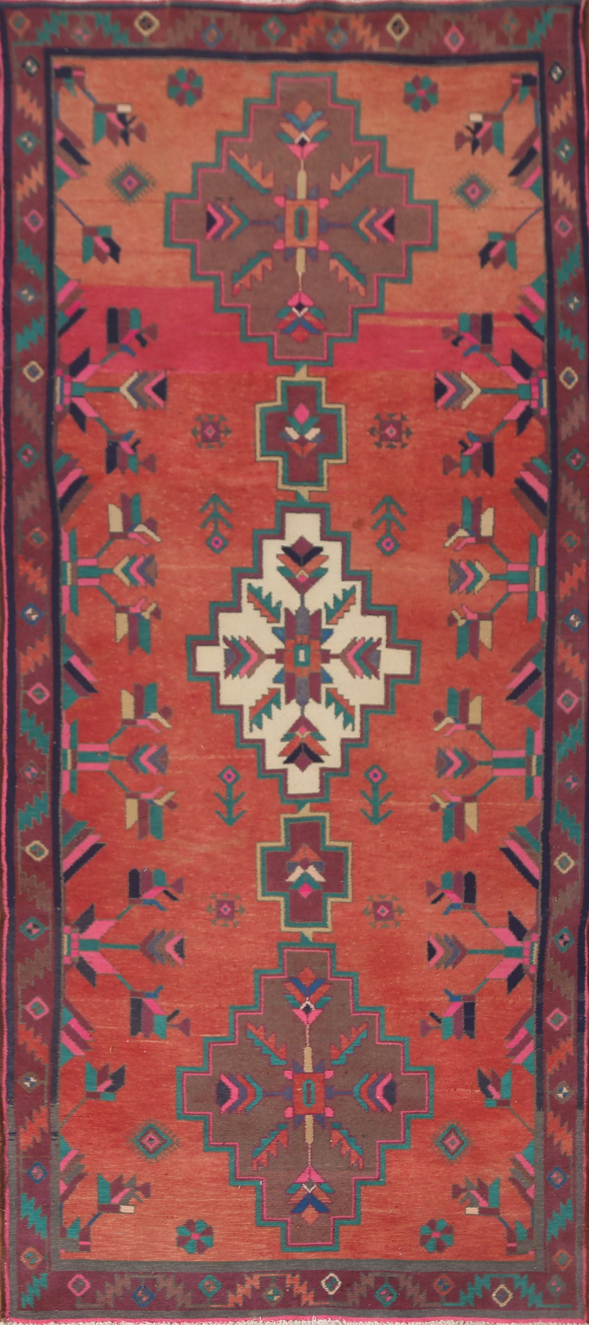 A Beautiful Genuine Persia ( Persia ) Hamedan rug is Hand Knotted by skillful weavers in Persia ( Persia ) with 100% Wool Material. This rug is in Very Good (Evenly Low Pile-Small Stain) condition. dimensions are 10' 3'' X 4' 1'' in foot and 312 X 124 in centimeter. the primary color is Coral.