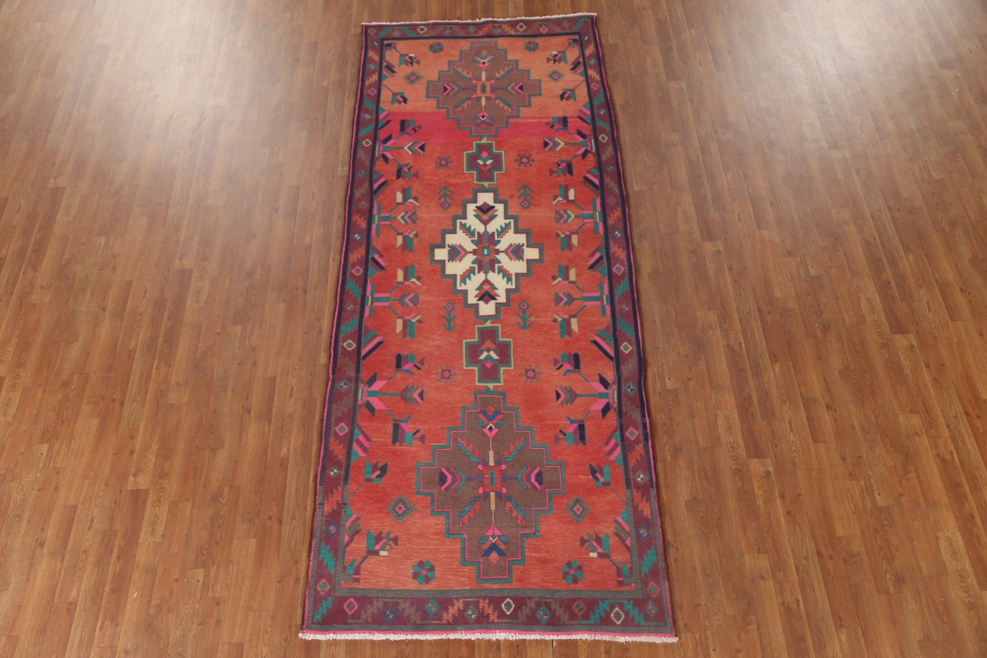 Geometric Wool Hamedan Persian Runner Rug 4x10