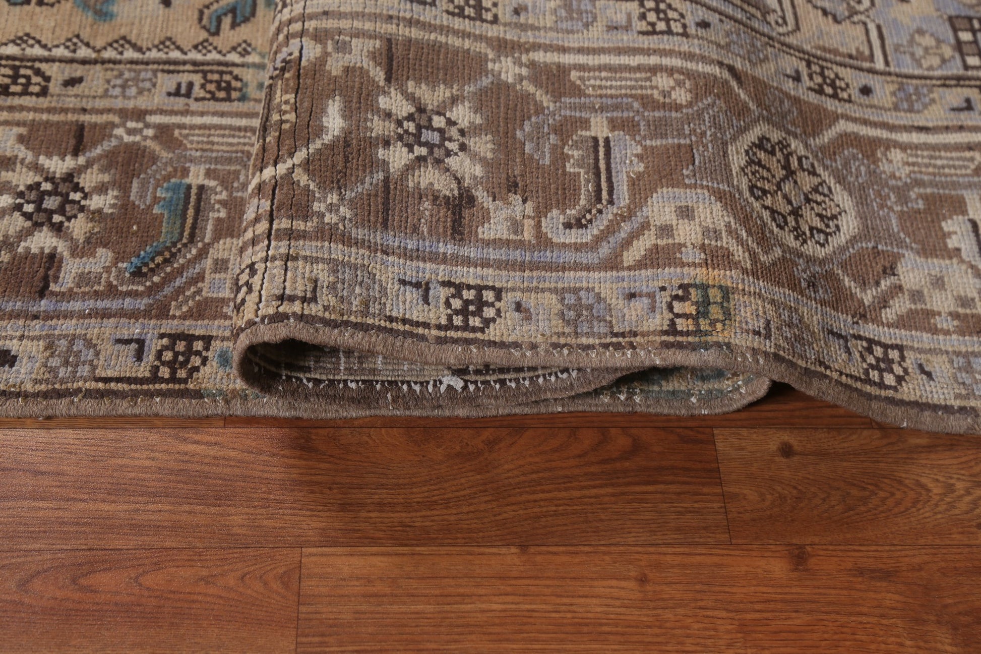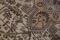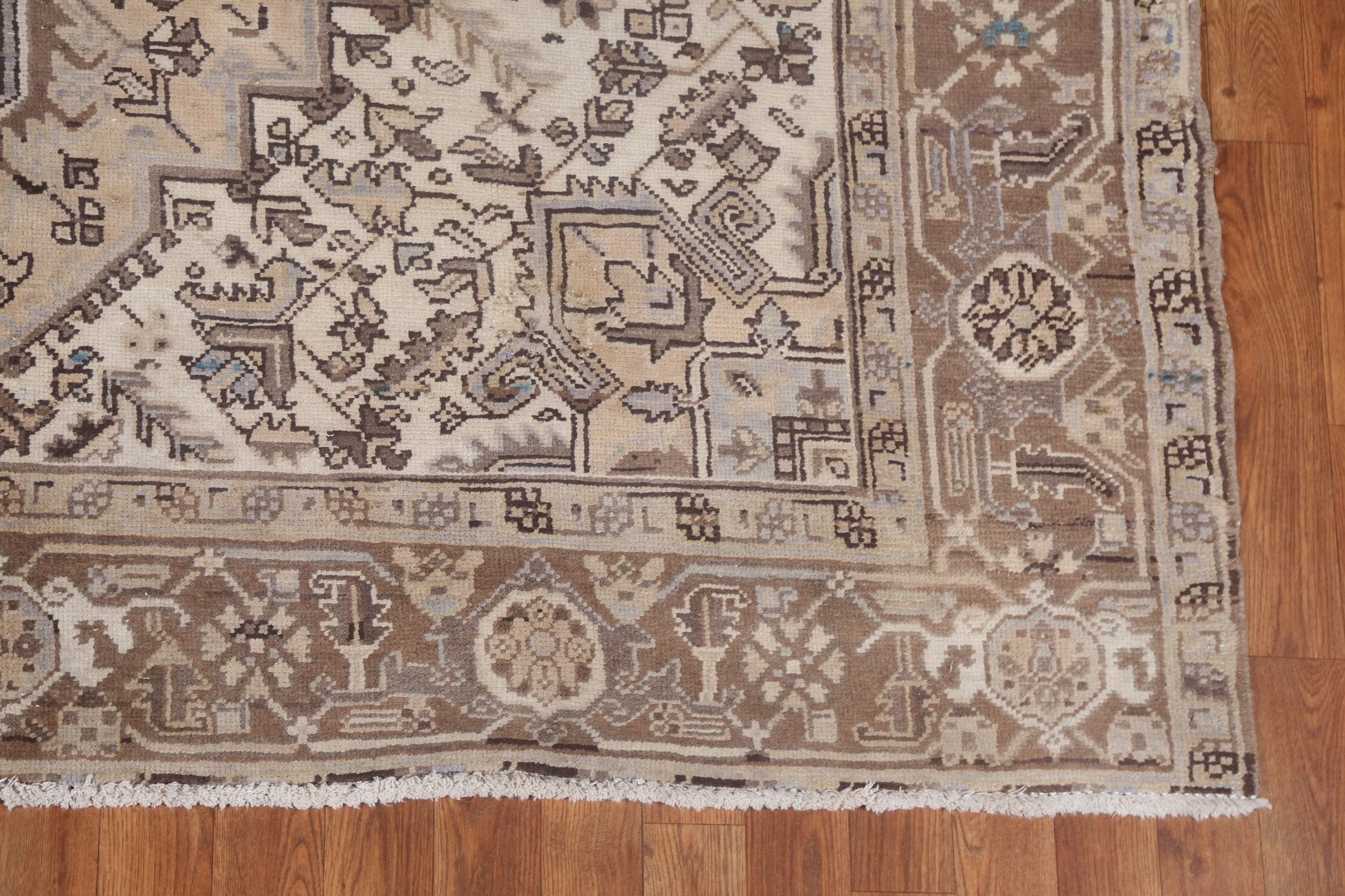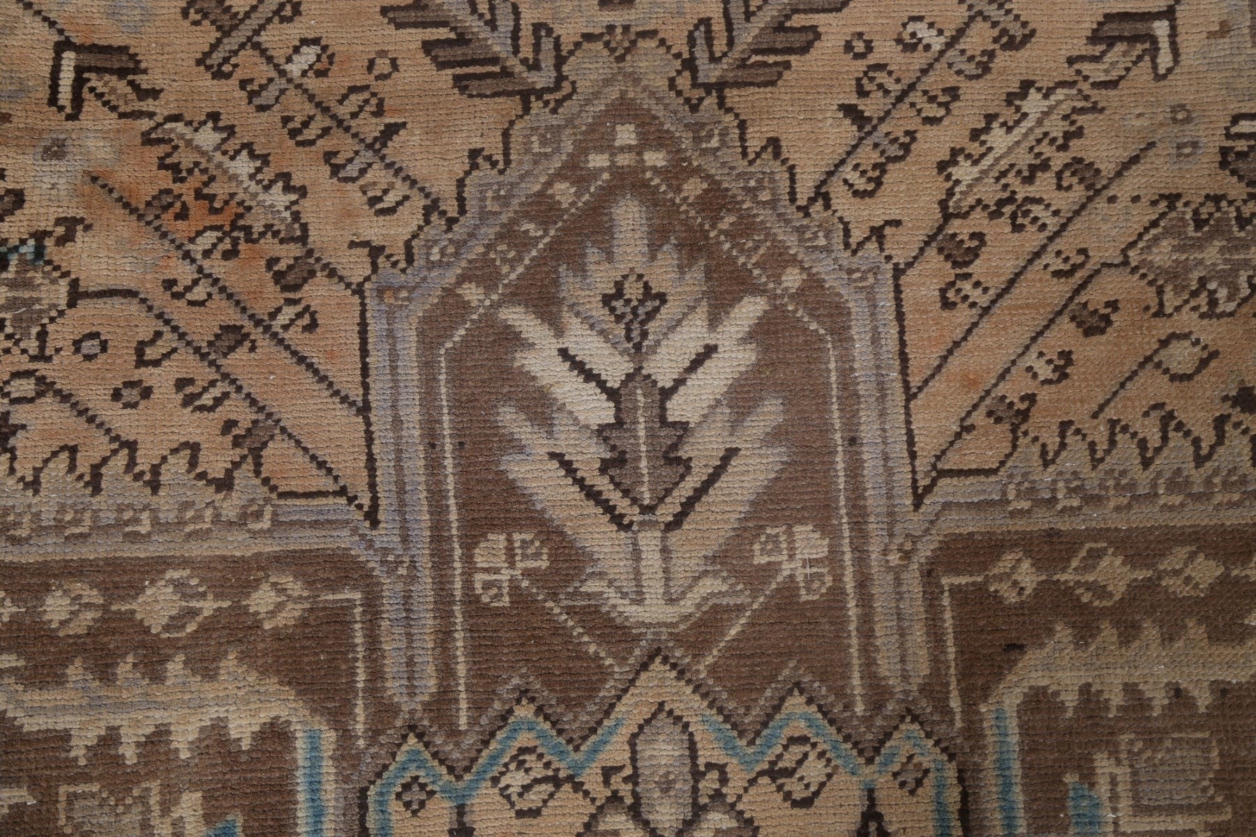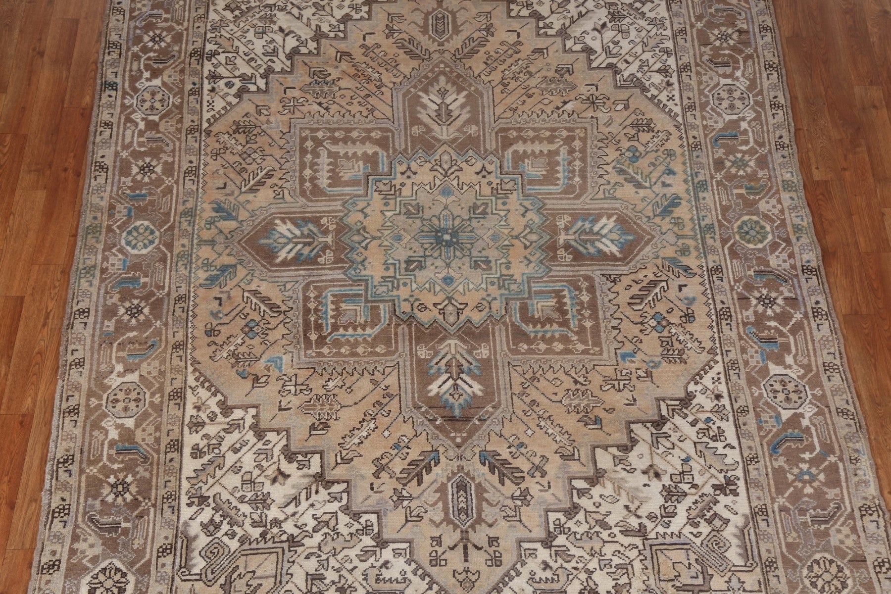 A Beautiful Genuine Persia ( Persia ) Heriz rug is Hand Knotted by skillful weavers in Persia ( Persia ) with 100% Wool Material. This rug is in Very Good (Low Pile-Repair) condition. dimensions are 9' 5'' X 6' 7'' in foot and 287 X 201 in centimeter. the primary color is Peach.