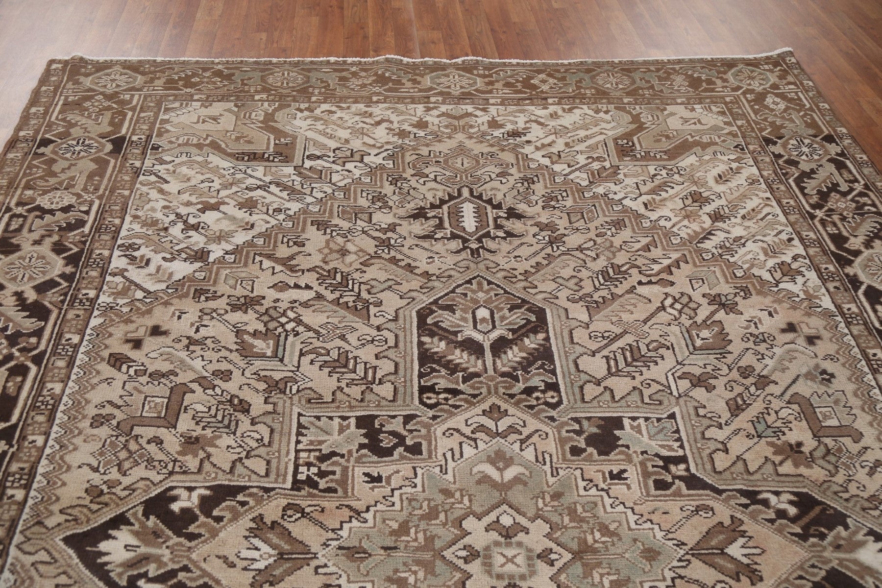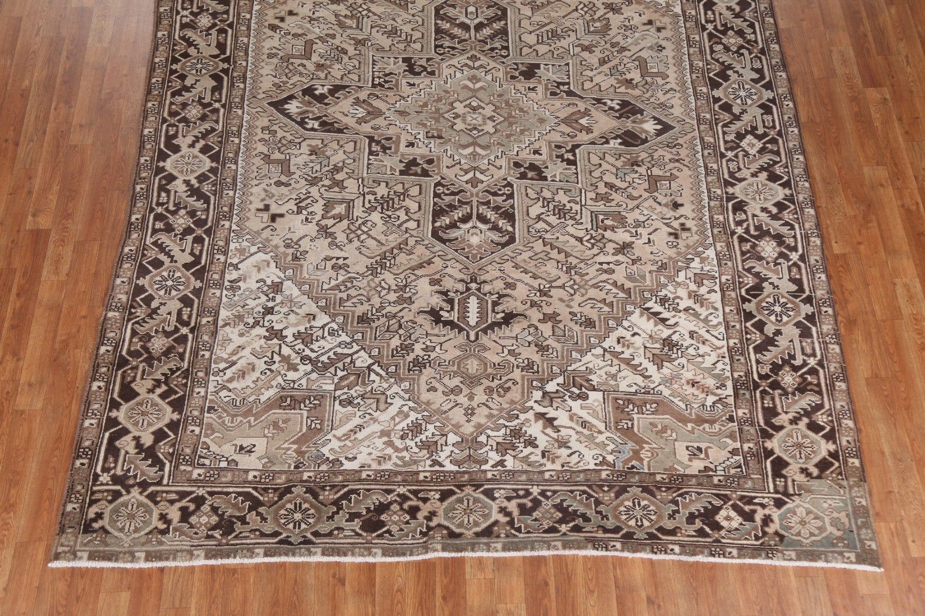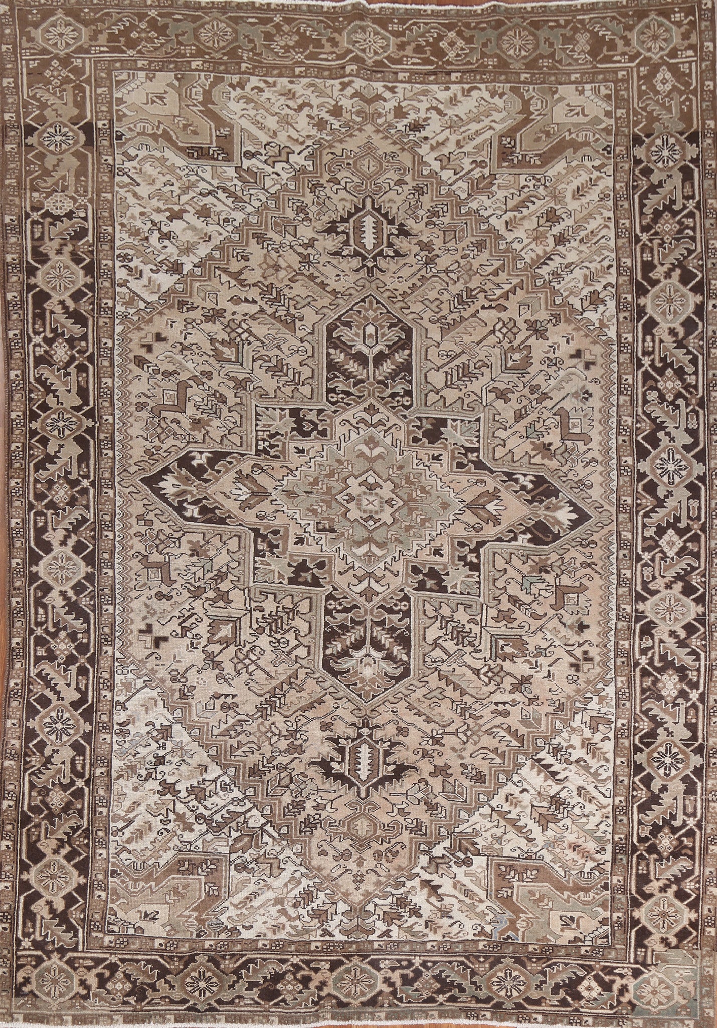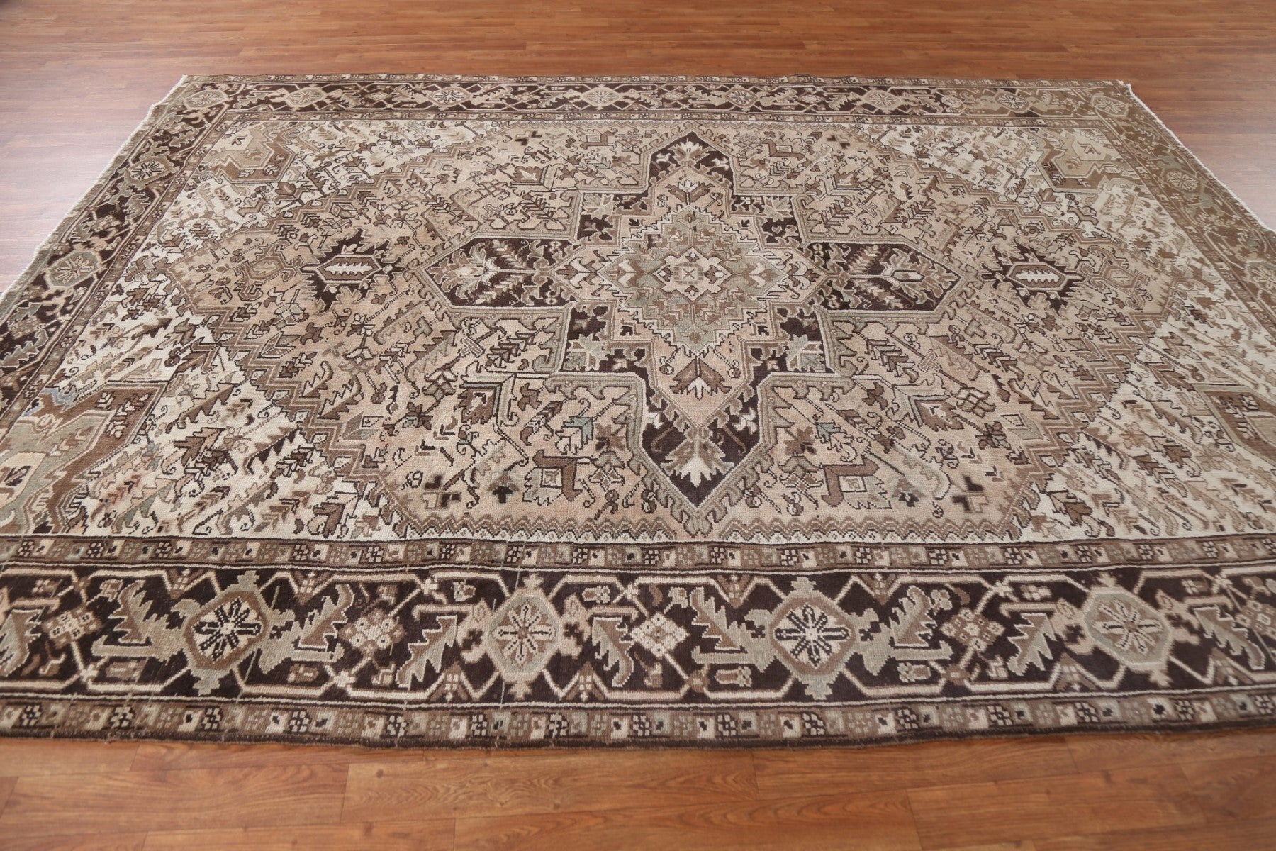 A Beautiful Genuine Persia ( Persia ) Heriz rug is Hand Knotted by skillful weavers in Persia ( Persia ) with 100% Wool Material. This rug is in Very Good (Abrash) condition. dimensions are 10' 2'' X 7' 8'' in foot and 310 X 234 in centimeter. the primary color is Beige & Ivories.