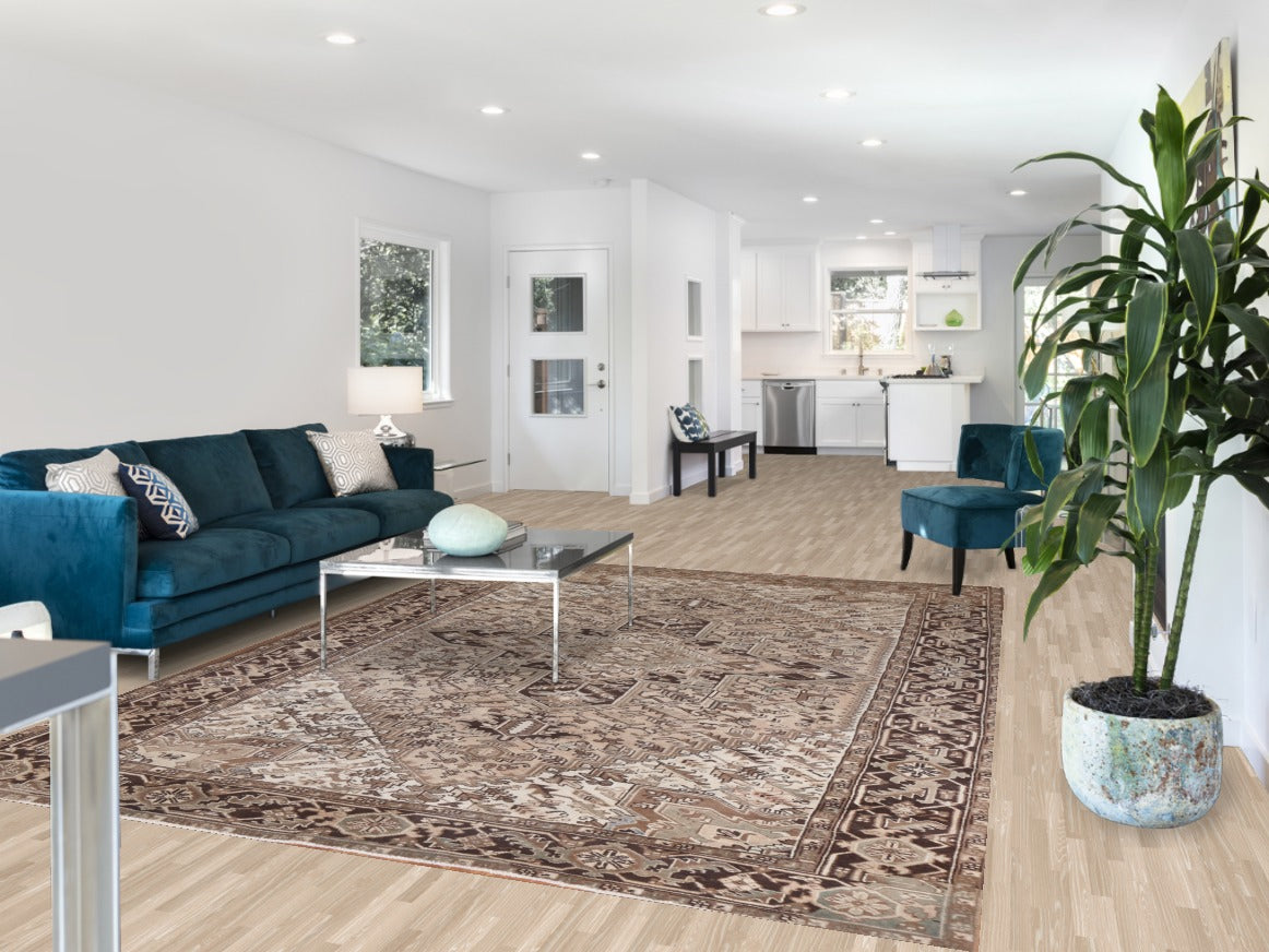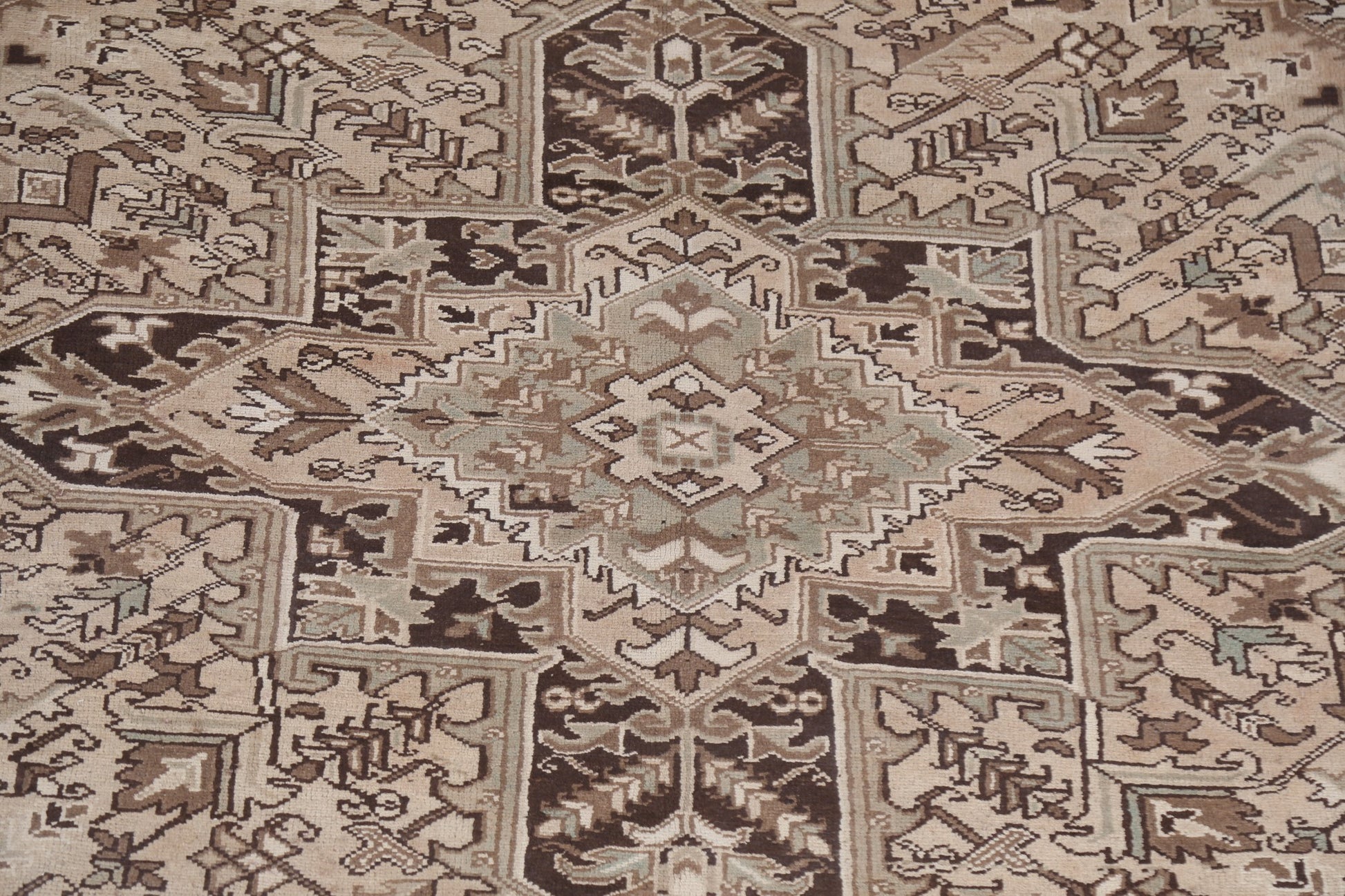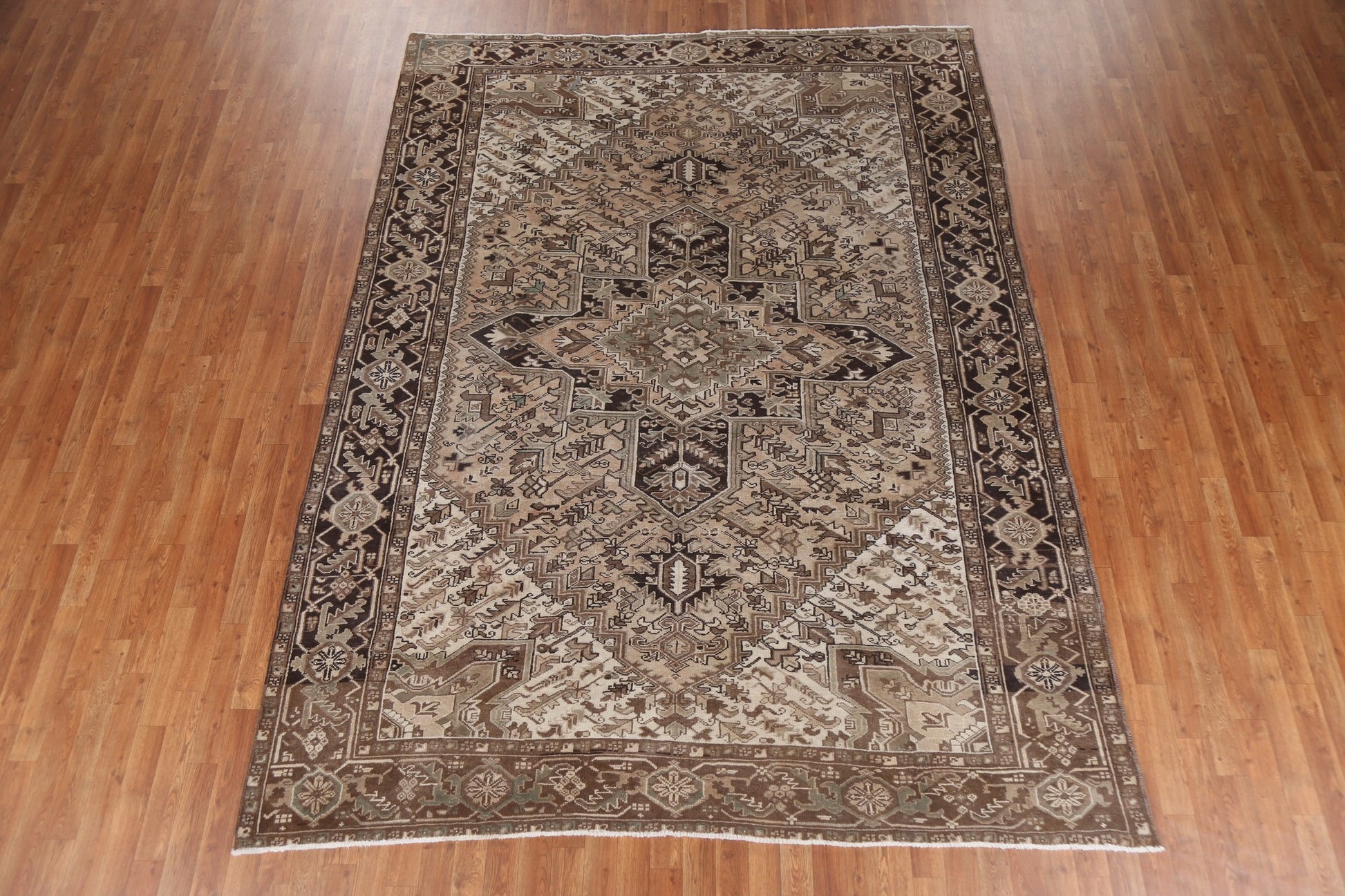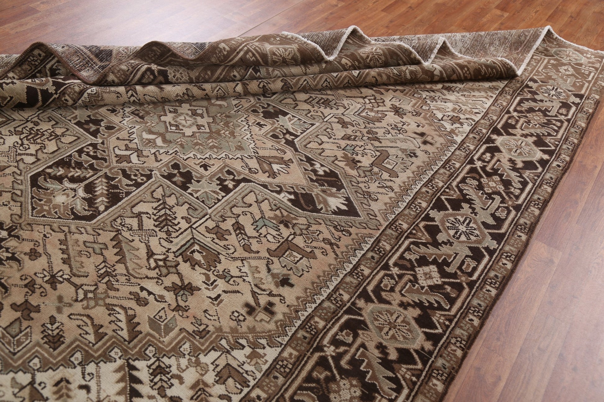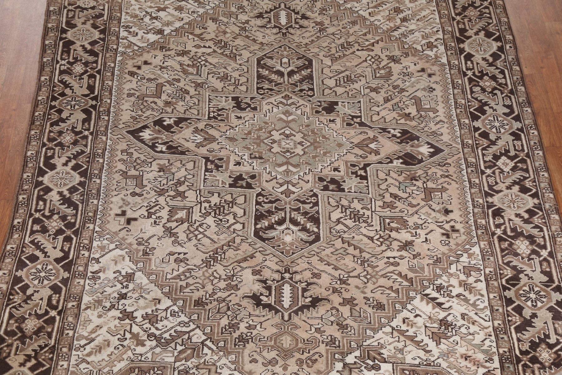A Beautiful Genuine Persia ( Persia ) Heriz rug is Hand Knotted by skillful weavers in Persia ( Persia ) with 100% Wool Material. This rug is in Very Good (Abrash) condition. dimensions are 10' 2'' X 7' 8'' in foot and 310 X 234 in centimeter. the primary color is Beige & Ivories.