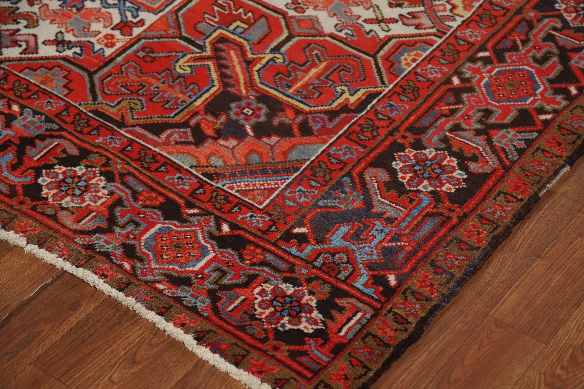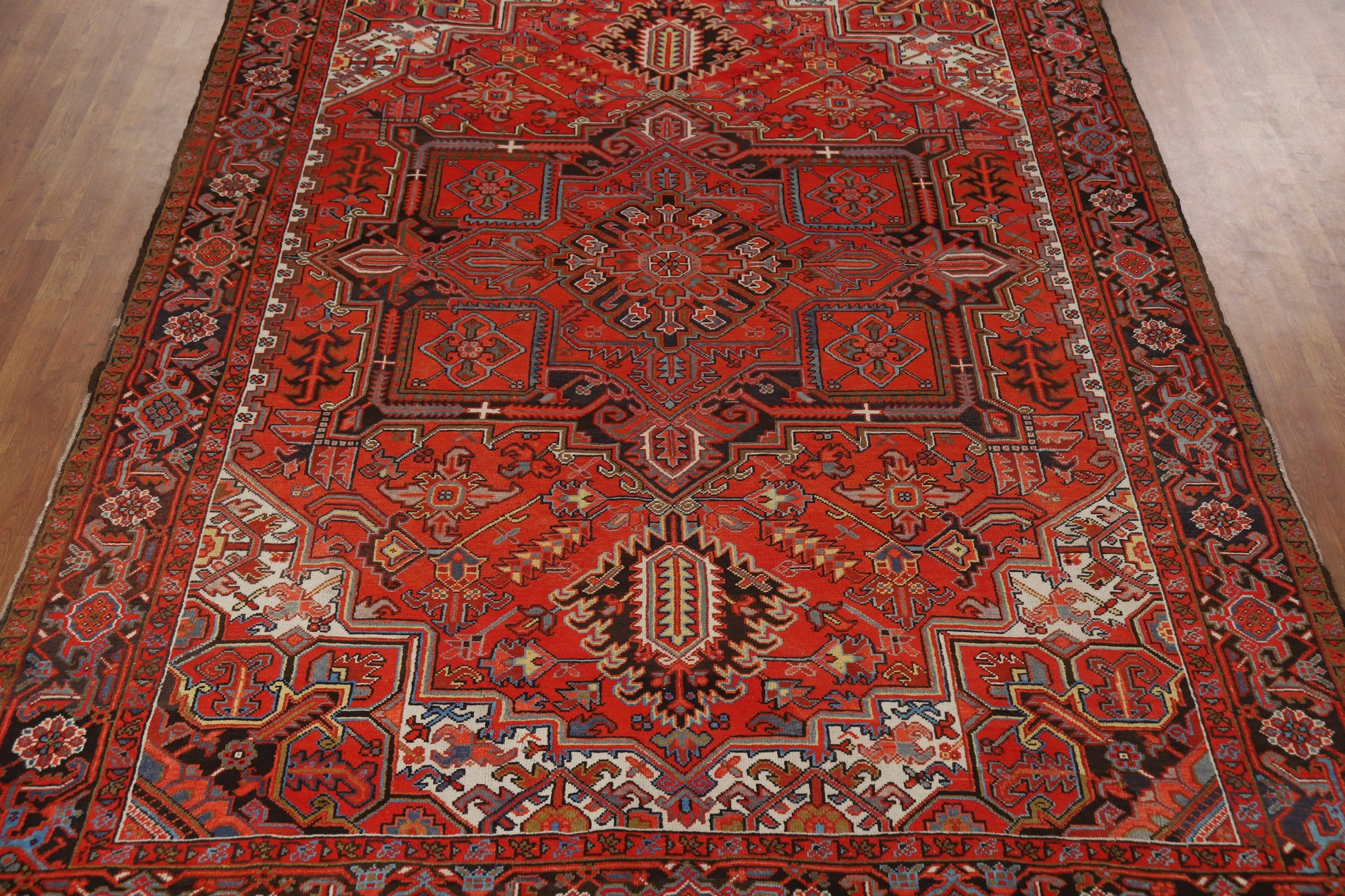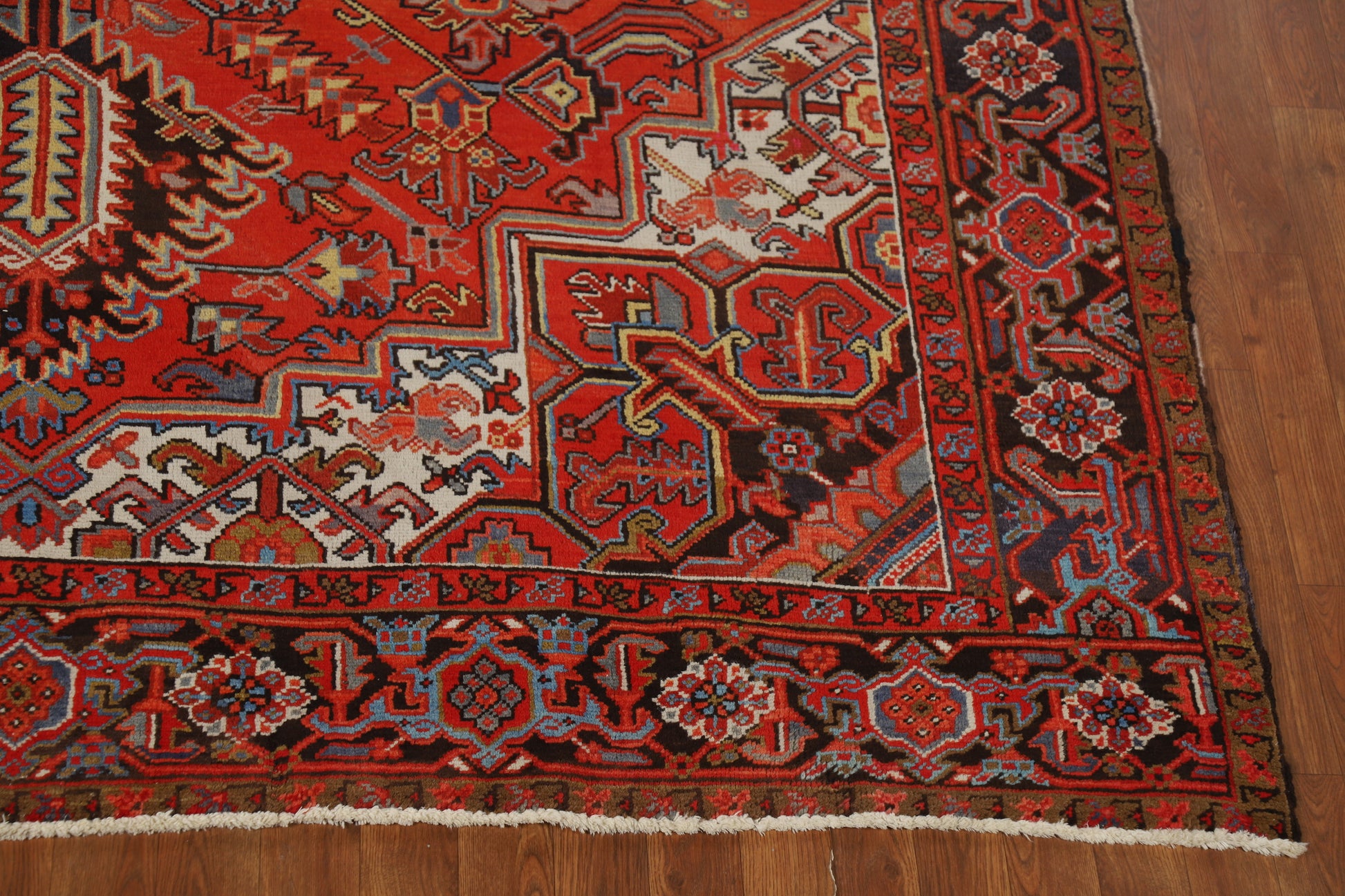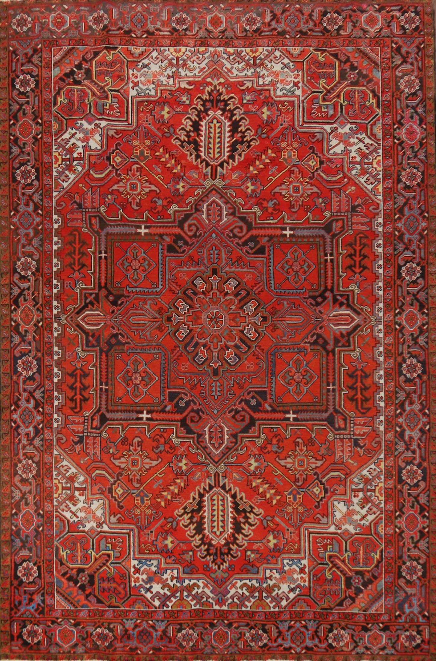 A Beautiful Genuine Persia ( Persia ) Heriz rug is Hand Knotted by skillful weavers in Persia ( Persia ) with 100% Wool Material. This rug is in Very Good condition. dimensions are 10' 8'' X 7' 9'' in foot and 325 X 236 in centimeter. the primary color is Oranges & Rust.