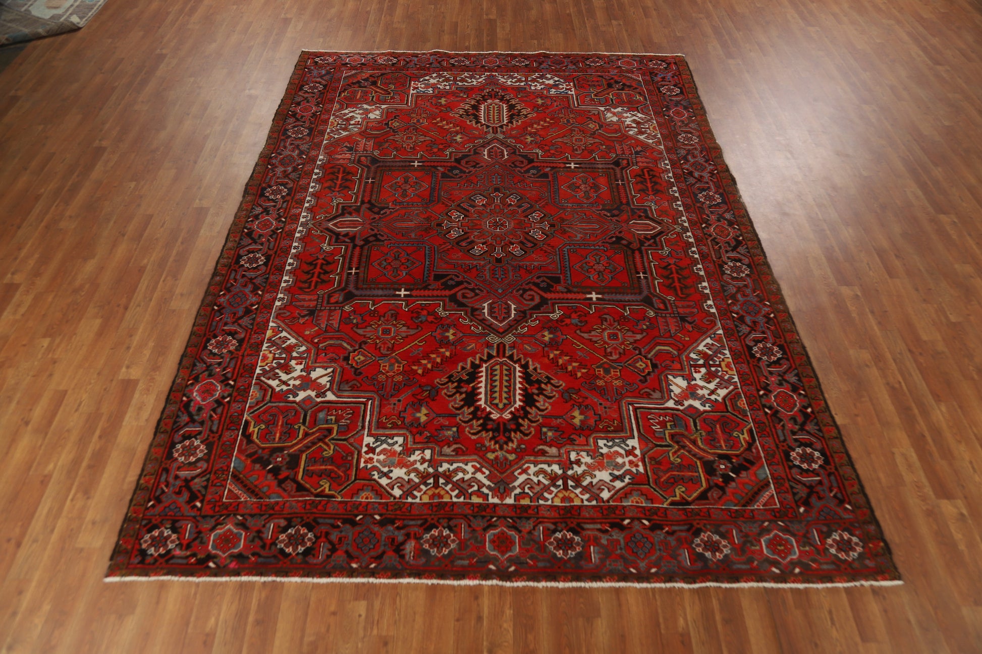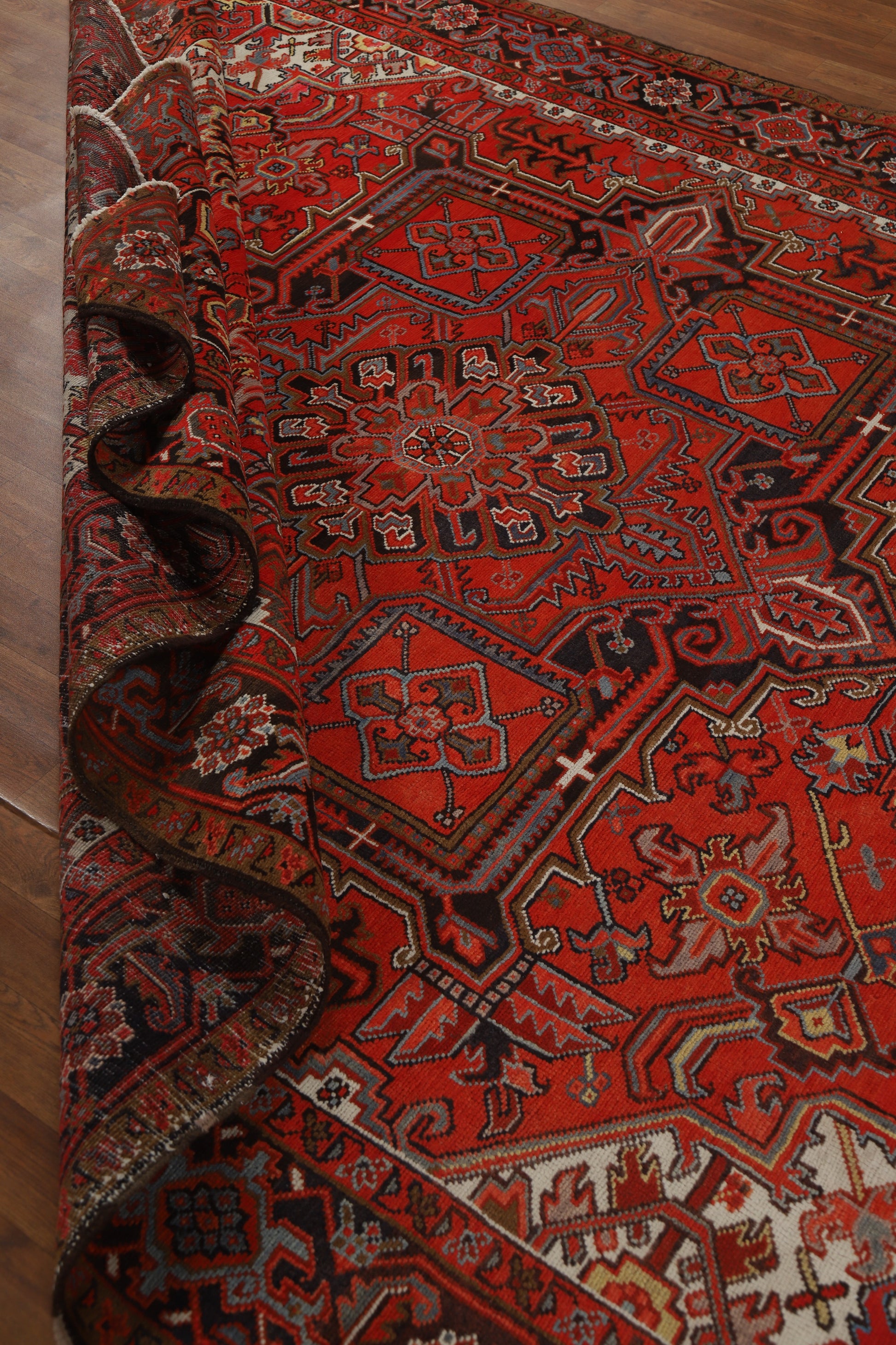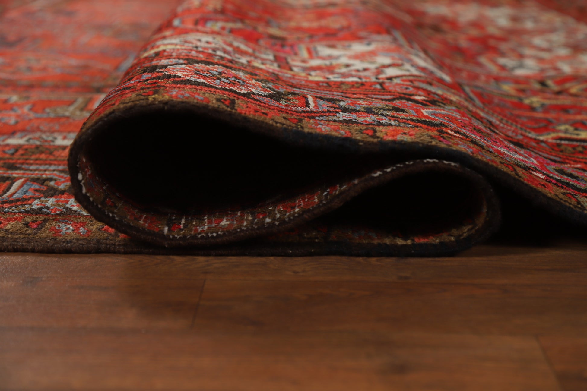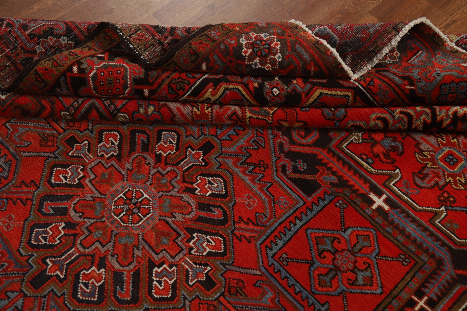 A Beautiful Genuine Persia ( Persia ) Heriz rug is Hand Knotted by skillful weavers in Persia ( Persia ) with 100% Wool Material. This rug is in Very Good condition. dimensions are 10' 8'' X 7' 9'' in foot and 325 X 236 in centimeter. the primary color is Oranges & Rust.