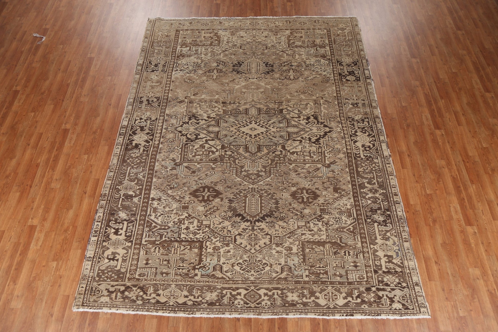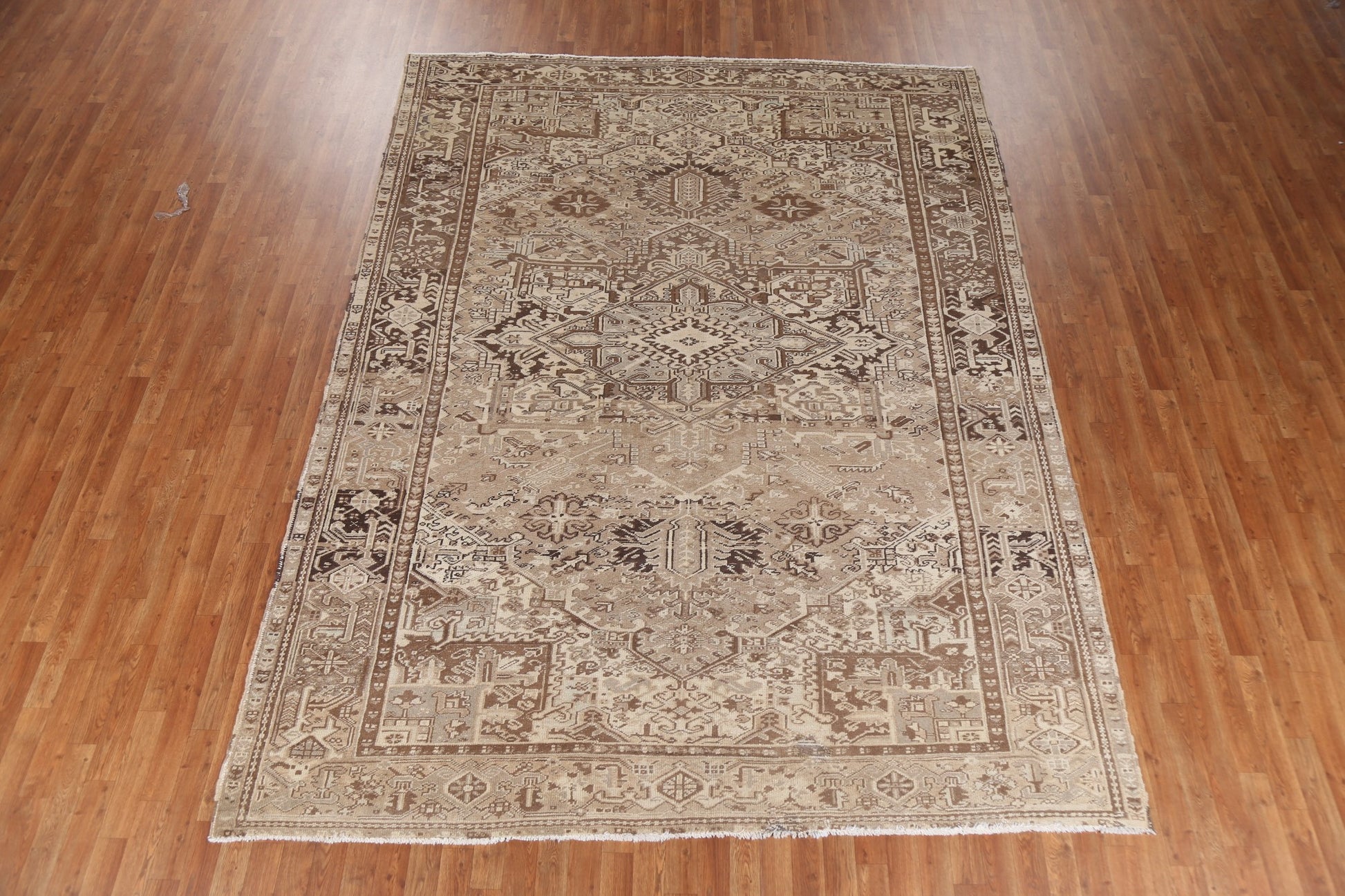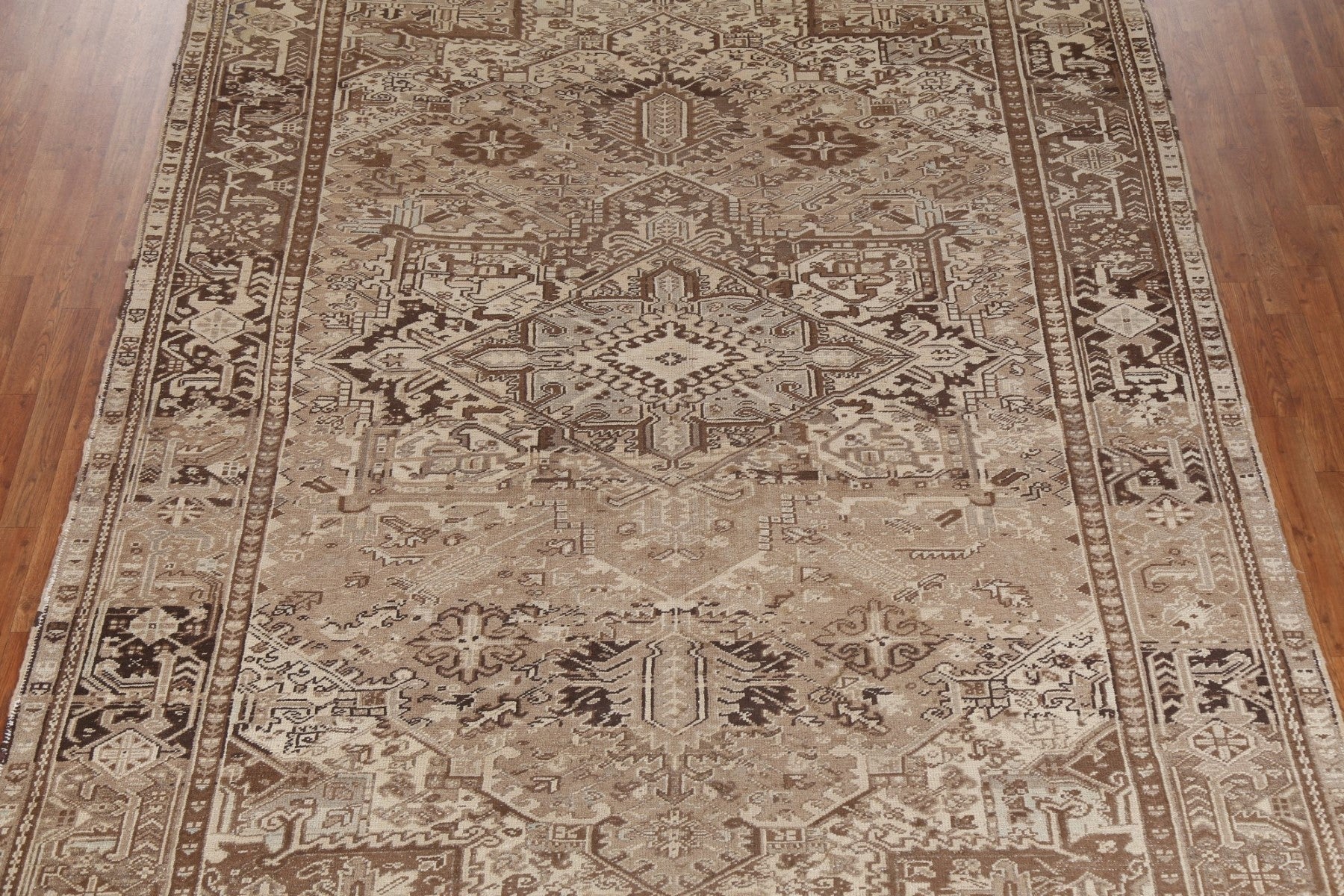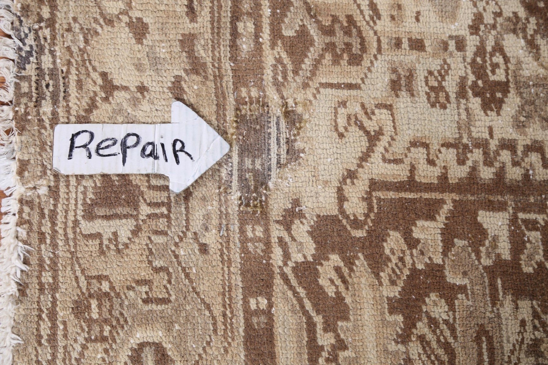A Beautiful Genuine Persia ( Persia ) Heriz rug is Hand Knotted by skillful weavers in Persia ( Persia ) with 100% Wool Material. This rug is in Very Good (Low Pile-Repair) condition. dimensions are 11' 1'' X 8' 4'' in foot and 338 X 254 in centimeter. the primary color is Beige & Ivories.