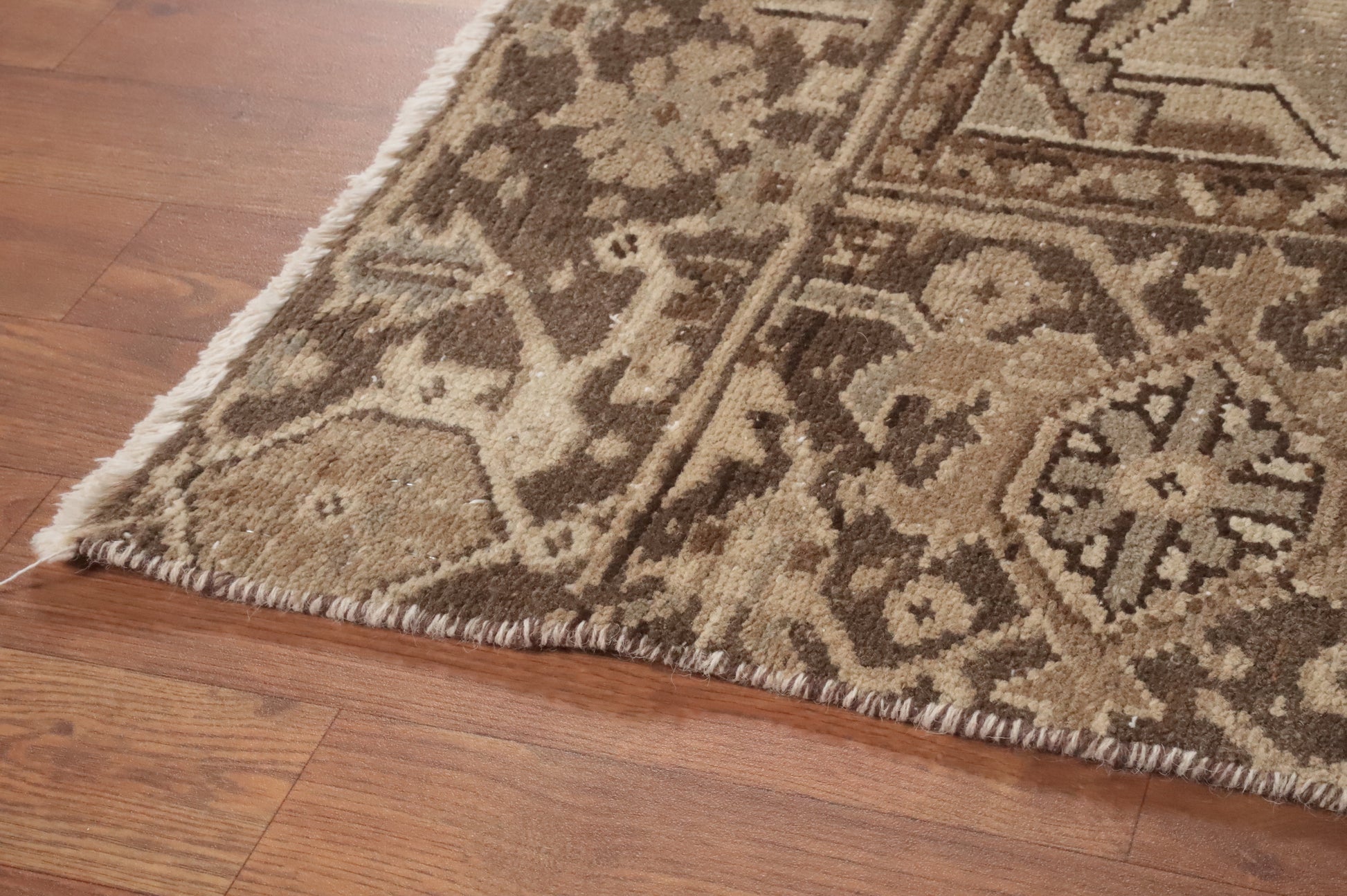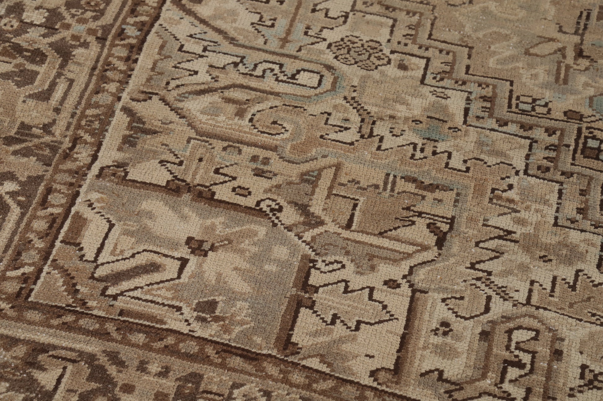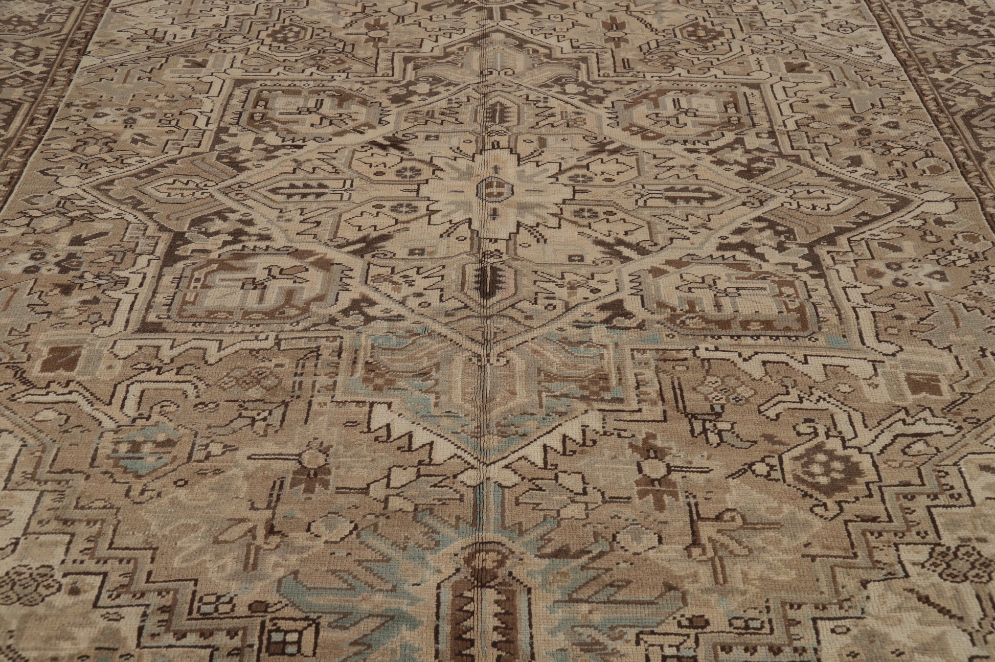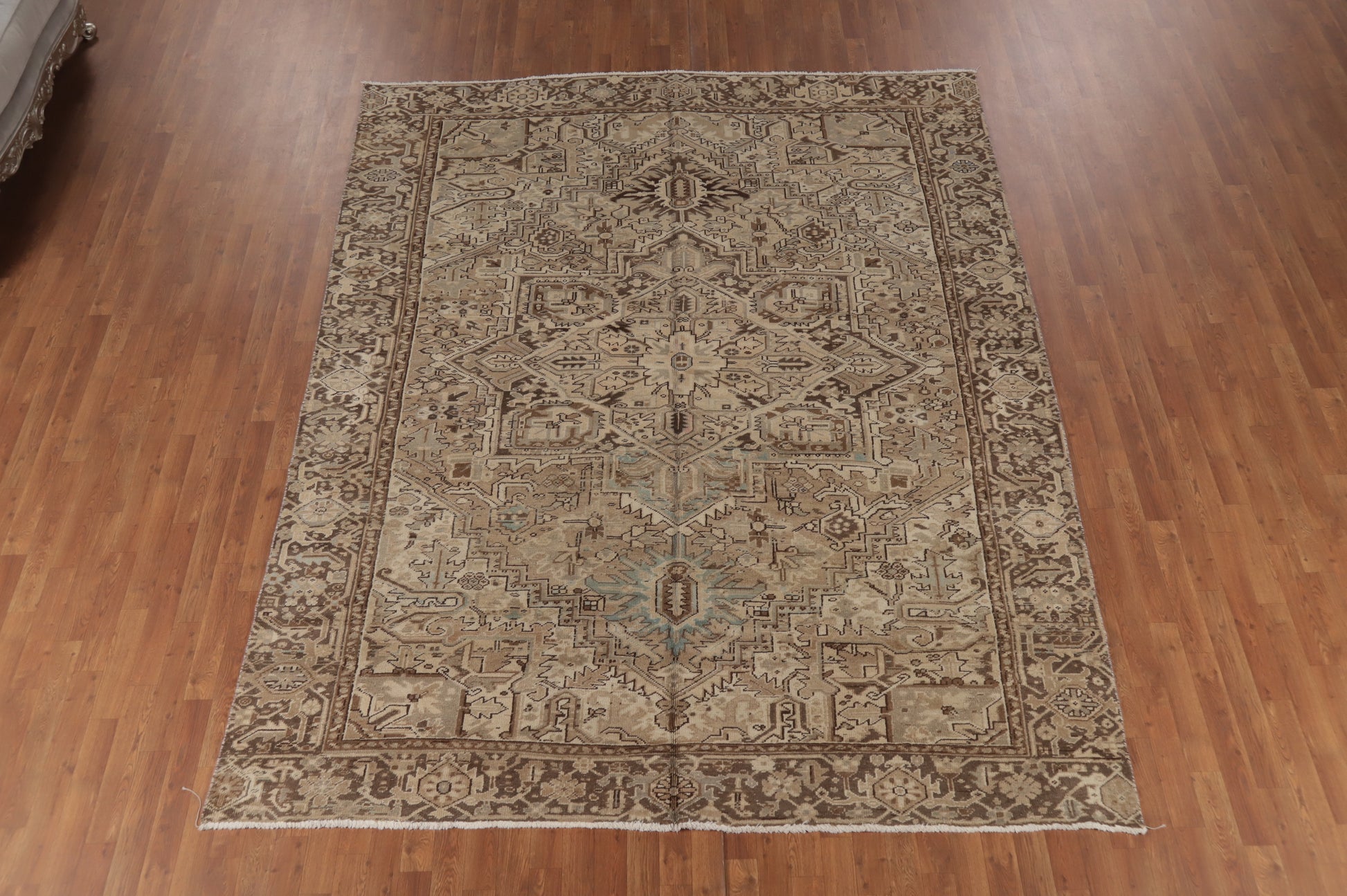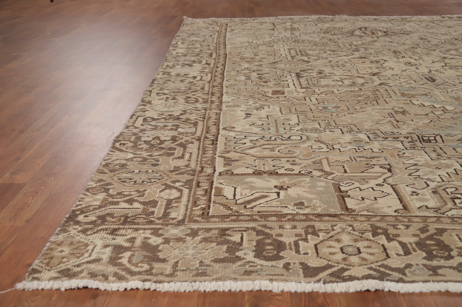 A Beautiful Genuine Persia ( Persia ) Heriz rug is Hand Knotted by skillful weavers in Persia ( Persia ) with 100% Wool Material. This rug is in Very Good ( Low Pile ) condition. dimensions are 10' 6'' X 8' 2'' in foot and 320 X 249 in centimeter. the primary color is Brown.