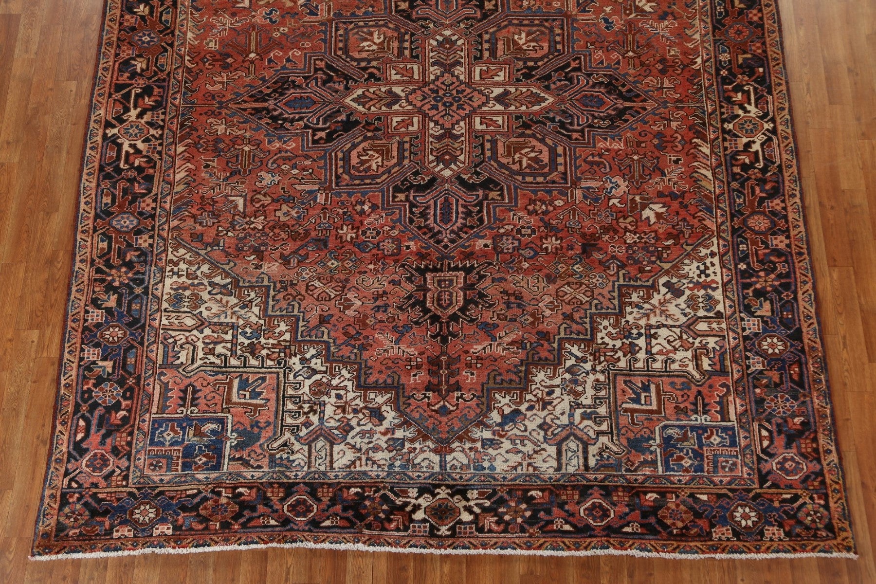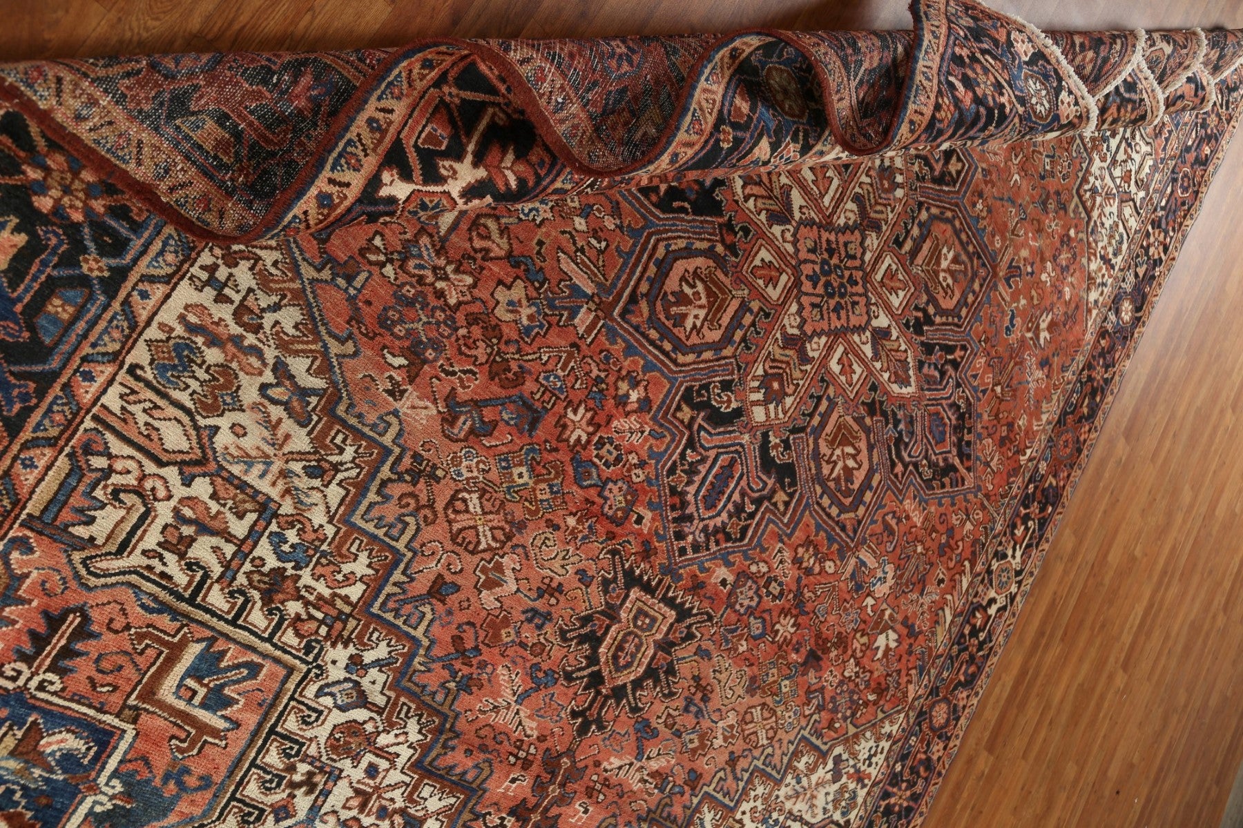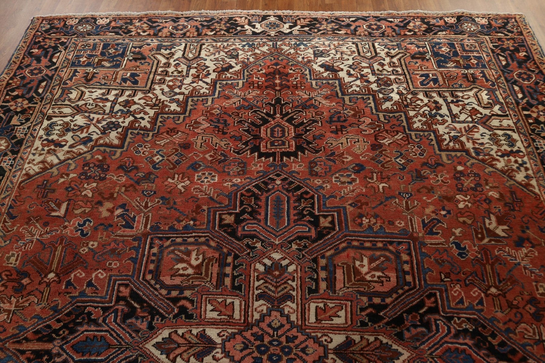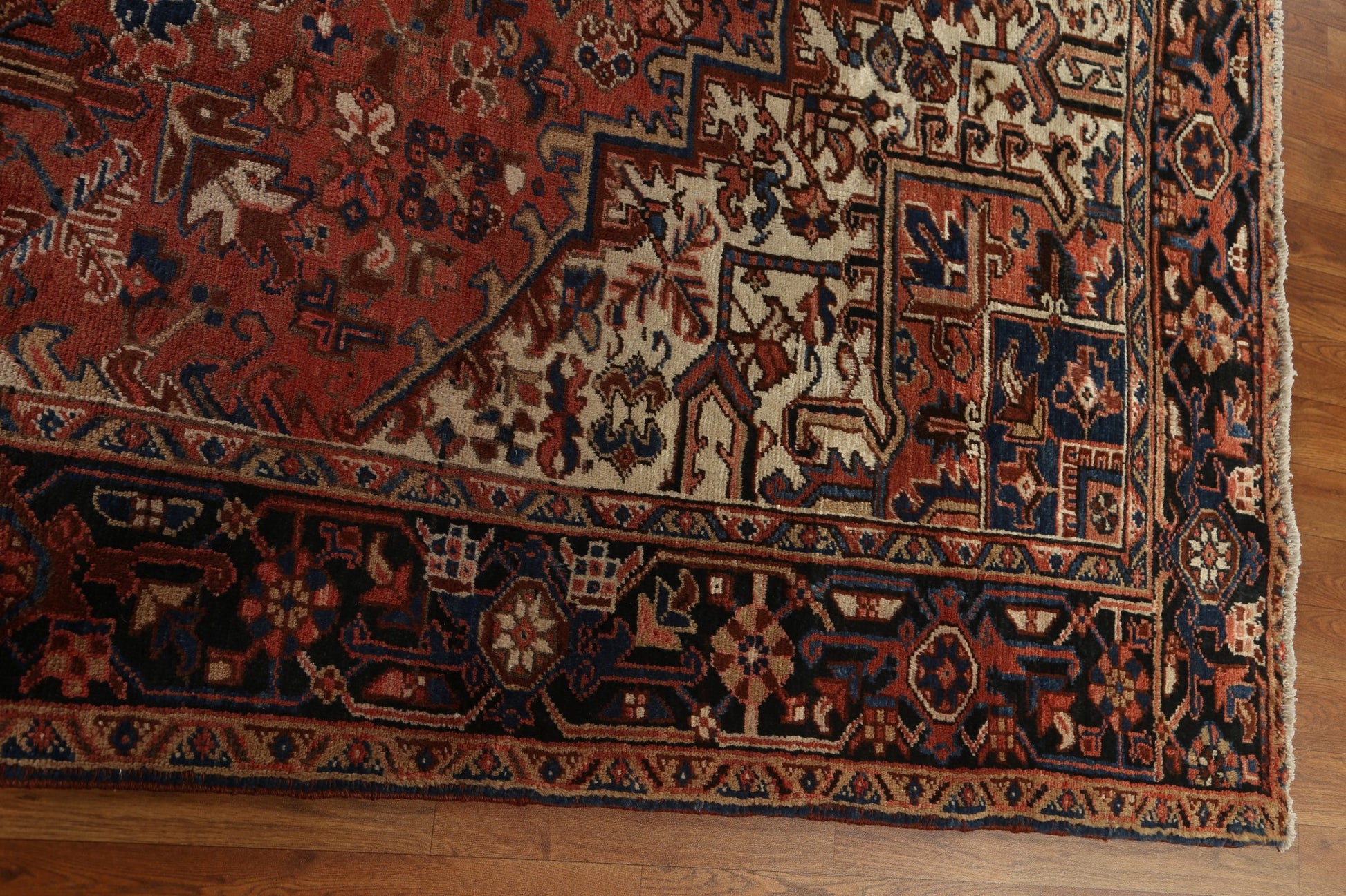 A Beautiful Genuine Persia ( Persia ) Heriz rug is Hand Knotted by skillful weavers in Persia ( Persia ) with 100% Wool Material. This rug is in Very Good condition. dimensions are 10' 9'' X 8' 7'' in foot and 328 X 262 in centimeter. the primary color is Red.
