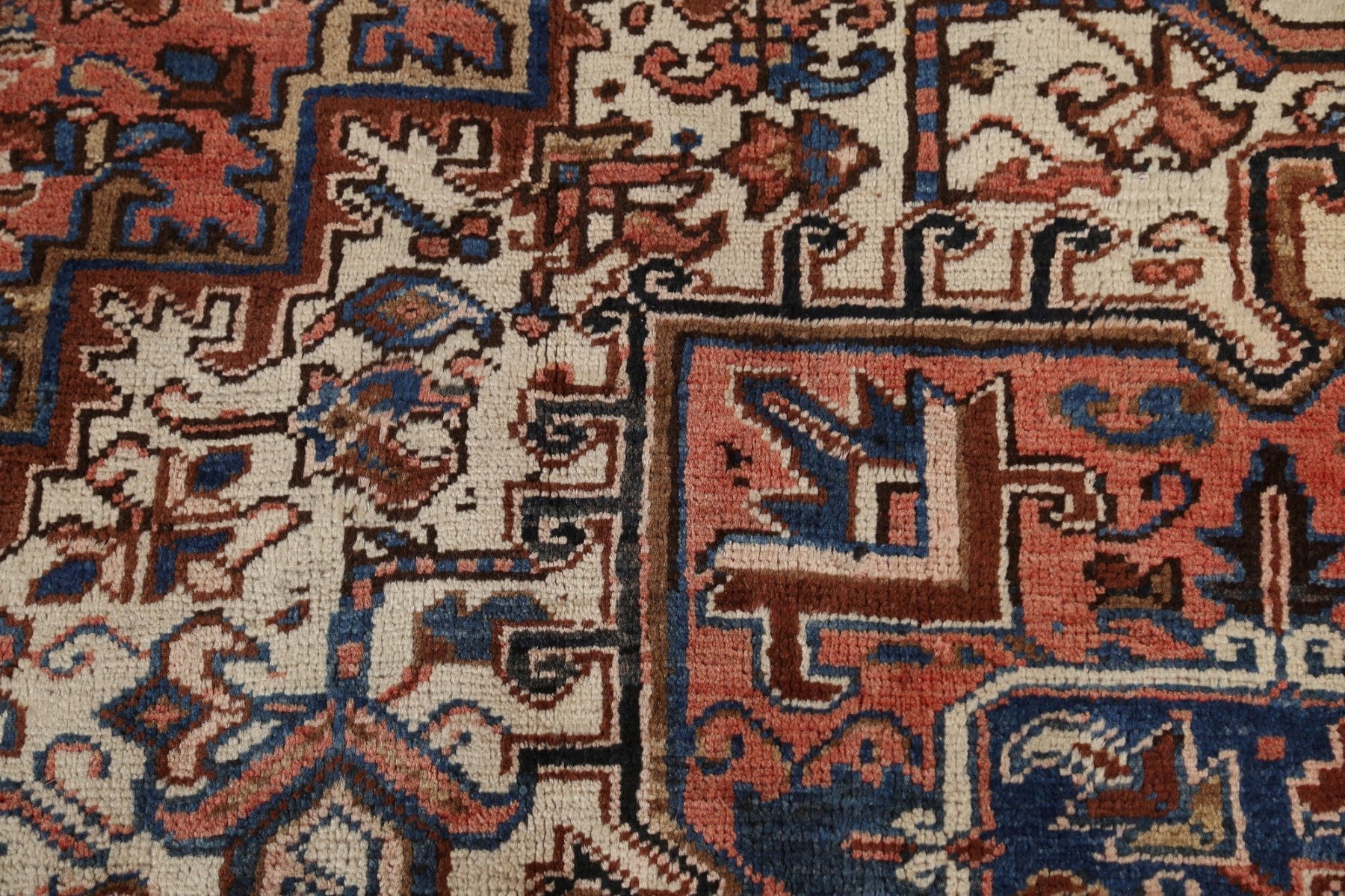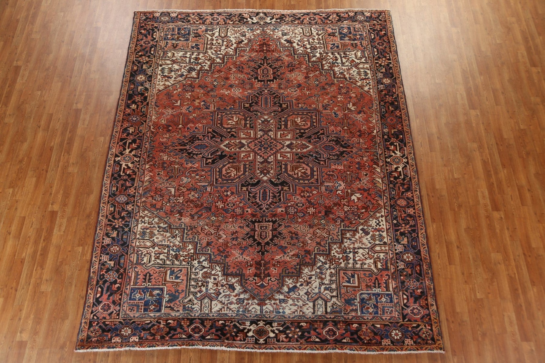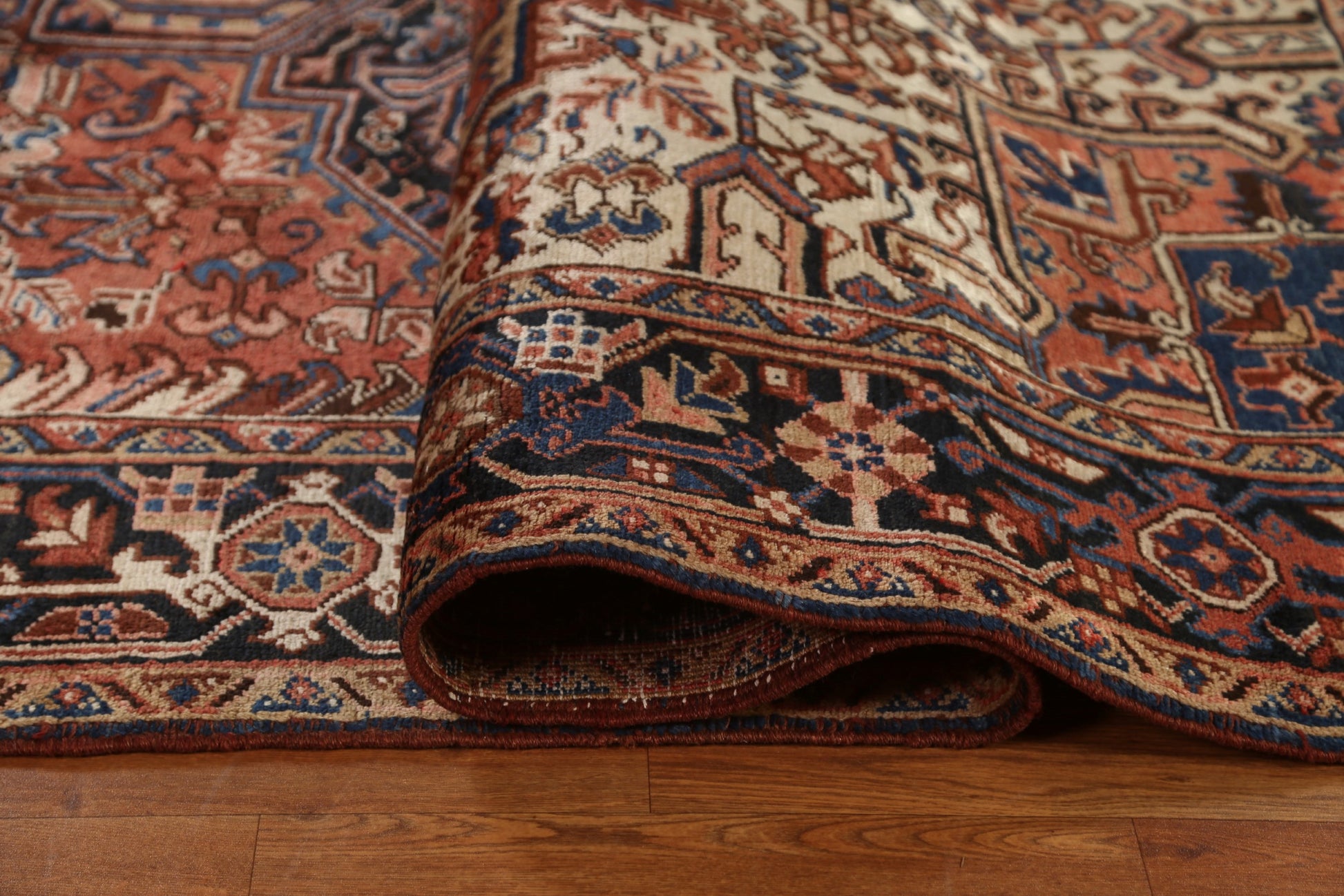 A Beautiful Genuine Persia ( Persia ) Heriz rug is Hand Knotted by skillful weavers in Persia ( Persia ) with 100% Wool Material. This rug is in Very Good condition. dimensions are 10' 9'' X 8' 7'' in foot and 328 X 262 in centimeter. the primary color is Red.