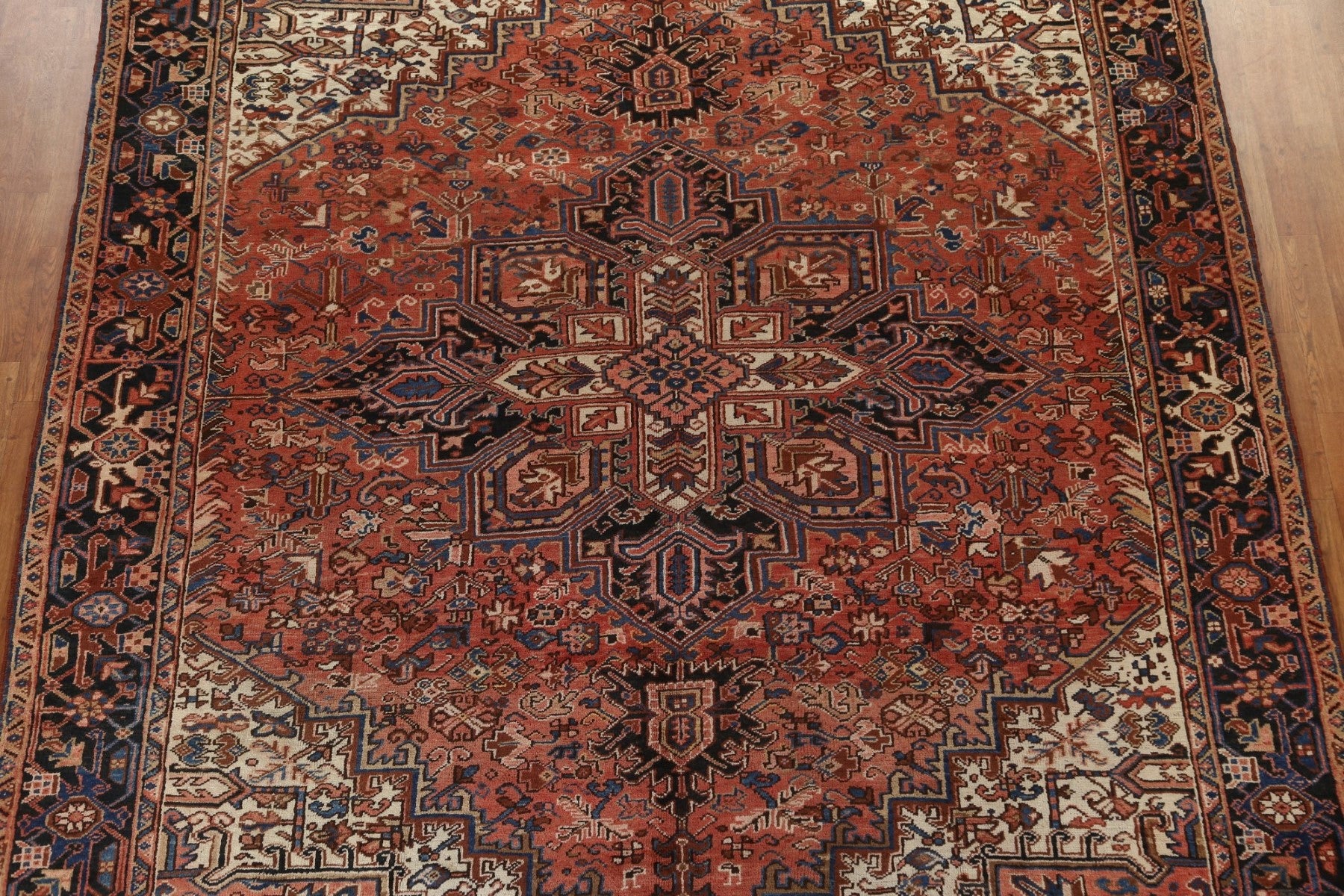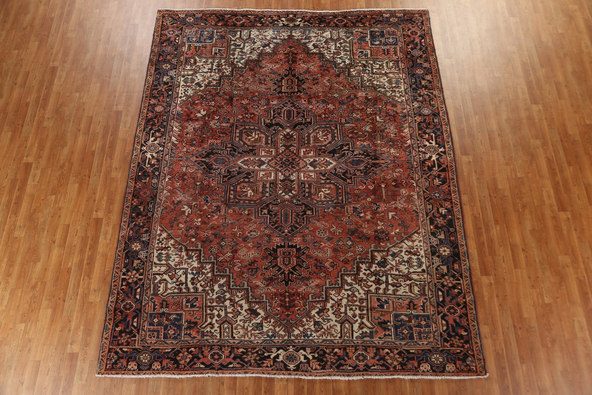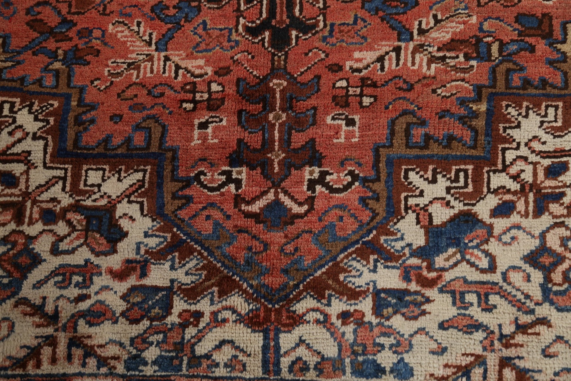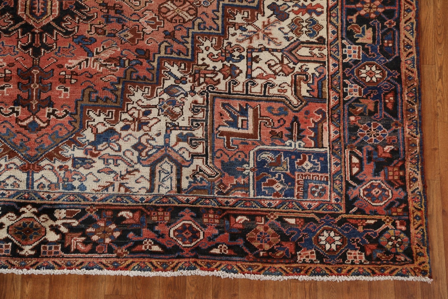 A Beautiful Genuine Persia ( Persia ) Heriz rug is Hand Knotted by skillful weavers in Persia ( Persia ) with 100% Wool Material. This rug is in Very Good condition. dimensions are 10' 9'' X 8' 7'' in foot and 328 X 262 in centimeter. the primary color is Red.