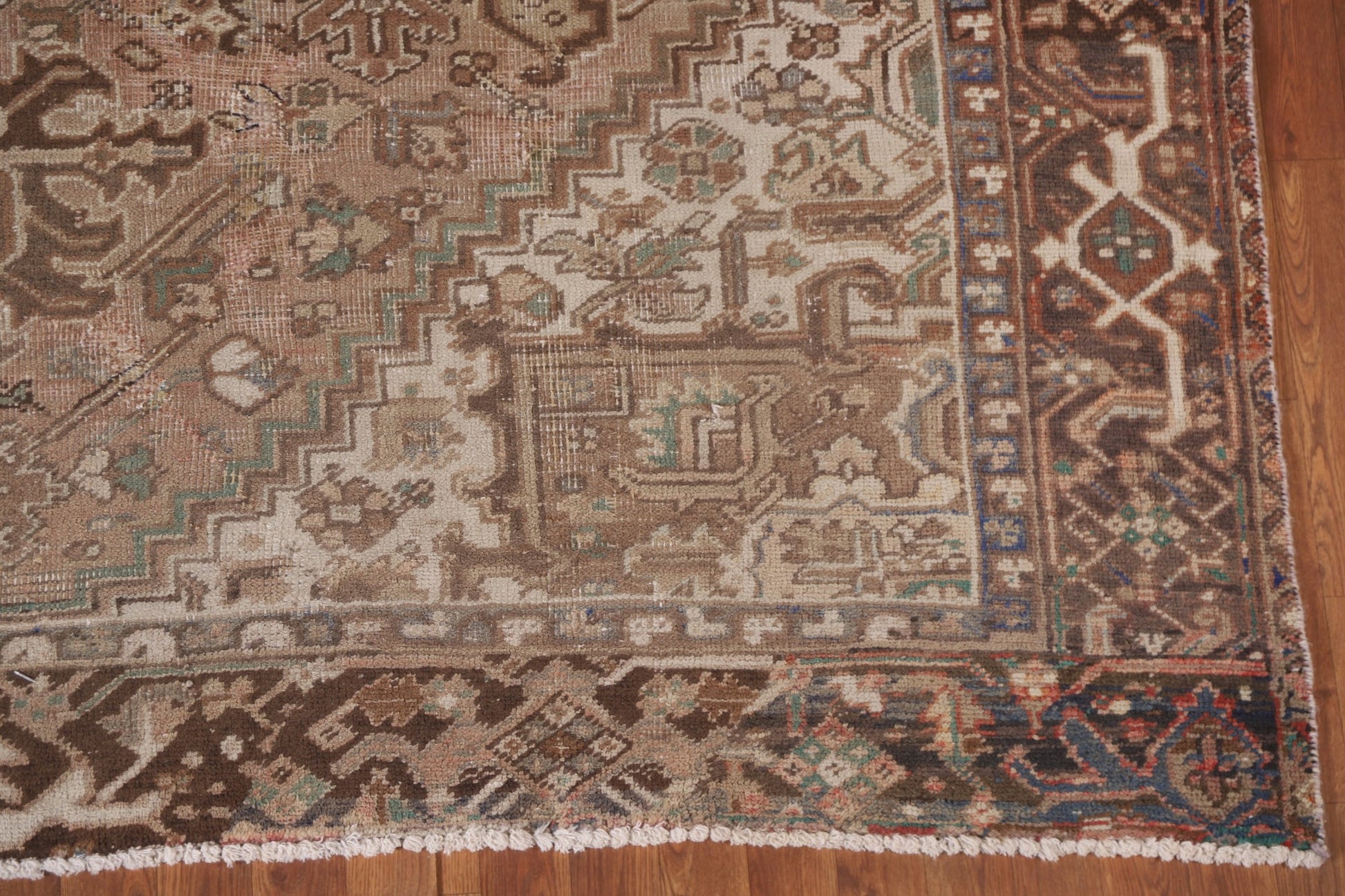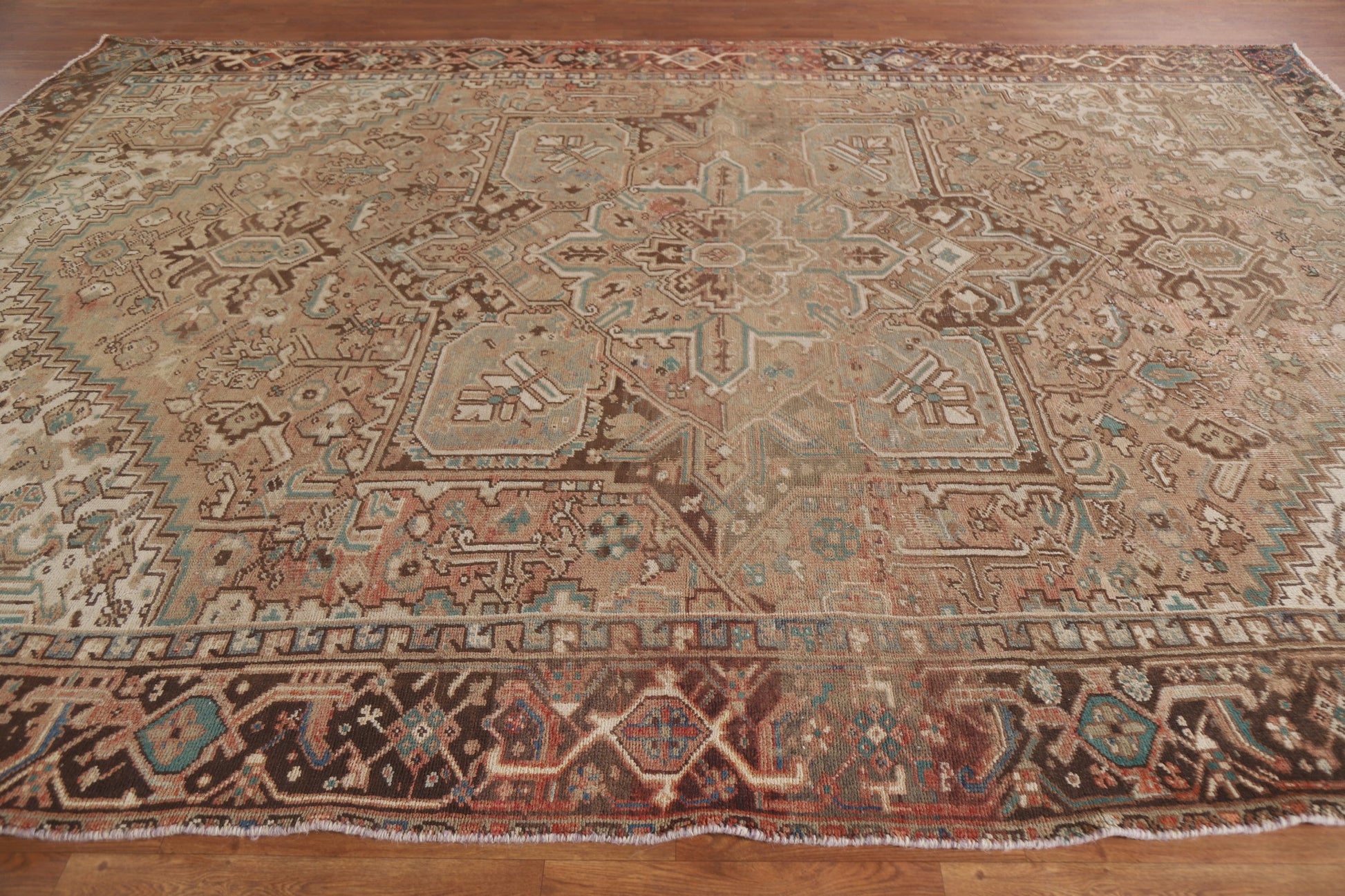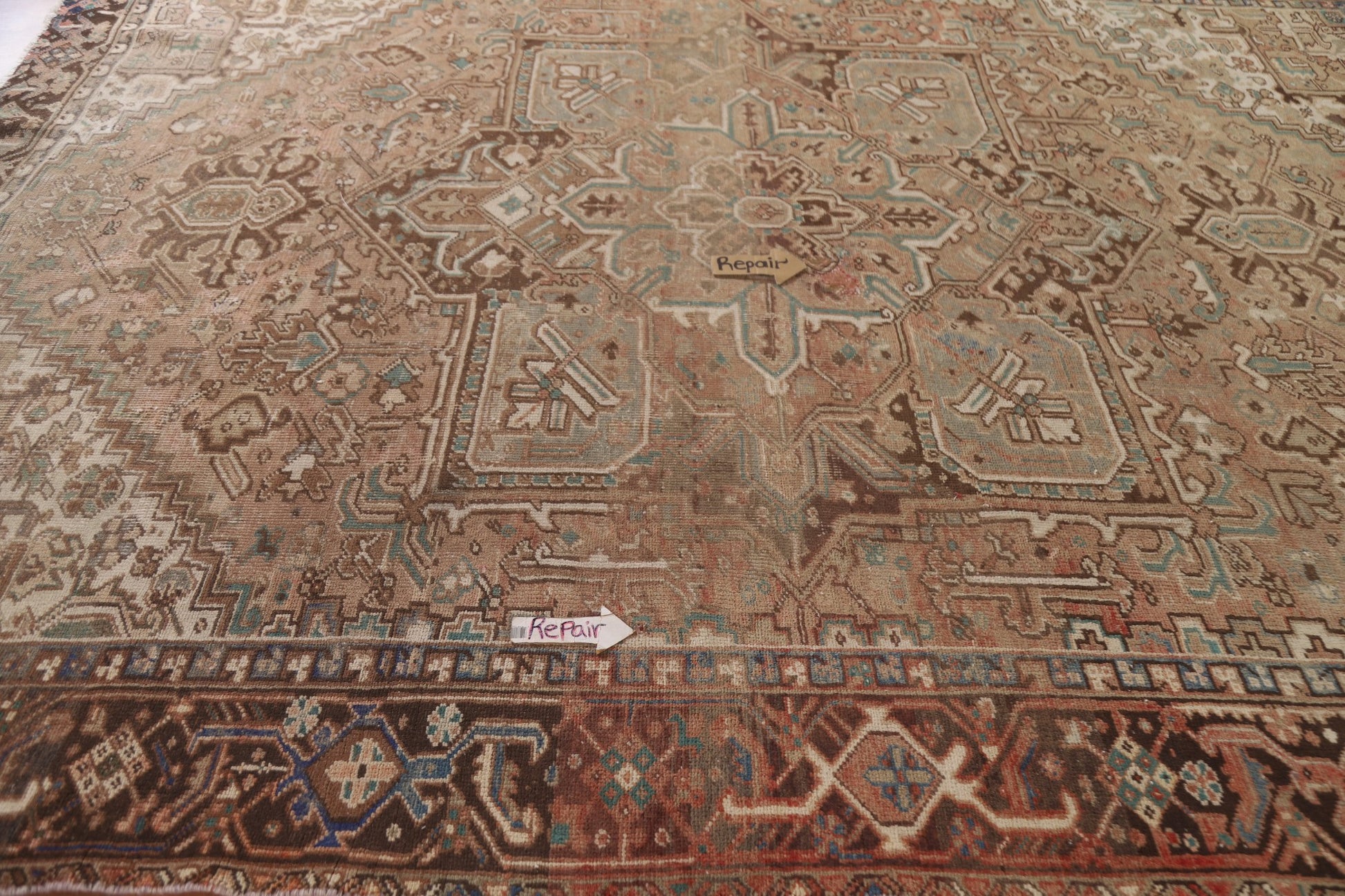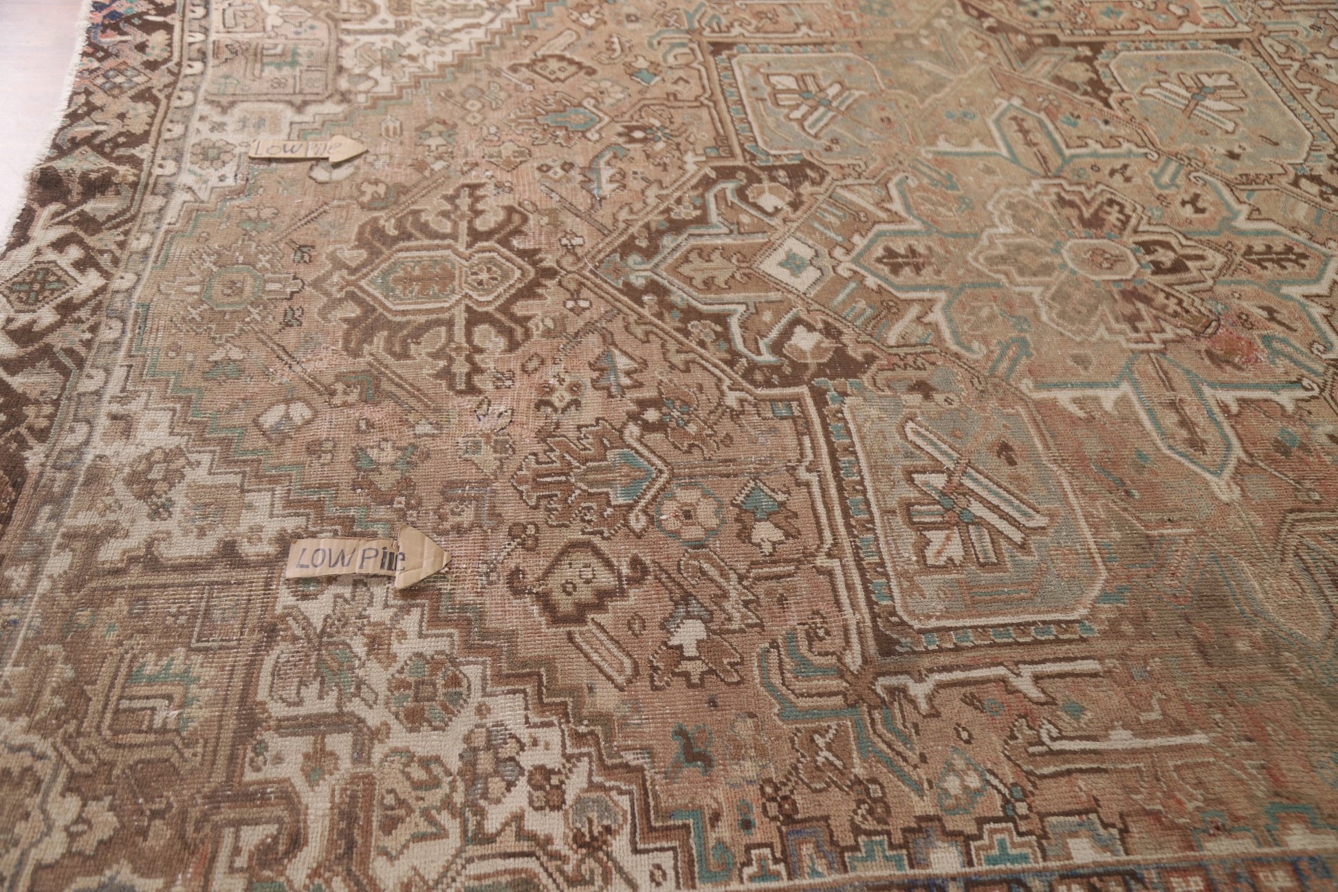 A Beautiful Genuine Persia ( Persia ) Heriz rug is Hand Knotted by skillful weavers in Persia ( Persia ) with 100% Wool Material. This rug is in Good (Low Pile-Repairs) condition. dimensions are 11' 7'' X 8' 10'' in foot and 353 X 269 in centimeter. the primary color is Brown.