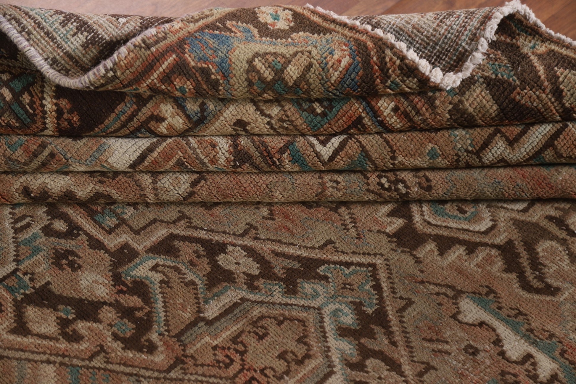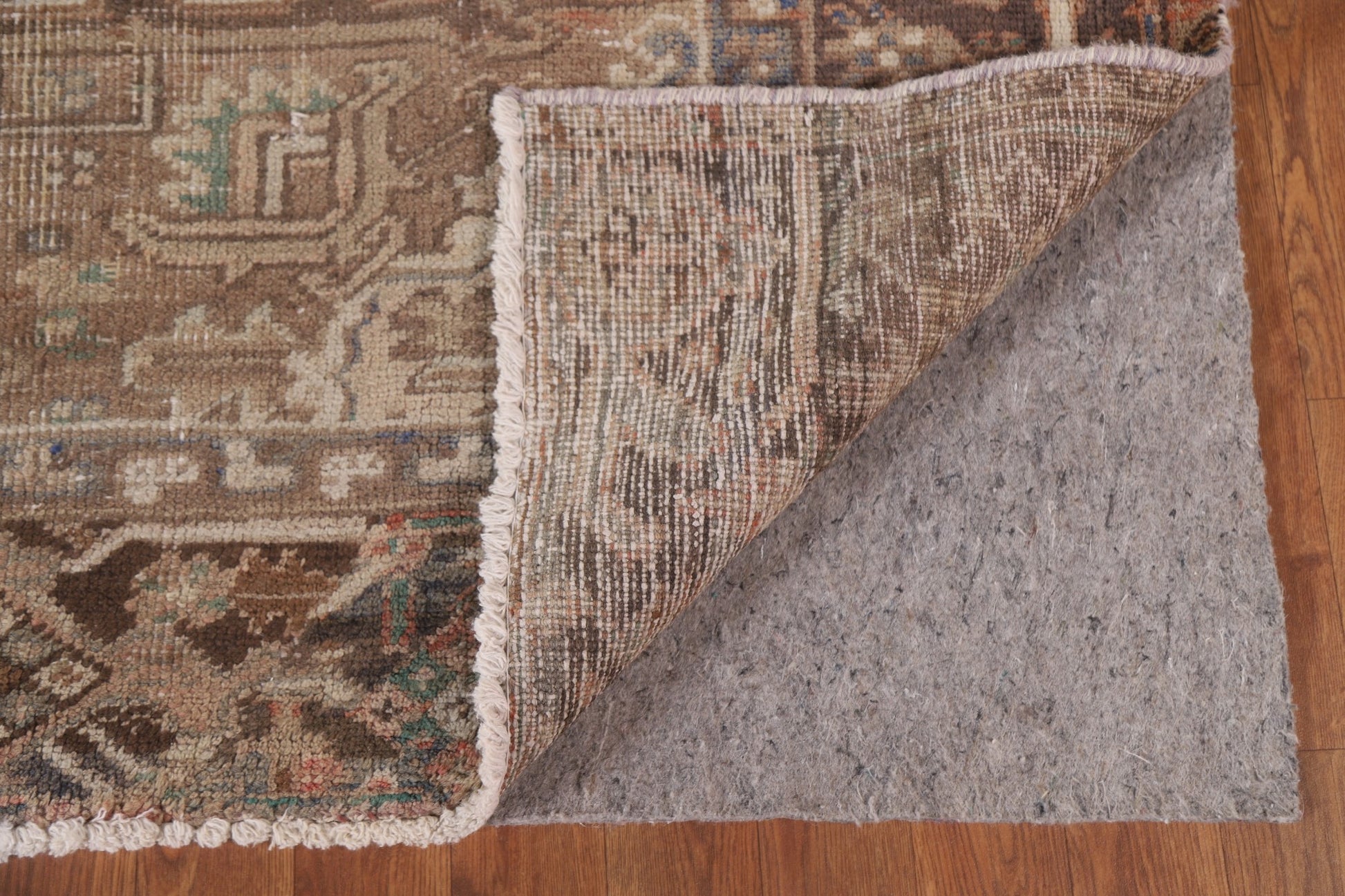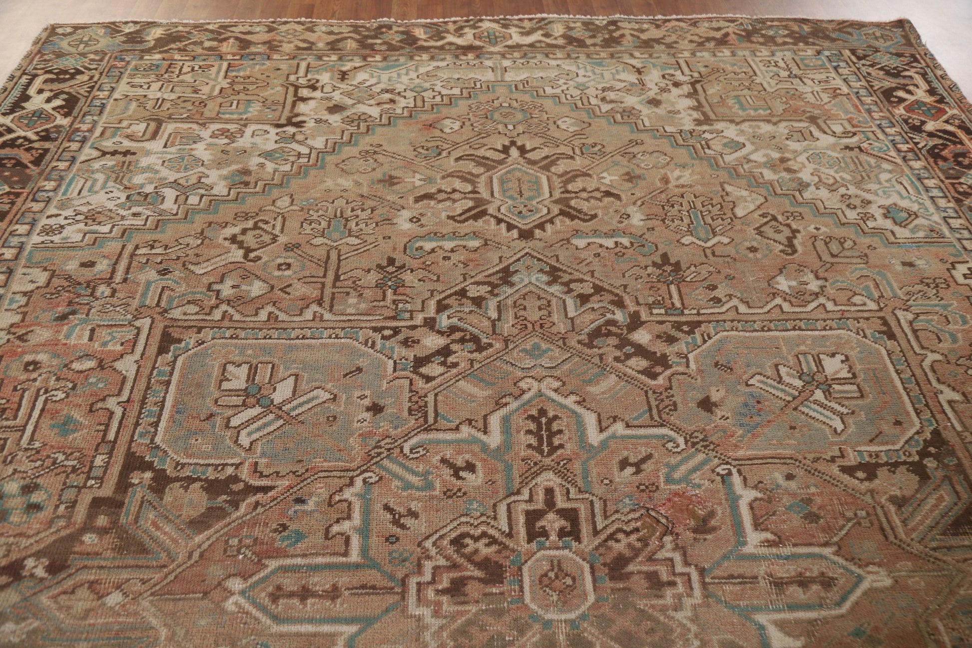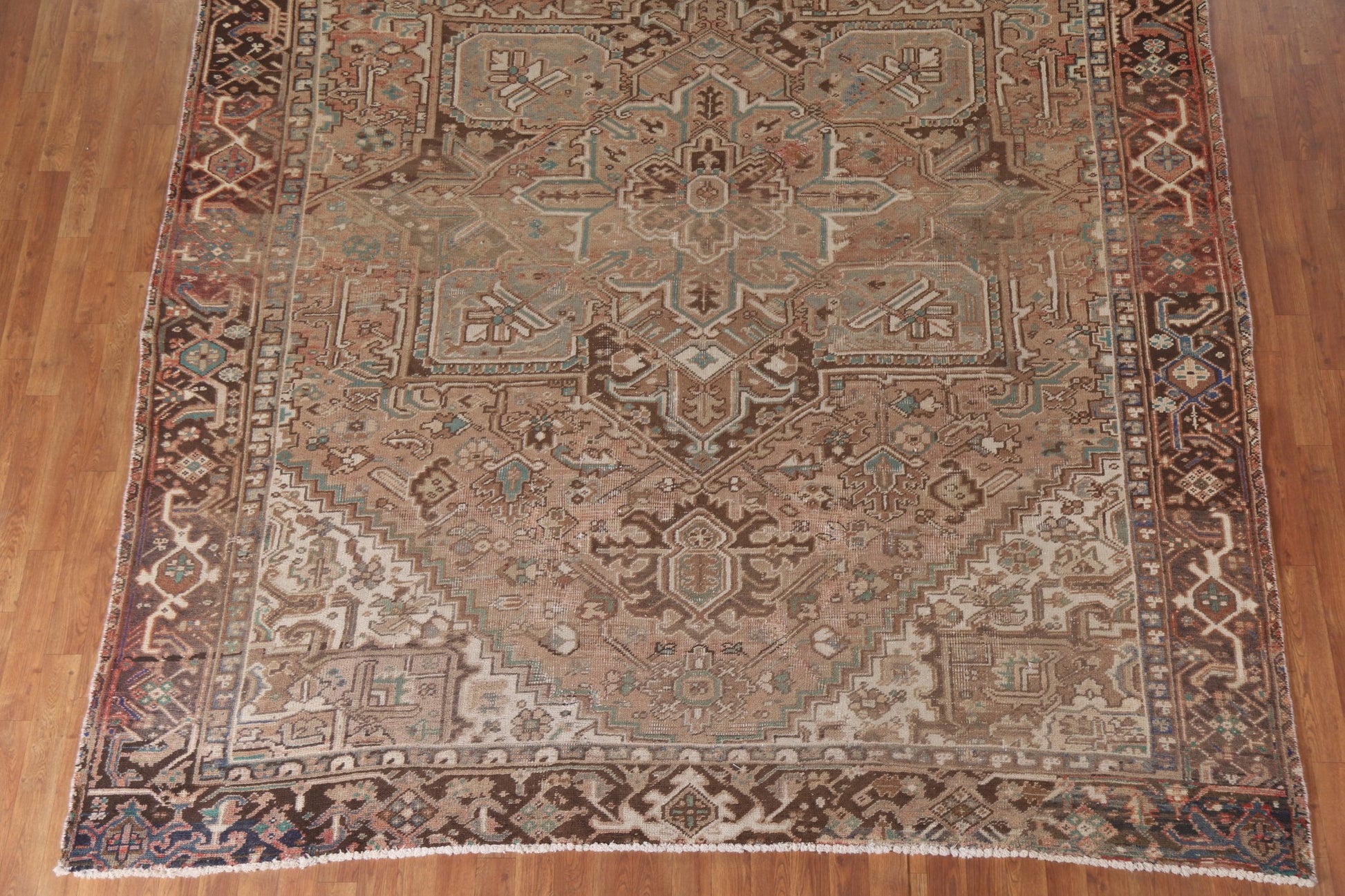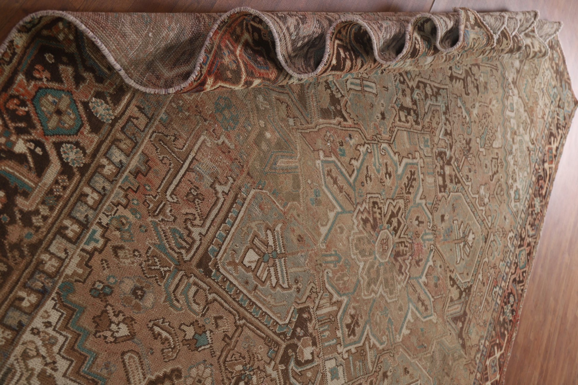 A Beautiful Genuine Persia ( Persia ) Heriz rug is Hand Knotted by skillful weavers in Persia ( Persia ) with 100% Wool Material. This rug is in Good (Low Pile-Repairs) condition. dimensions are 11' 7'' X 8' 10'' in foot and 353 X 269 in centimeter. the primary color is Brown.