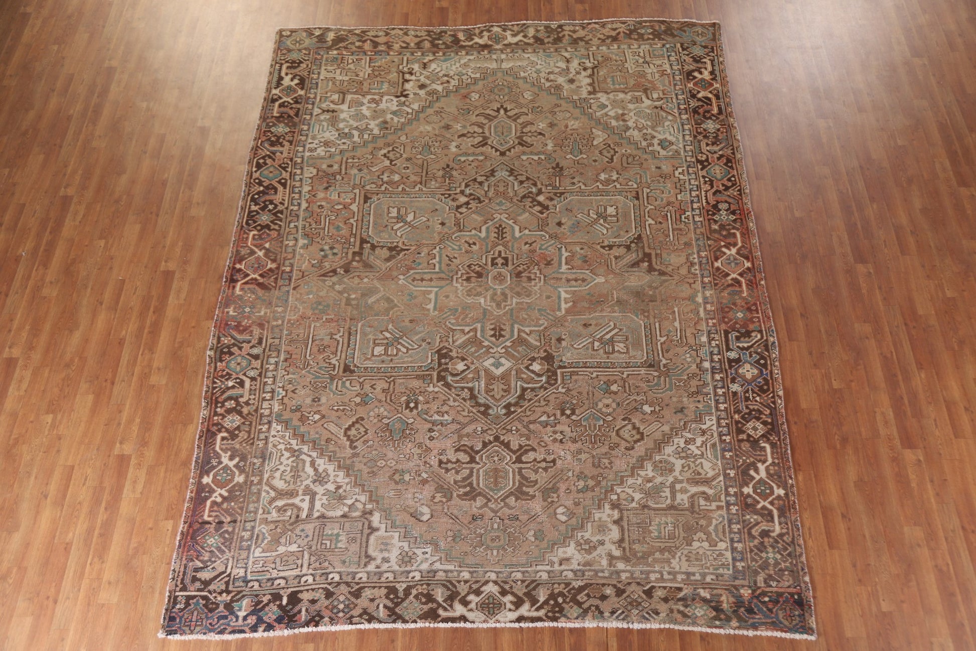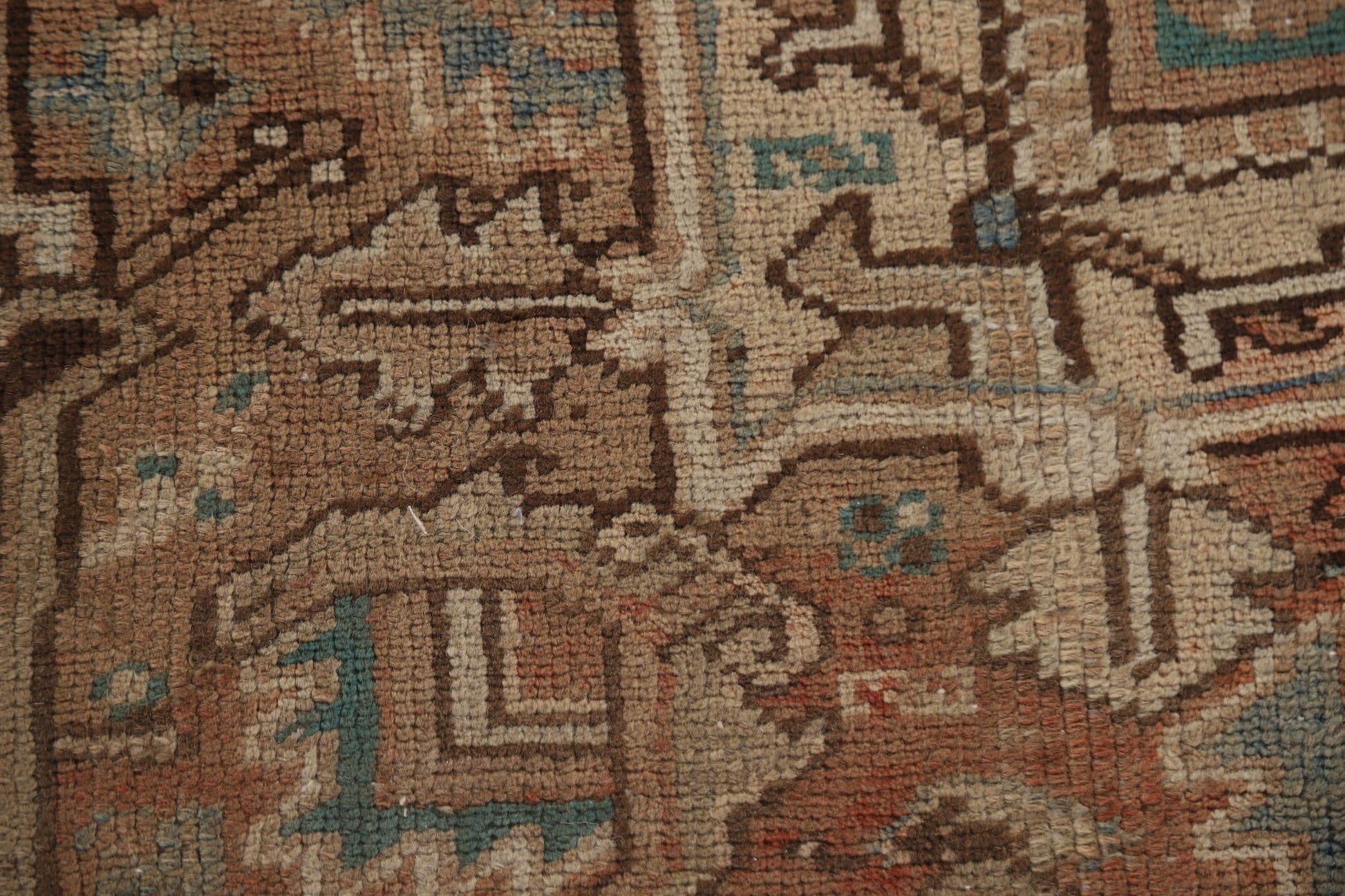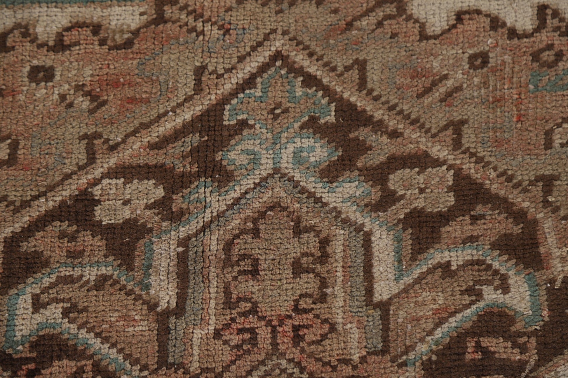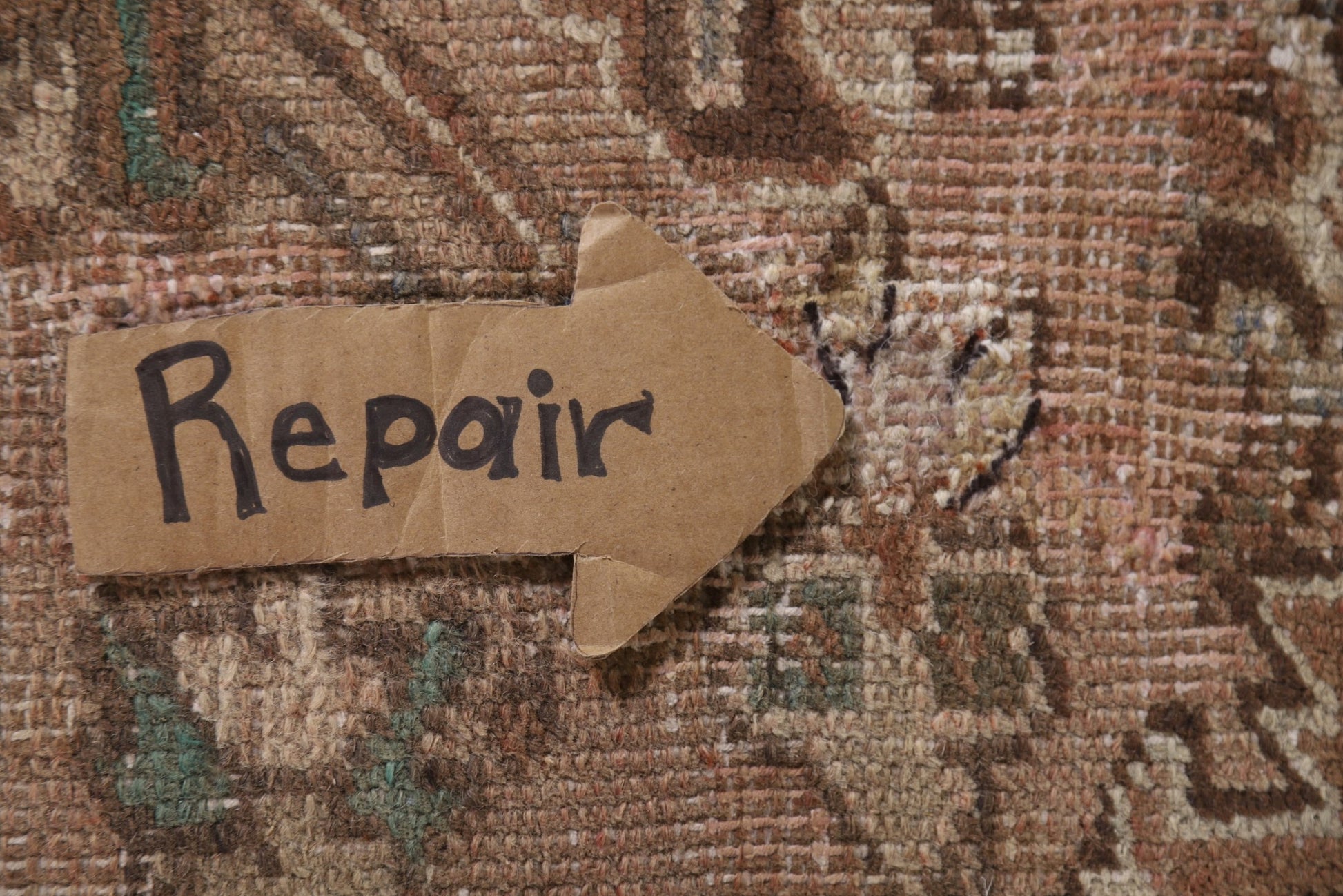 A Beautiful Genuine Persia ( Persia ) Heriz rug is Hand Knotted by skillful weavers in Persia ( Persia ) with 100% Wool Material. This rug is in Good (Low Pile-Repairs) condition. dimensions are 11' 7'' X 8' 10'' in foot and 353 X 269 in centimeter. the primary color is Brown.