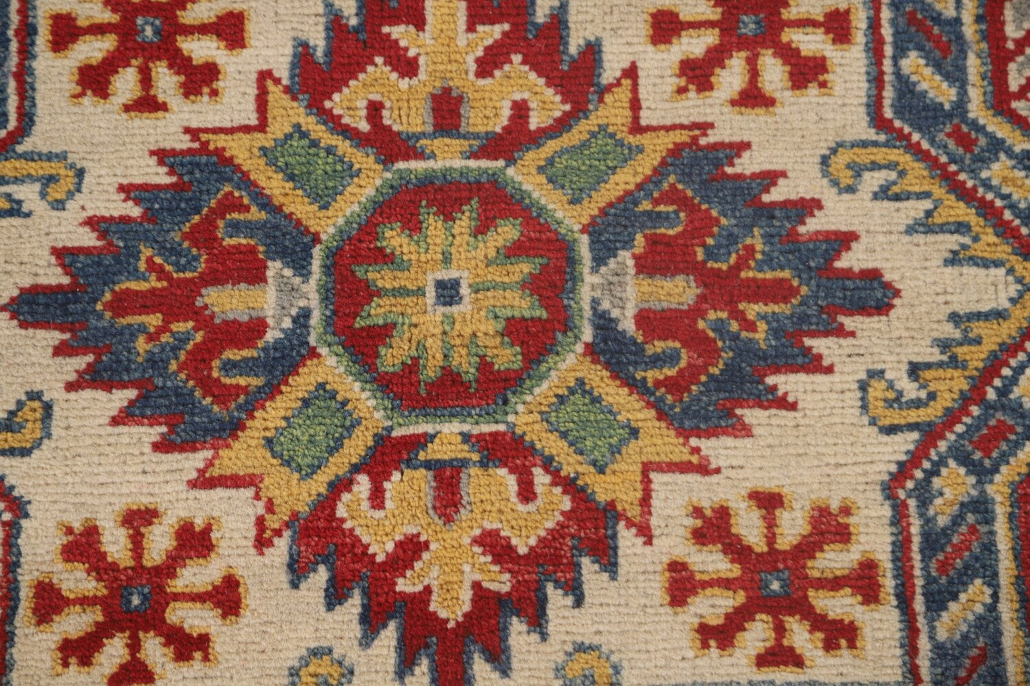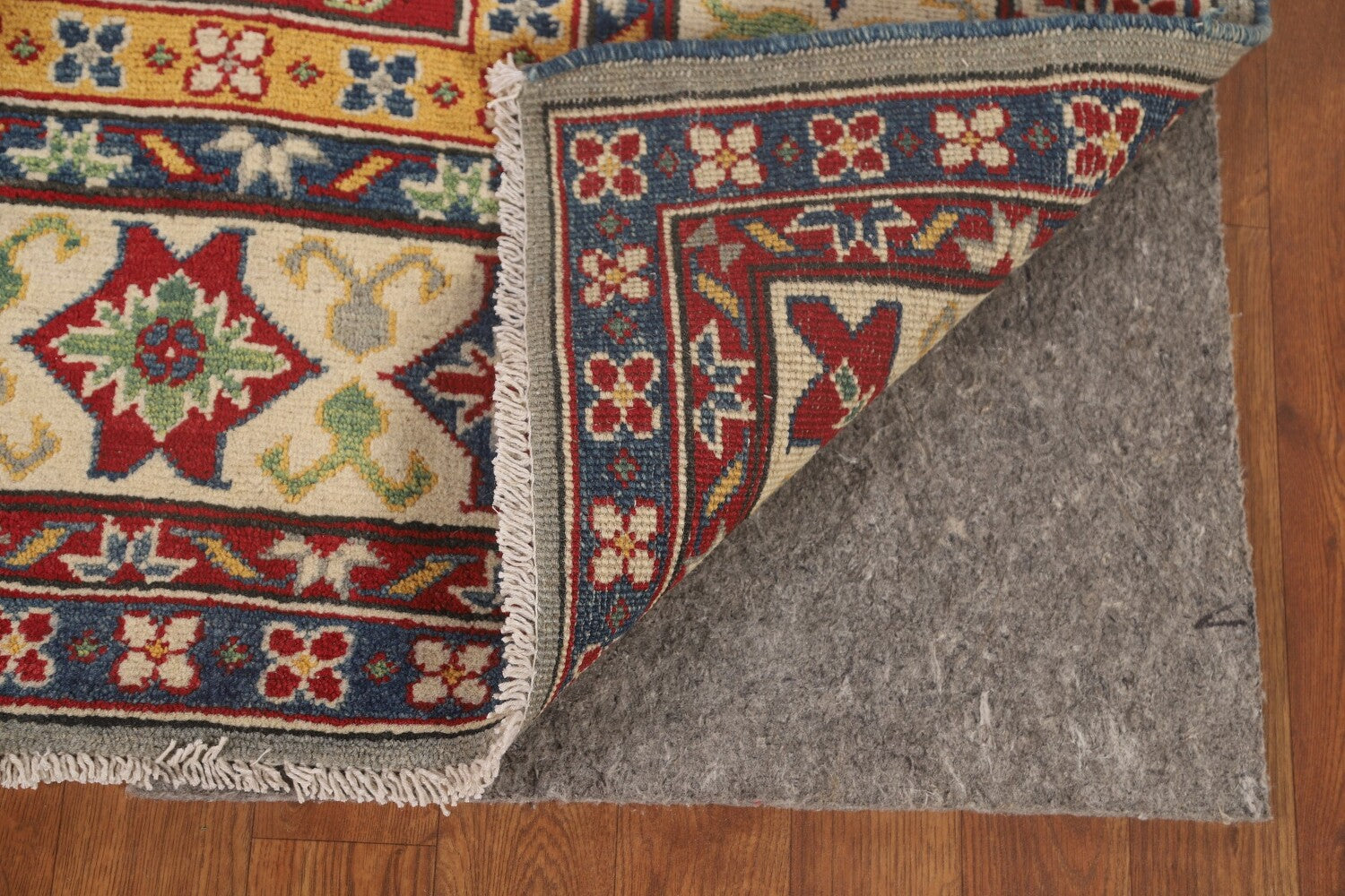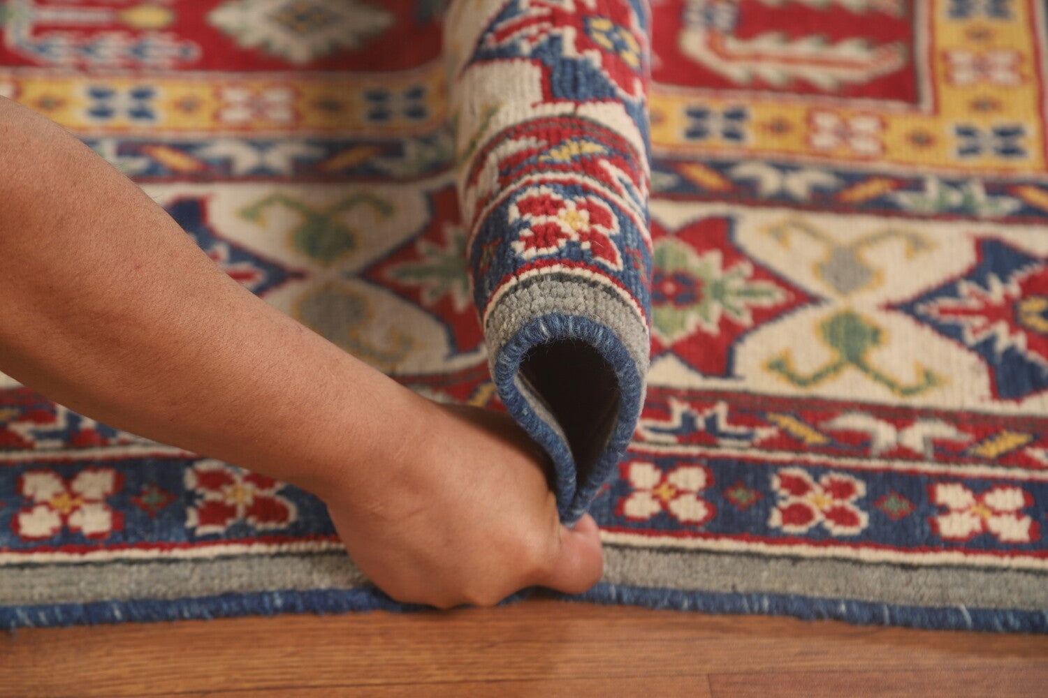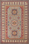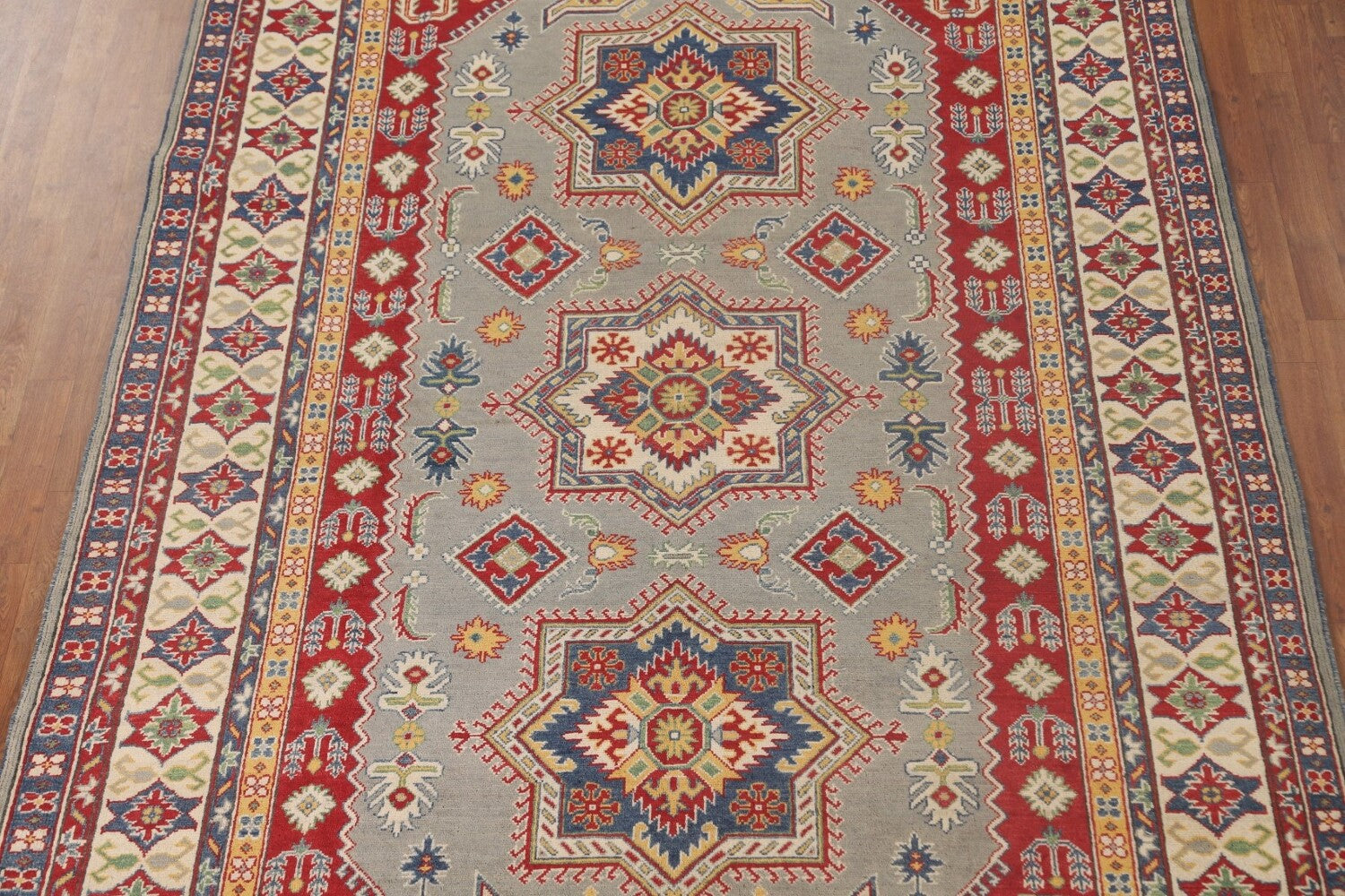 A Beautiful Genuine Pakistan Kazak rug is Hand Knotted by skillful weavers in Pakistan with 100% Wool Material. This rug is in New, First Quality condition. dimensions are 9' 10'' X 6' 11'' in foot and 300 X 211 in centimeter. the primary color is Greys & Charcoal.