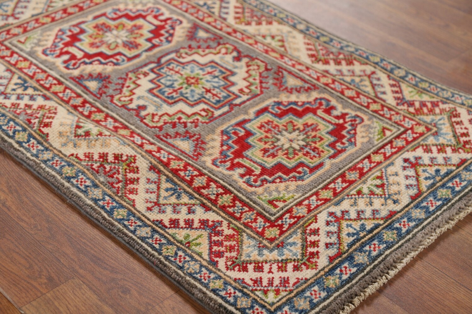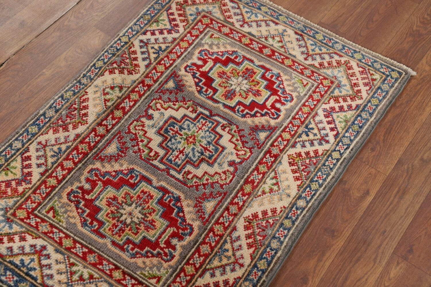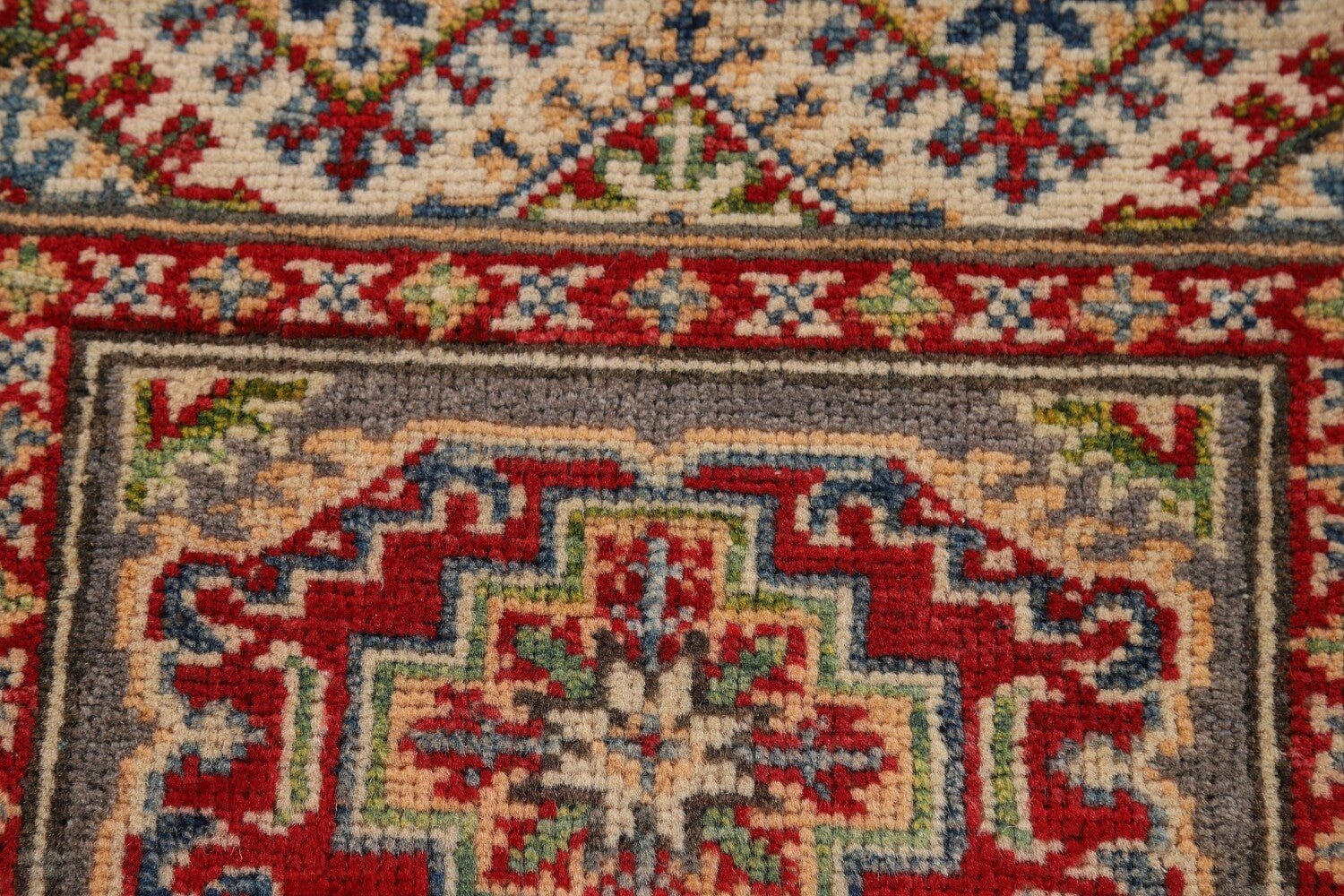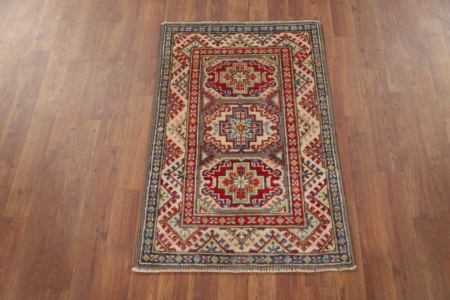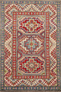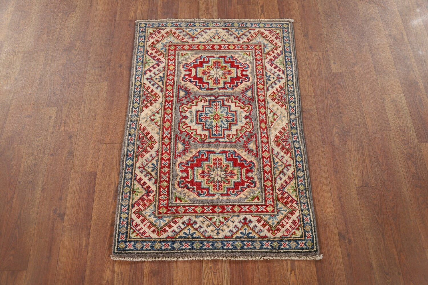 A Beautiful Genuine Pakistan Kazak rug is Hand Knotted by skillful weavers in Pakistan with 100% Wool Material. This rug is in New, First Quality condition. dimensions are 3' 0'' X 2' 0'' in foot and 91 X 61 in centimeter. the primary color is Beige & Ivories.