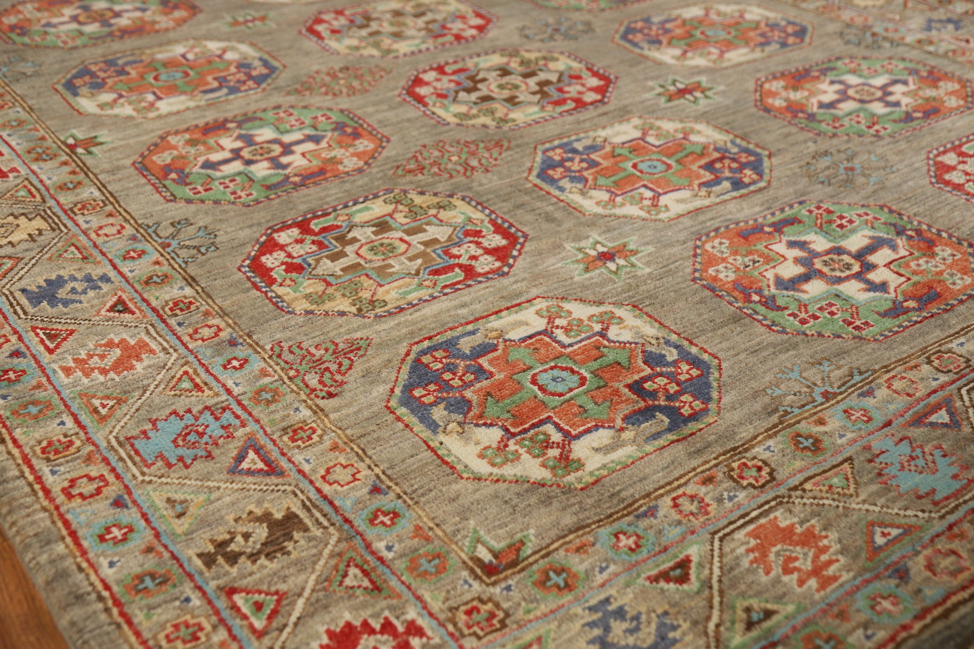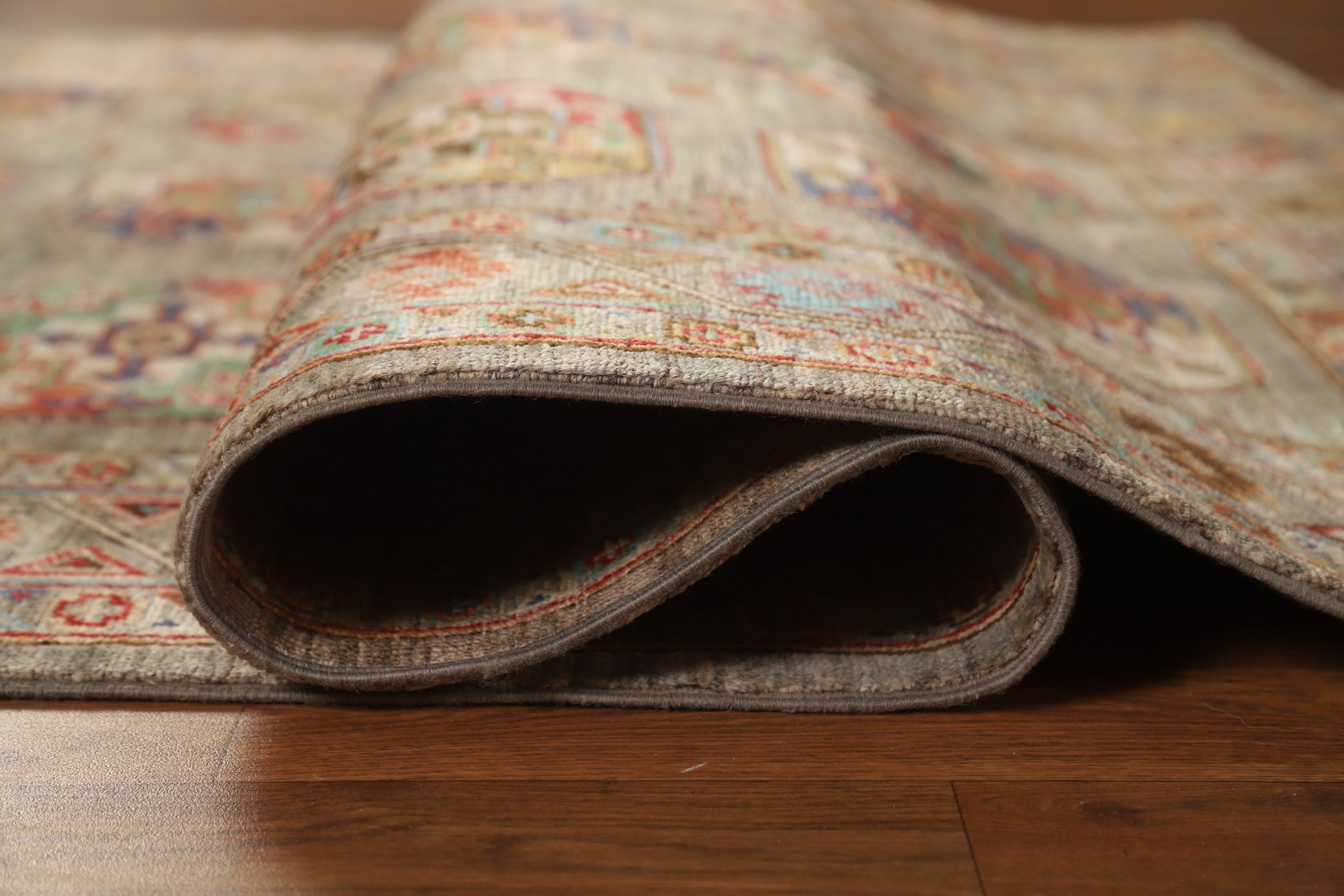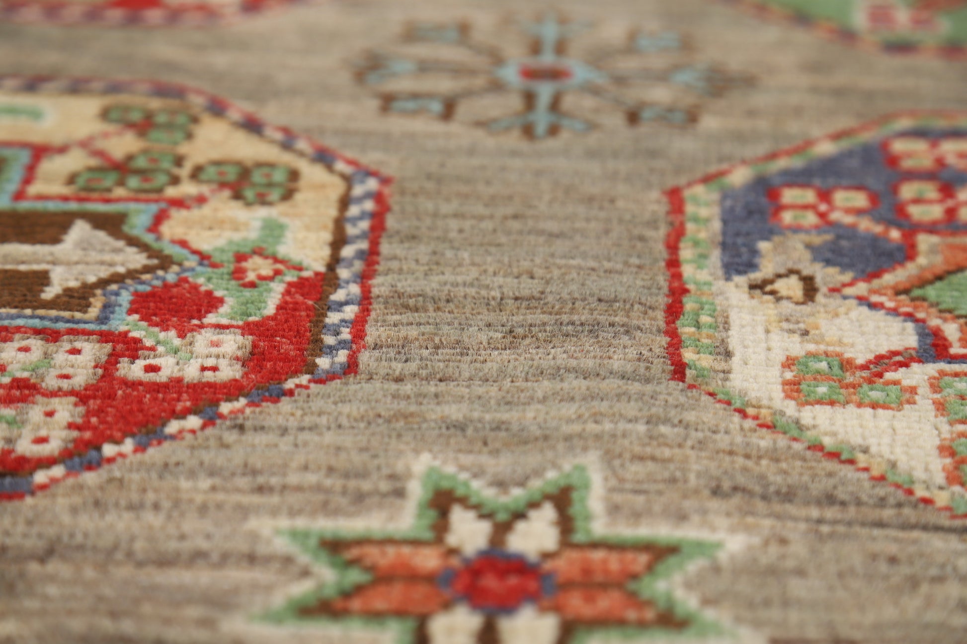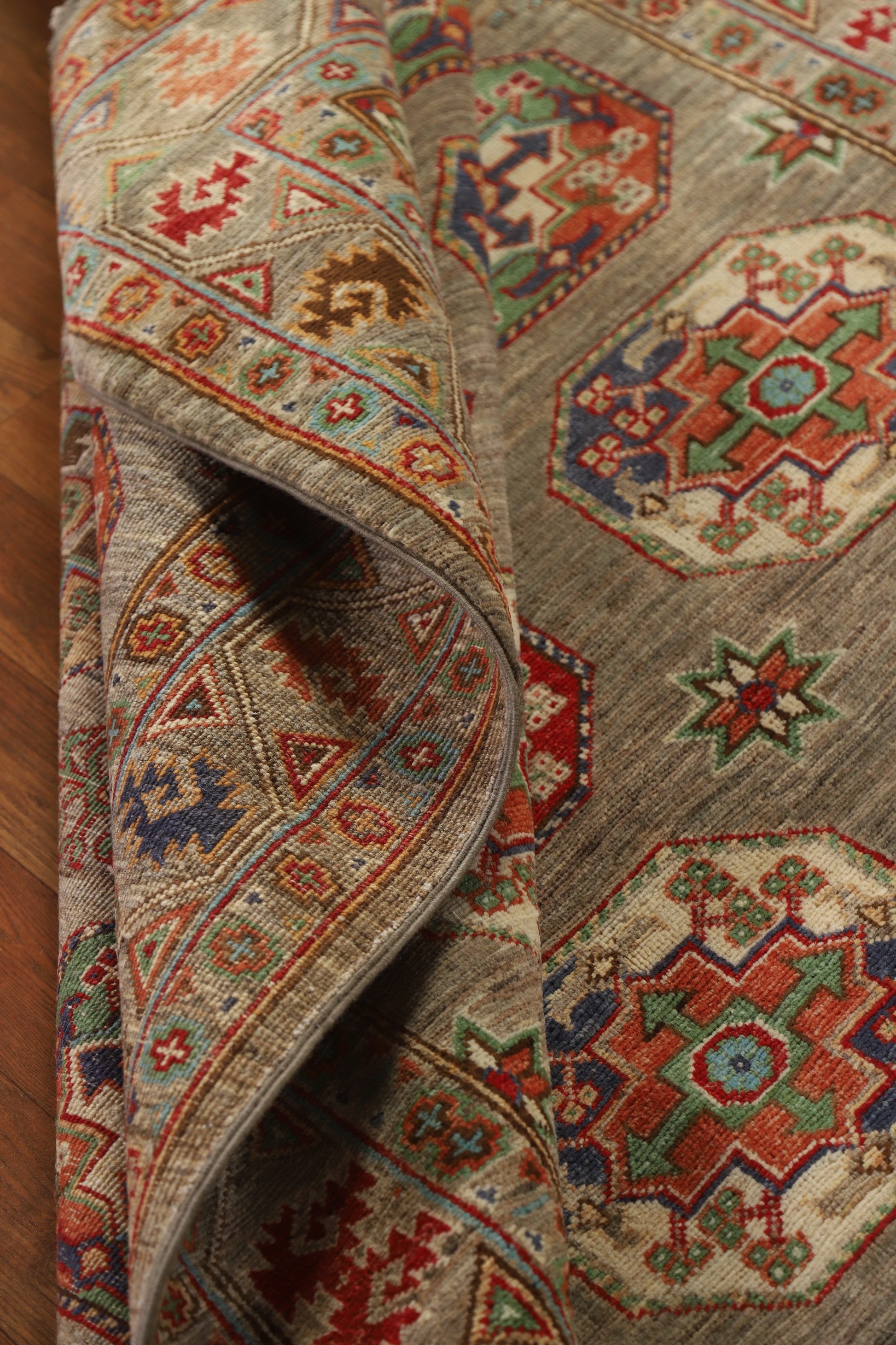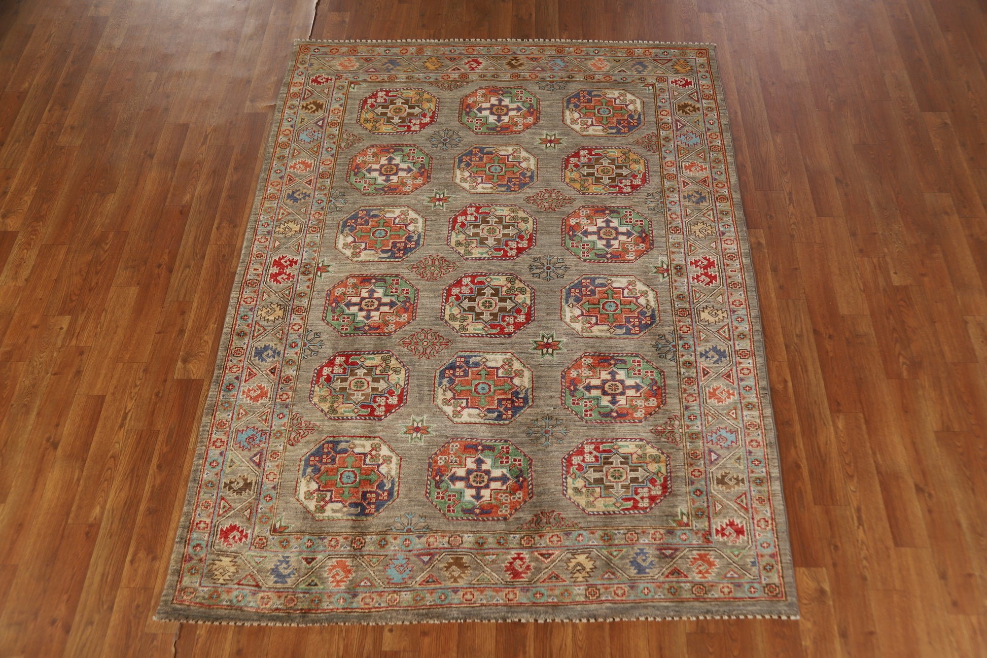 A Beautiful Genuine Pakistan Kazak rug is Hand Knotted by skillful weavers in Pakistan with 100% Wool Material. This rug is in New, First Quality condition. dimensions are 6' 5'' X 4' 10'' in foot and 196 X 147 in centimeter. the primary color is Brown.