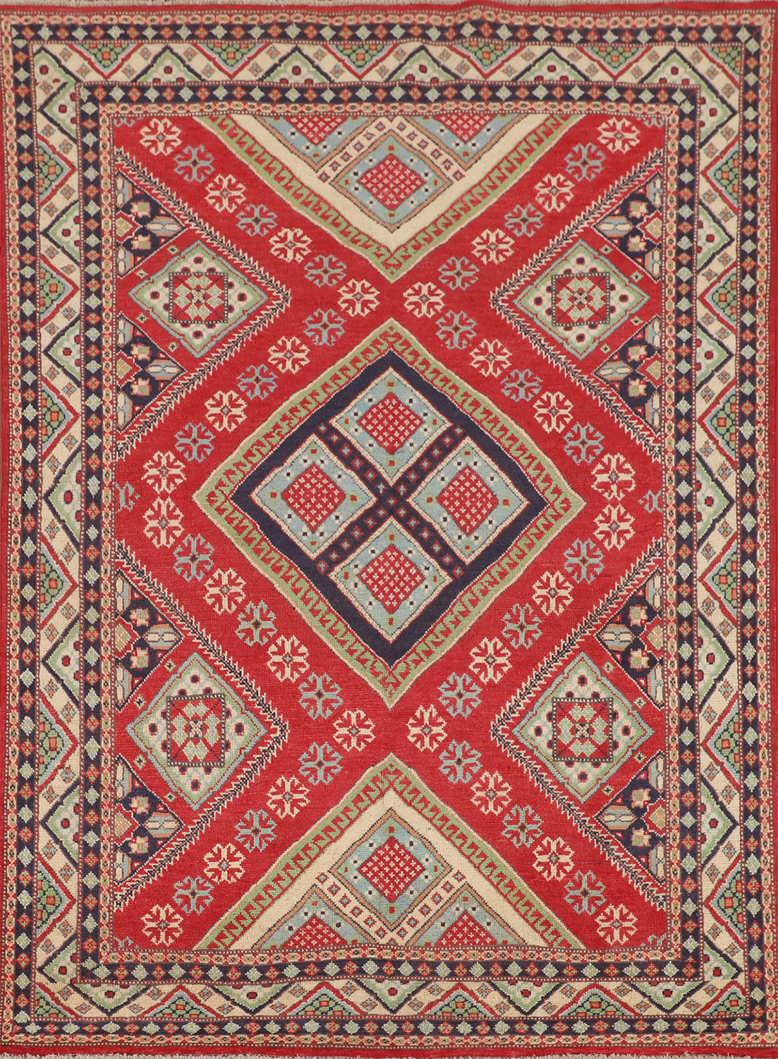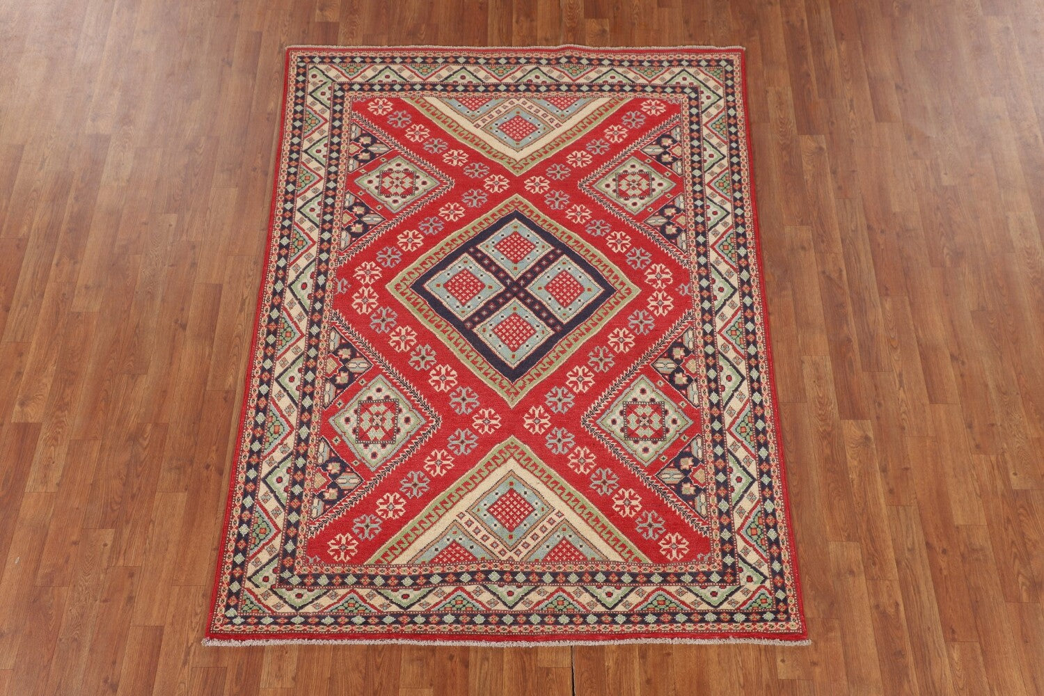Geometric Wool Kazak Oriental Rug 5x7