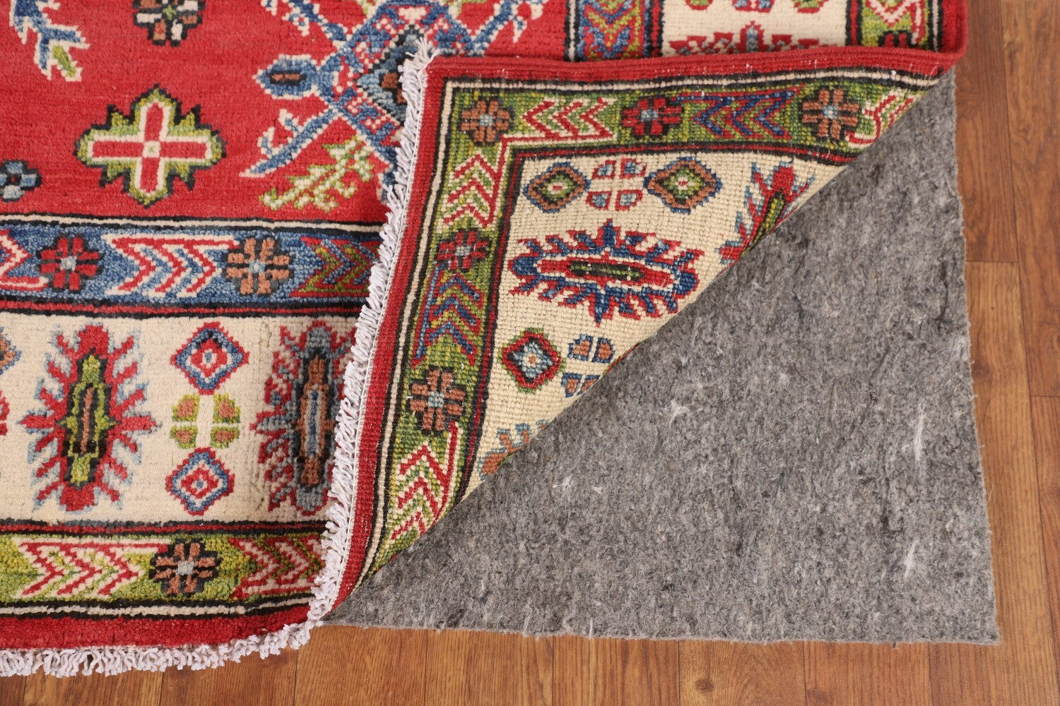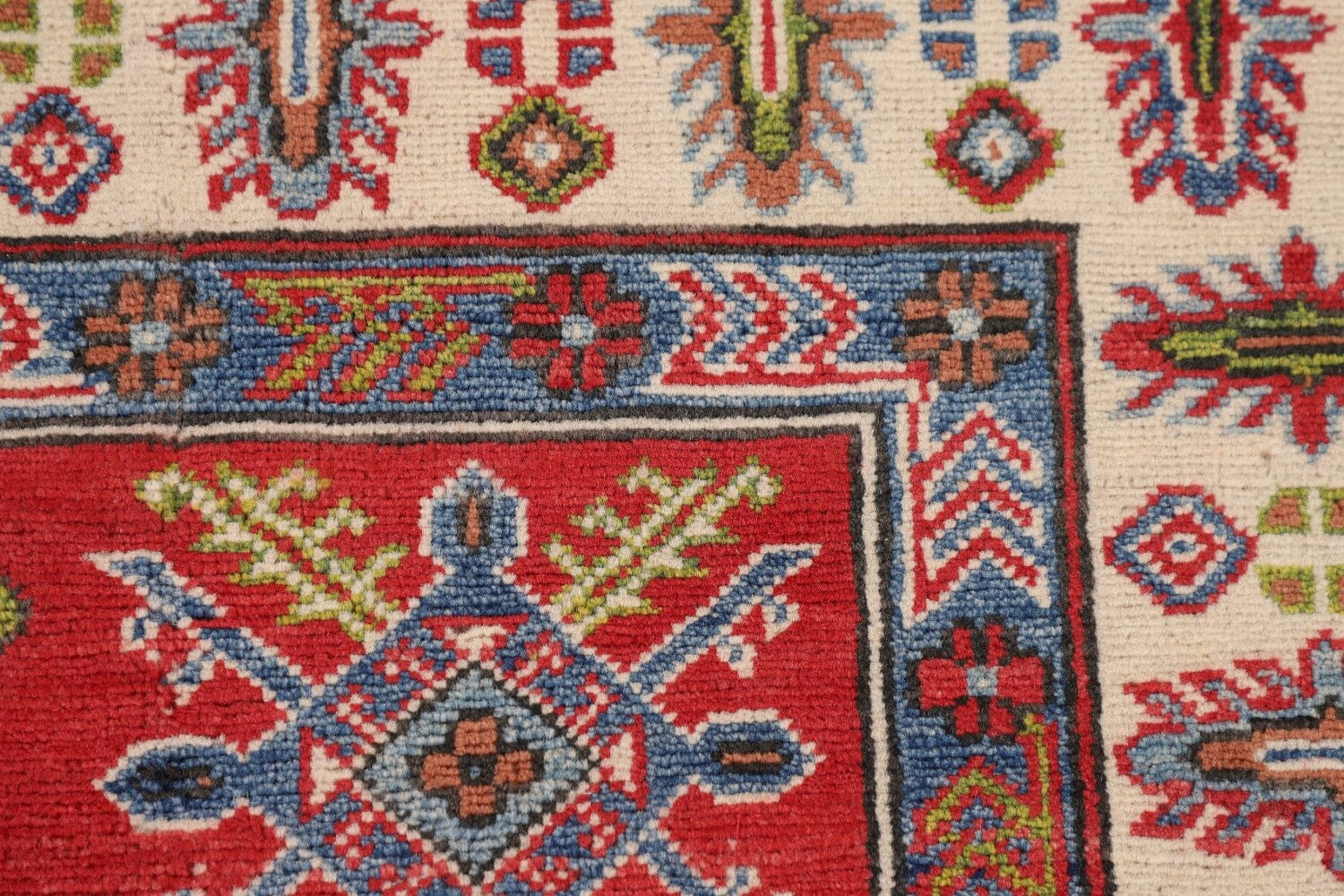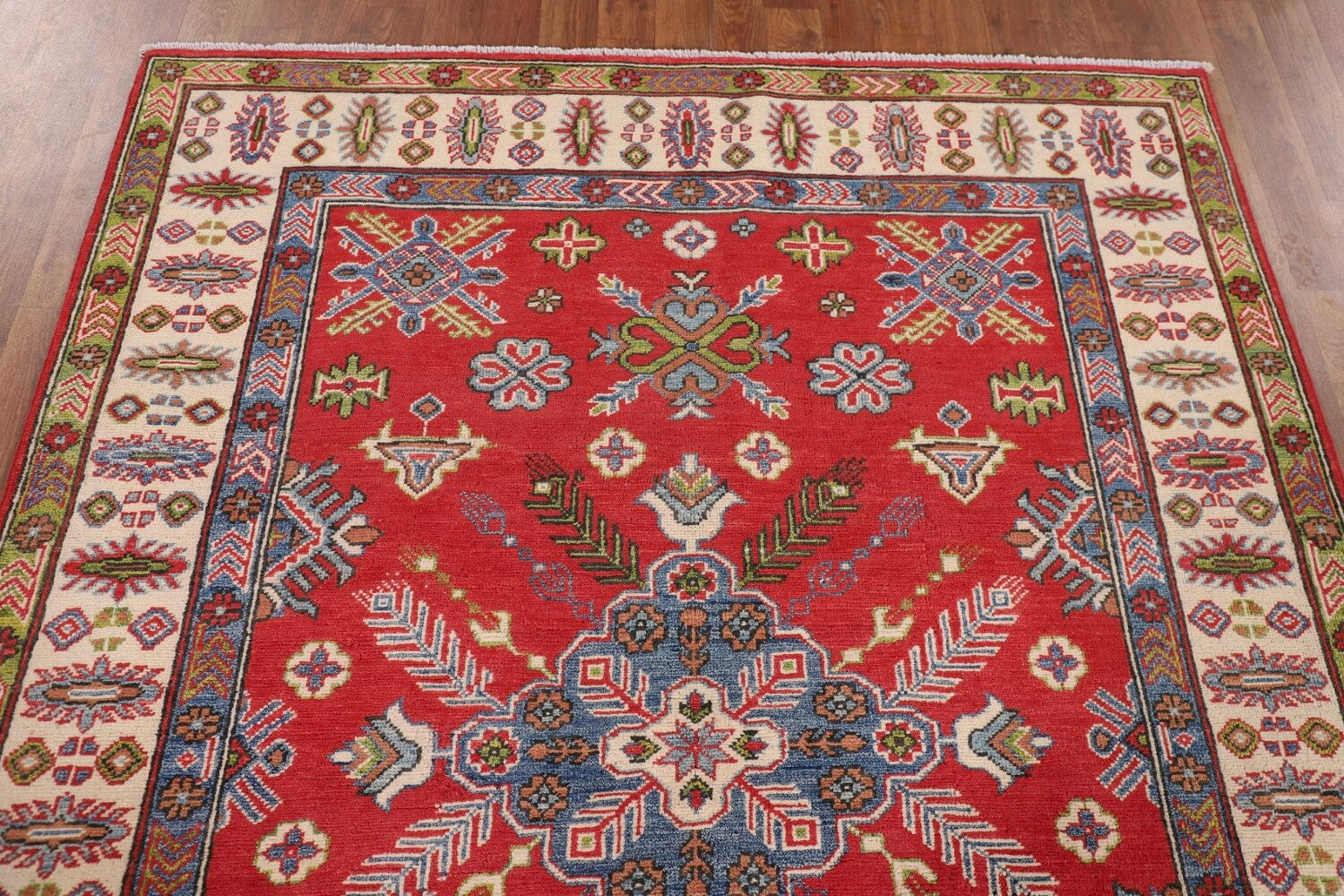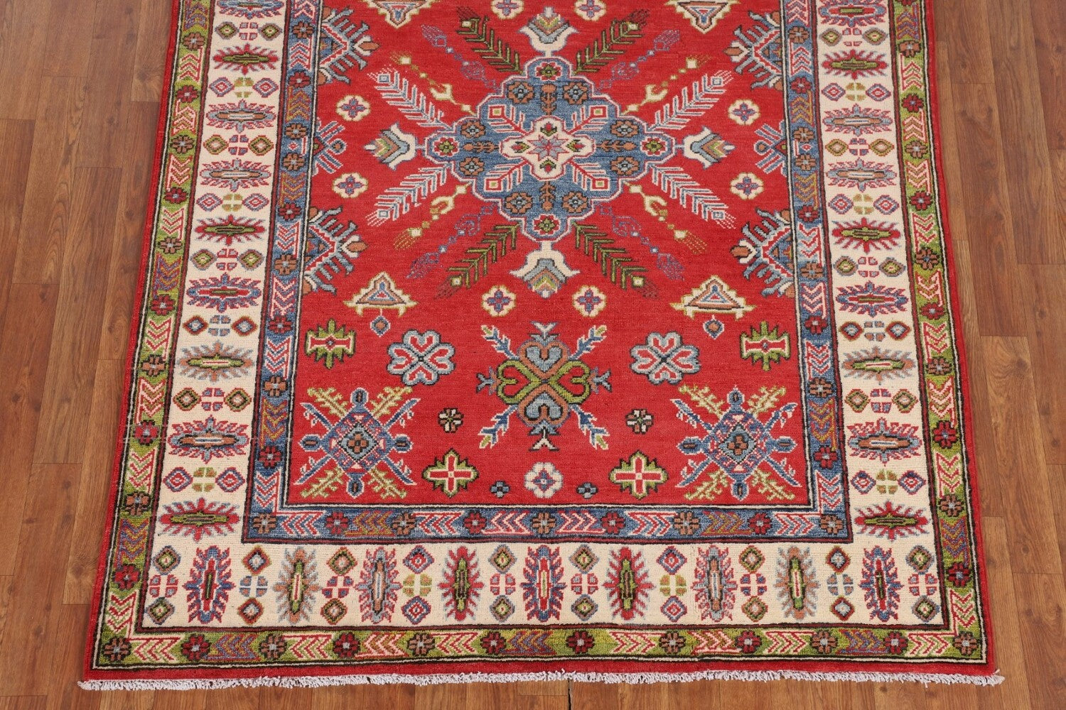 A Beautiful Genuine Pakistan Kazak rug is Hand Knotted by skillful weavers in Pakistan with 100% Wool Material. This rug is in New, First Quality condition. dimensions are 6' 8'' X 4' 11'' in foot and 203 X 150 in centimeter. the primary color is Red.