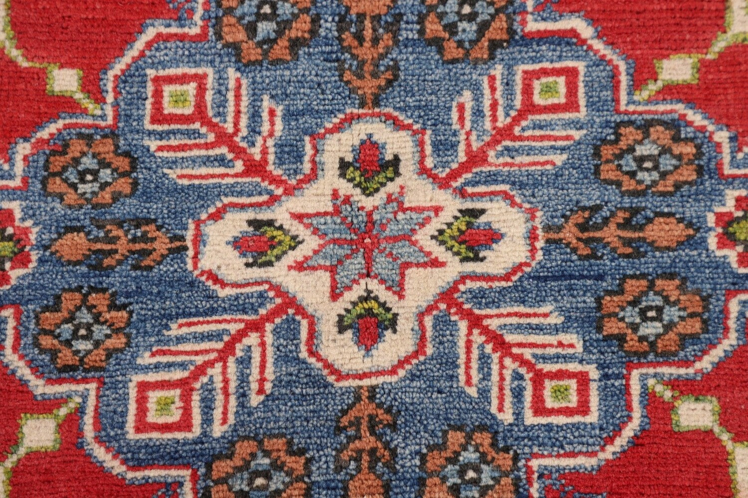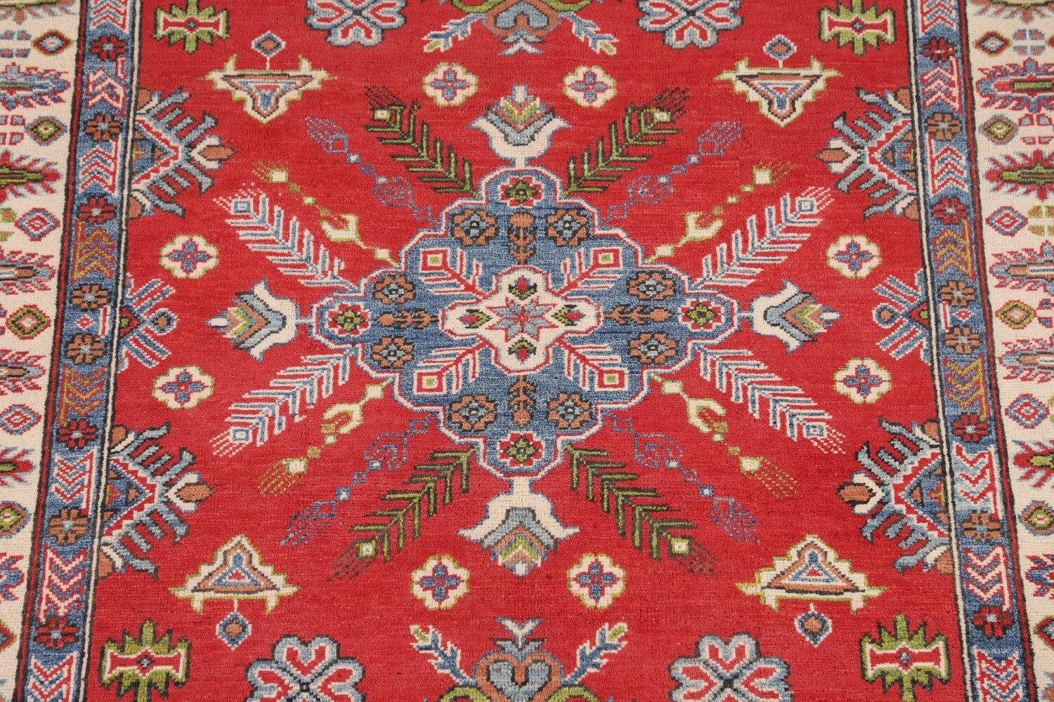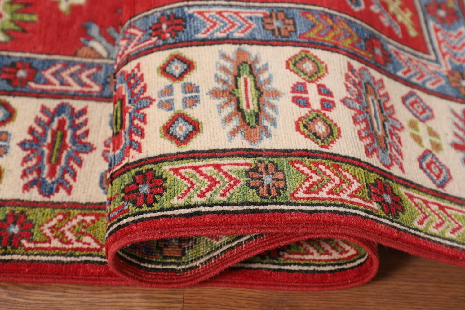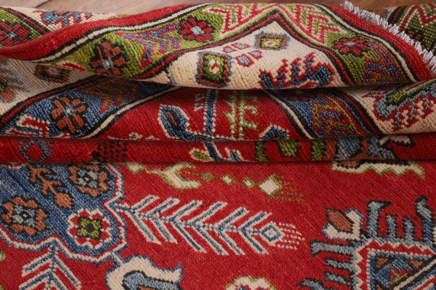 A Beautiful Genuine Pakistan Kazak rug is Hand Knotted by skillful weavers in Pakistan with 100% Wool Material. This rug is in New, First Quality condition. dimensions are 6' 8'' X 4' 11'' in foot and 203 X 150 in centimeter. the primary color is Red.