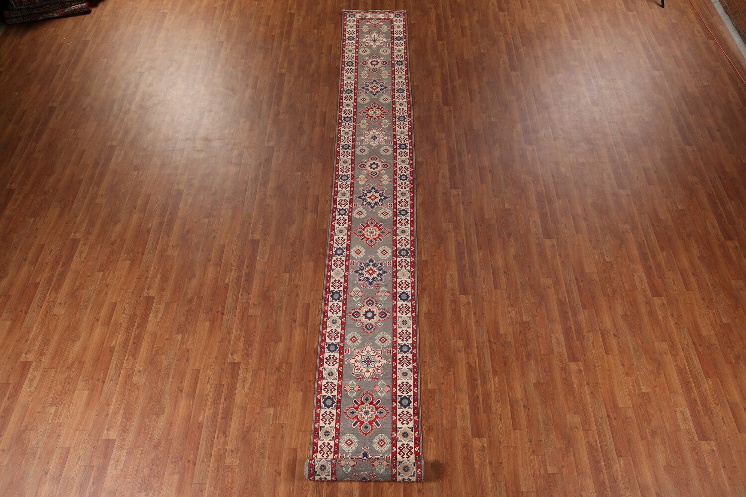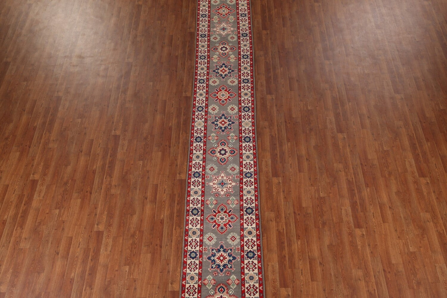 Geometric Wool Kazak Oriental Runner Rug 2x19