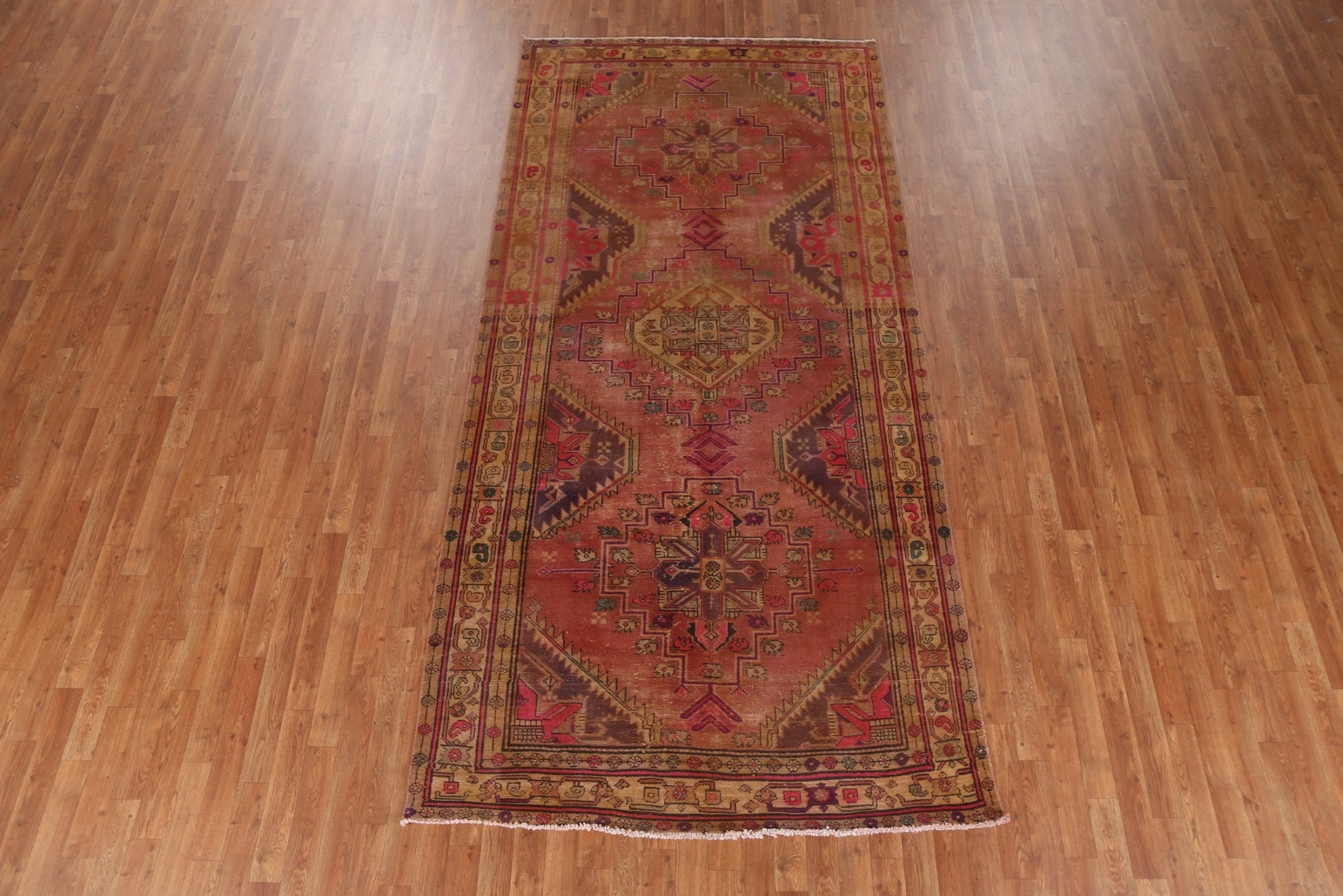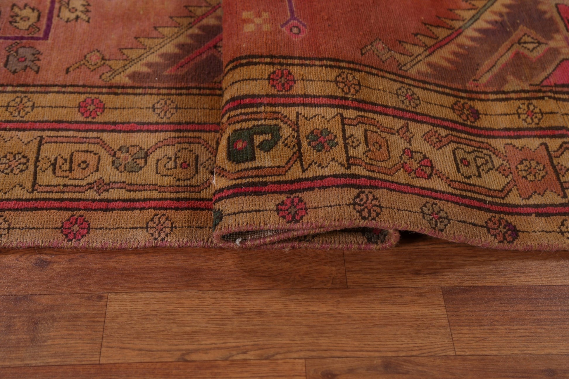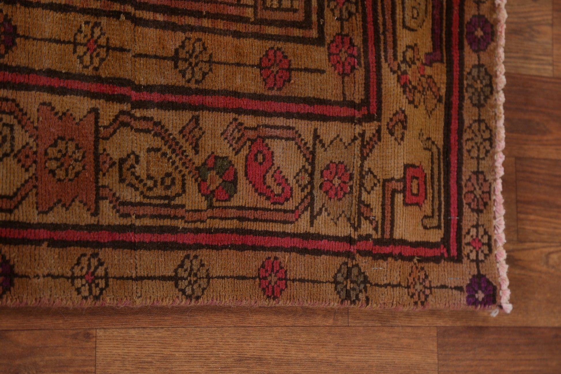A Beautiful Genuine Persia ( Persia ) Meshkin rug is Hand Knotted by skillful weavers in Persia ( Persia ) with 100% Wool Material. This rug is in Very Good (Low Pile-Abrash) condition. dimensions are 10' 7'' X 4' 11'' in foot and 323 X 150 in centimeter. the primary color is Oranges & Rust.