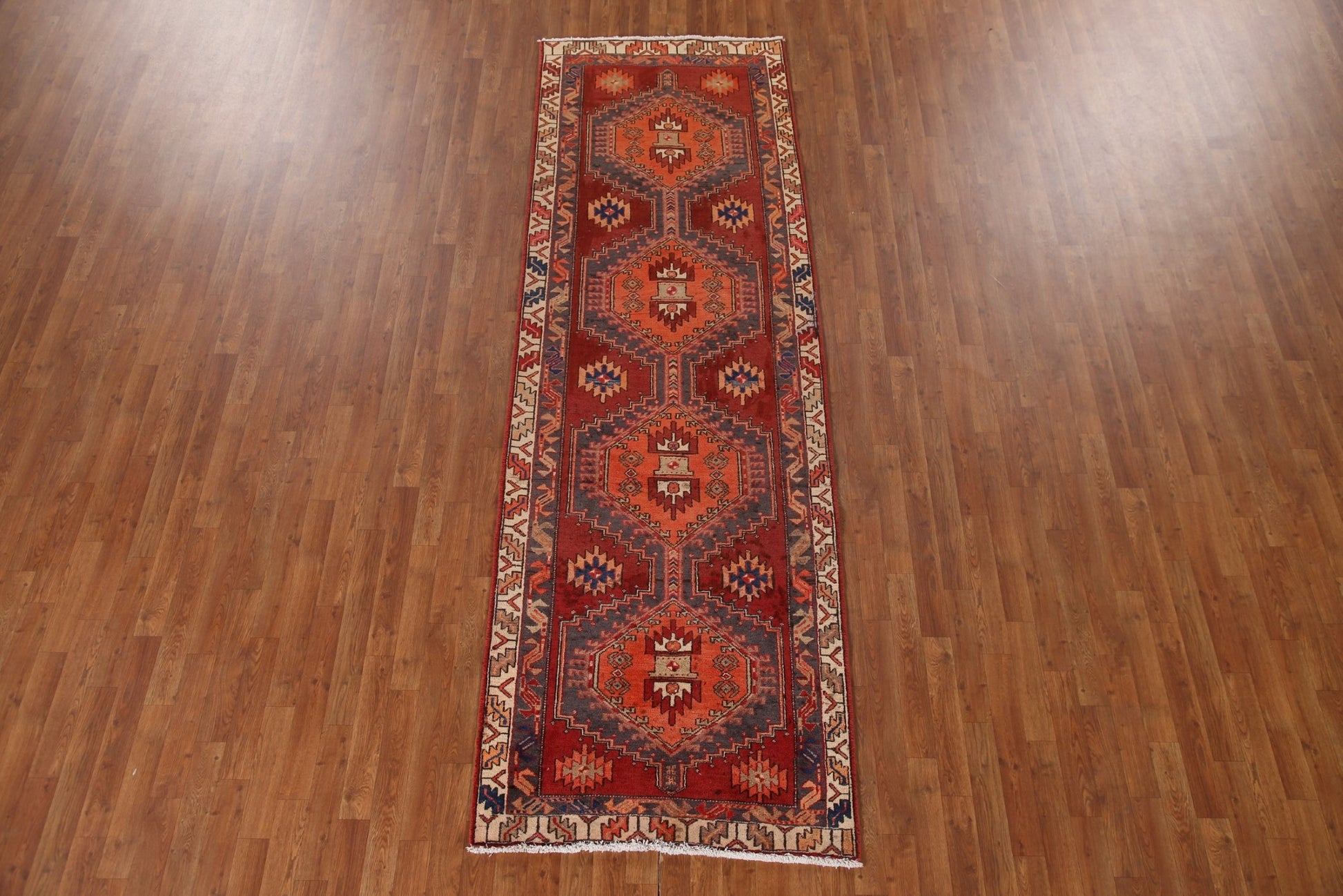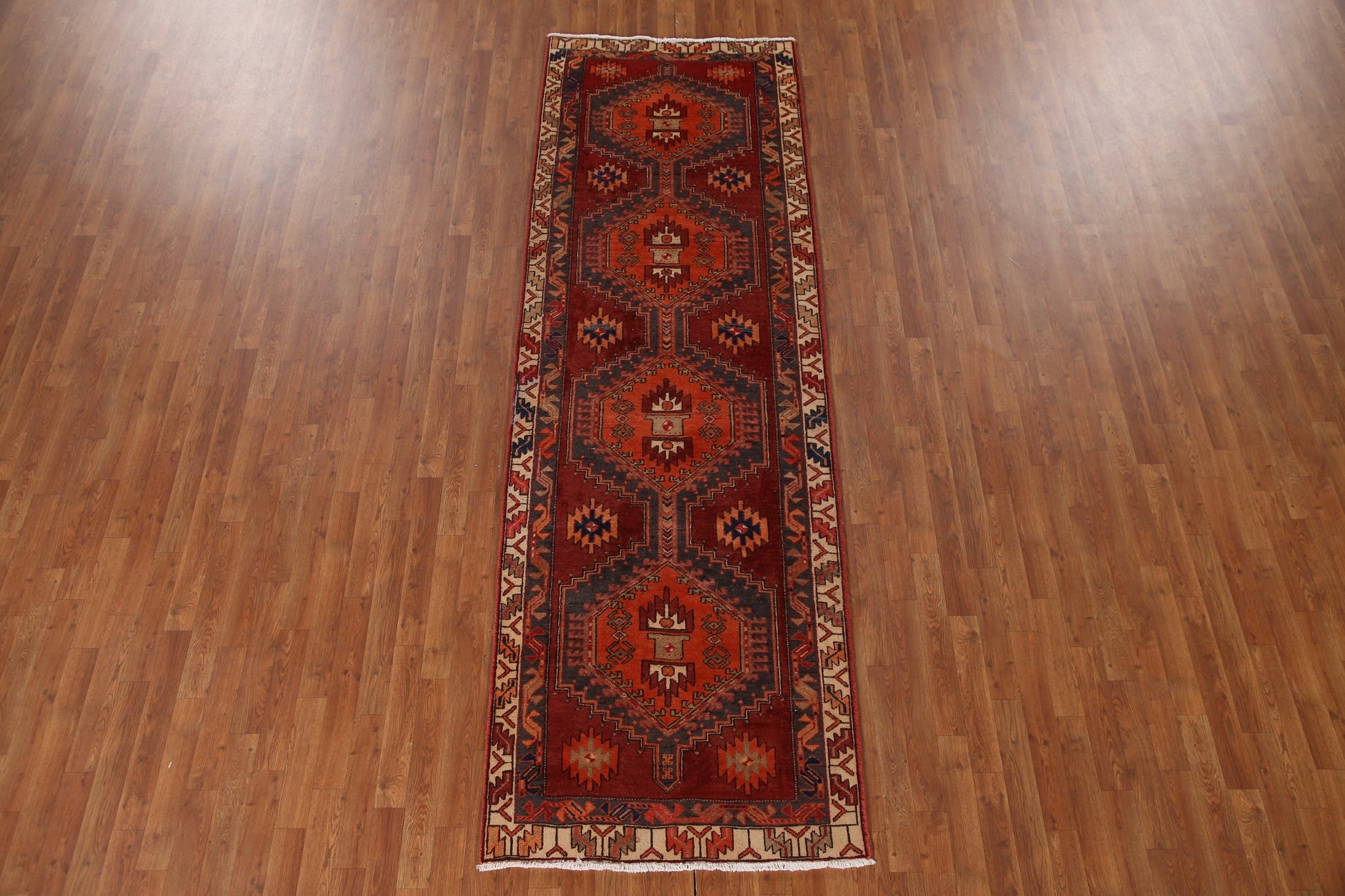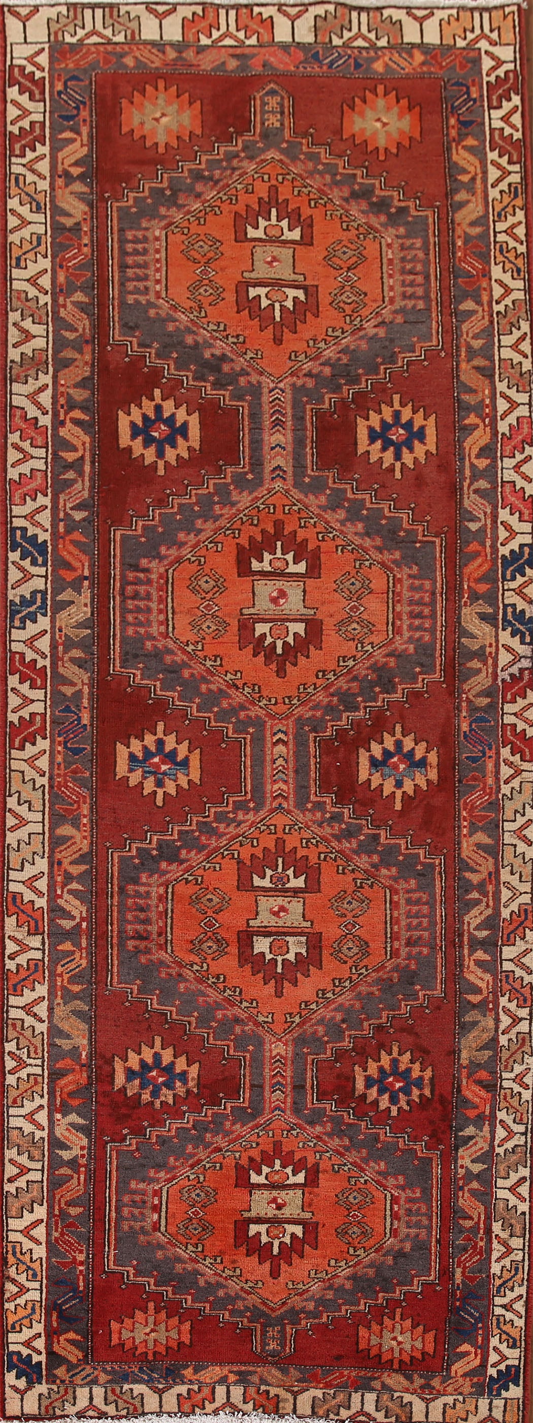 Geometric Wool Meshkin Persian Runner Rug 3x10