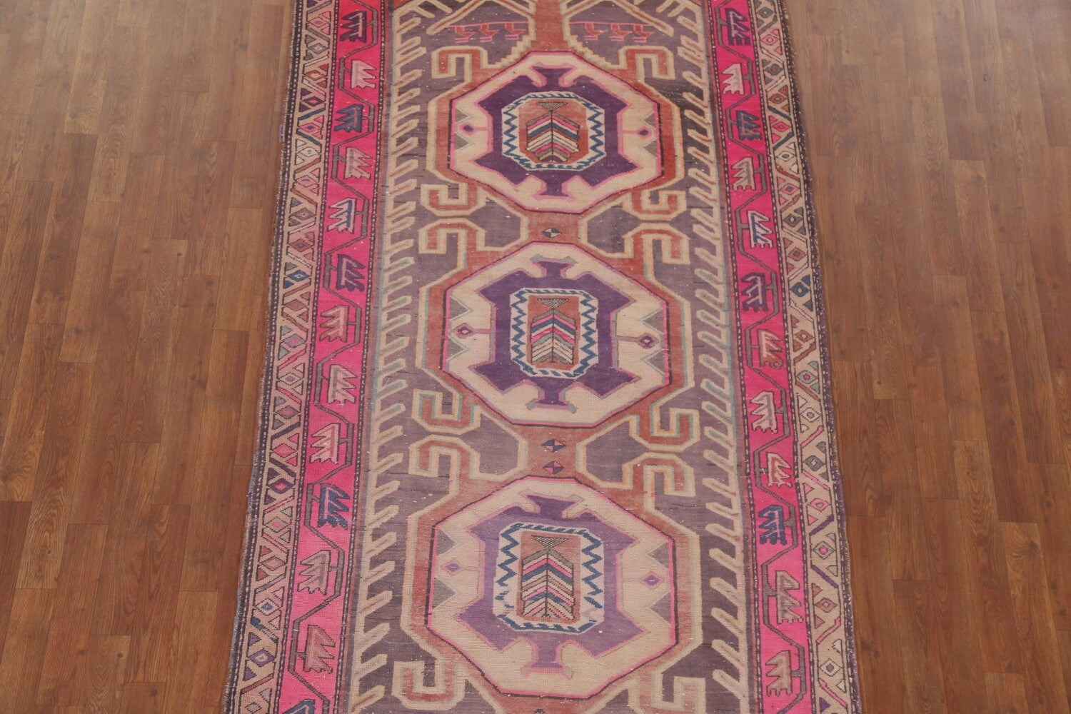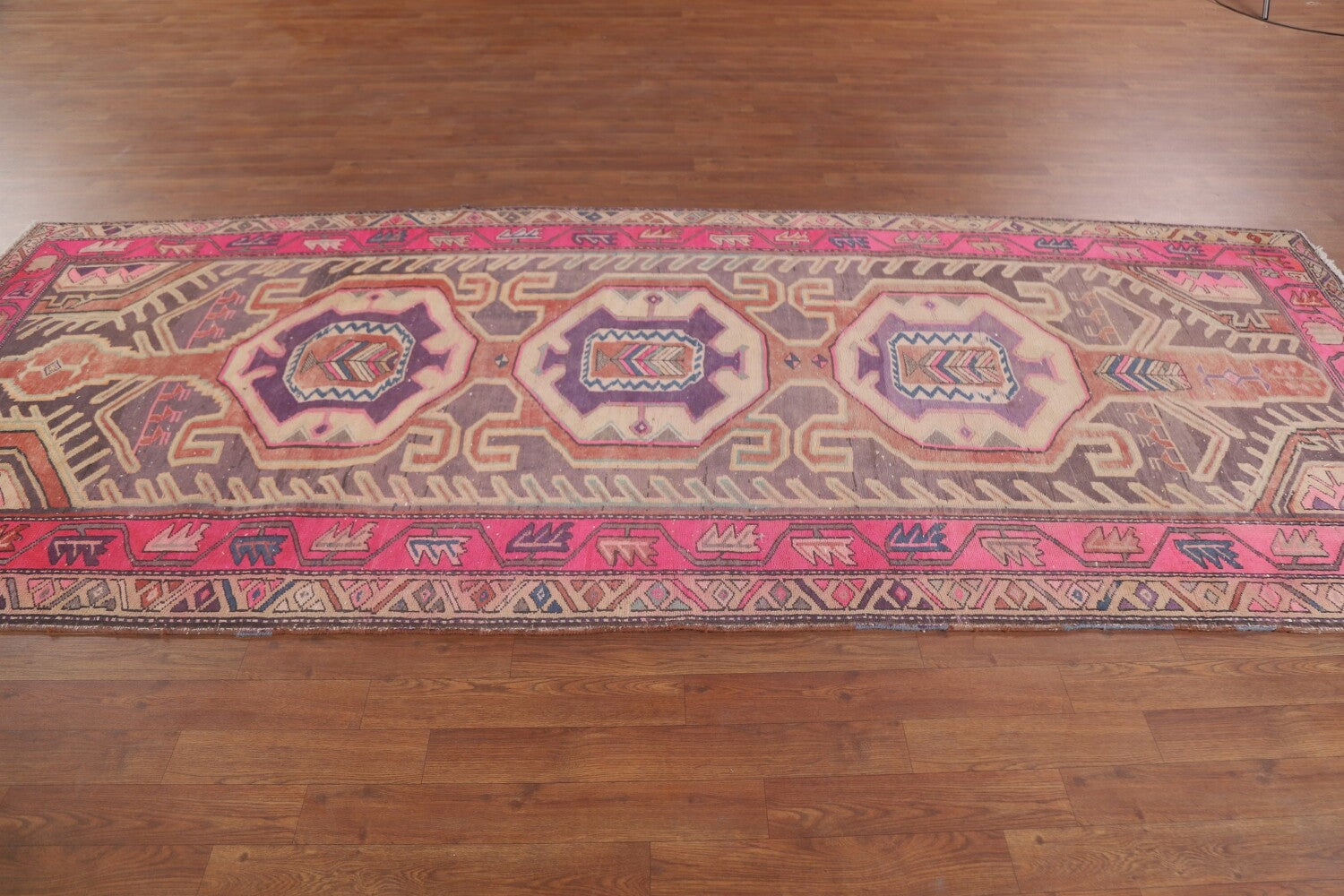 A Beautiful Genuine Persia ( Persia ) Meshkin rug is Hand Knotted by skillful weavers in Persia ( Persia ) with 100% Wool Material. This rug is in Very Good (Evenly Low Pile) condition. dimensions are 10' 4'' X 4' 4'' in foot and 315 X 132 in centimeter. the primary color is Purples.