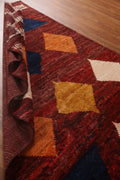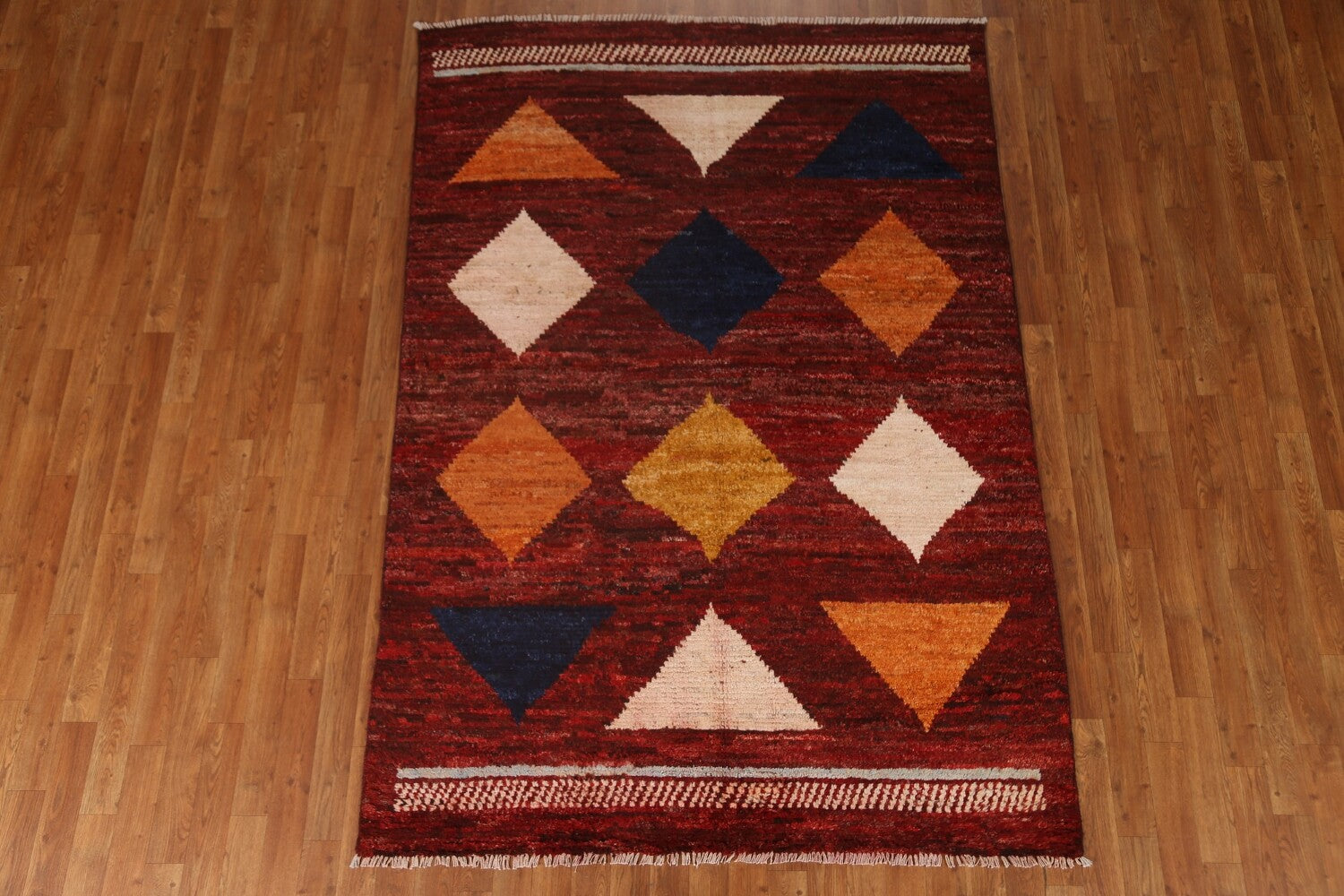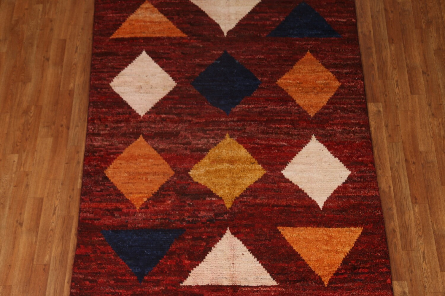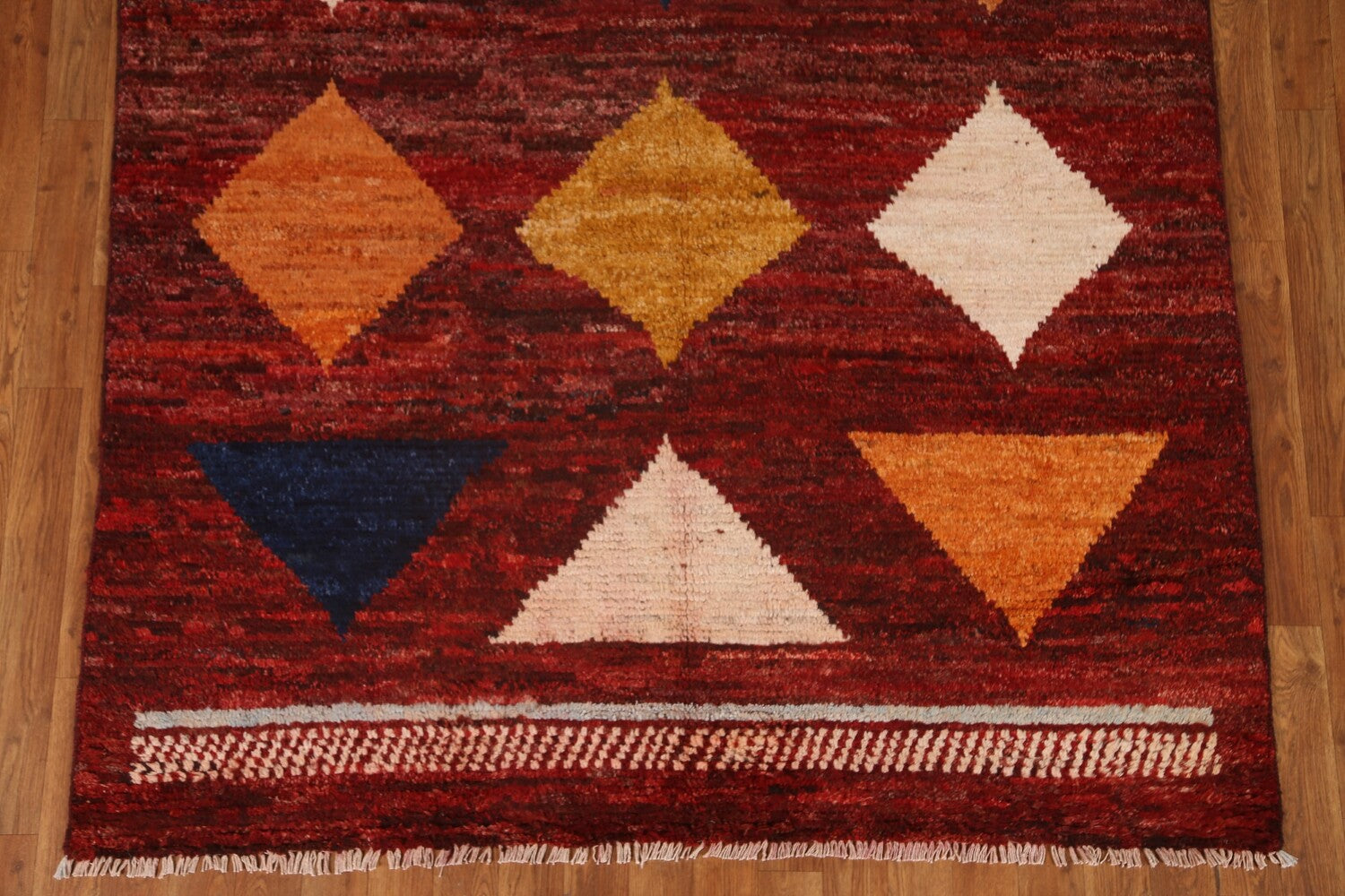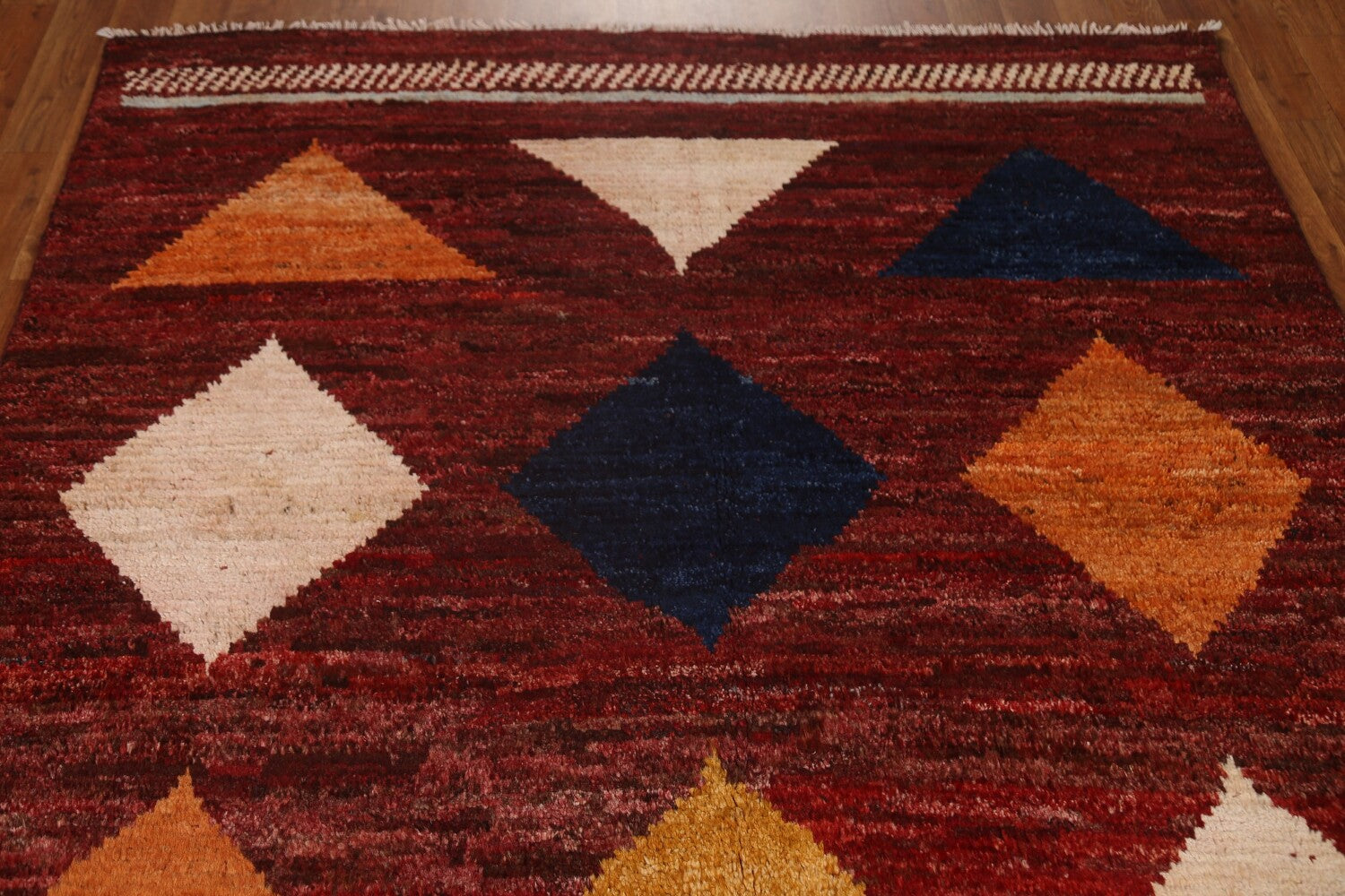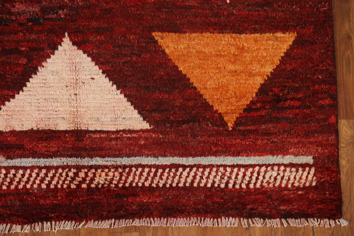 A Beautiful Genuine Pakistan Moroccan rug is Hand Knotted by skillful weavers in Pakistan with 100% Wool Material. This rug is in condition. dimensions are 7' 6'' X 5' 2'' in foot and 229 X 157 in centimeter. the primary color is Red.