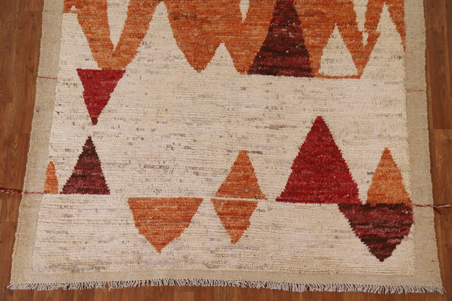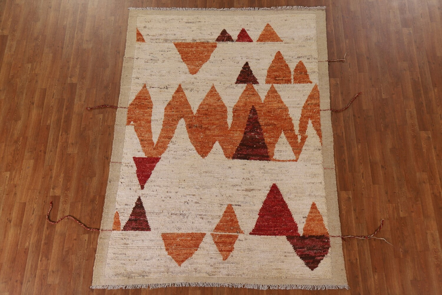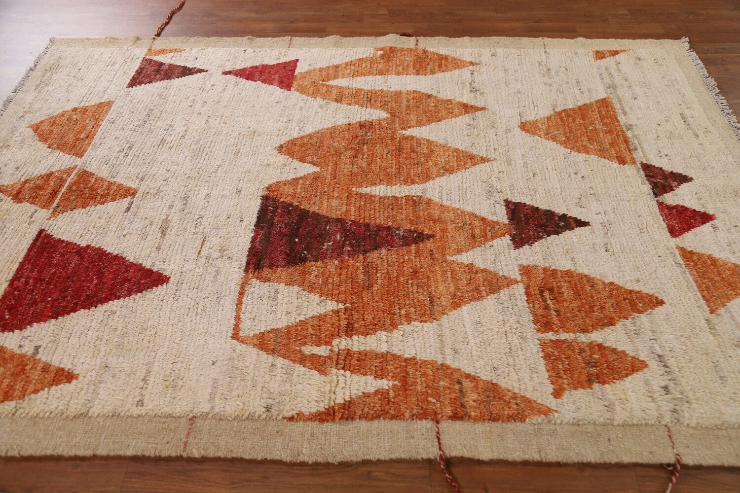 A Beautiful Genuine Pakistan Moroccan rug is Hand Knotted by skillful weavers in Pakistan with 100% Wool Material. This rug is in condition. dimensions are 7' 11'' X 5' 9'' in foot and 241 X 175 in centimeter. the primary color is Beige & Ivories.